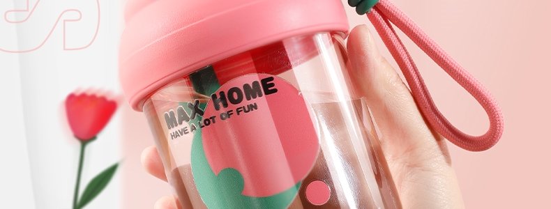 商品名称:优美家 茶姬提手杯 480ml 樱花粉