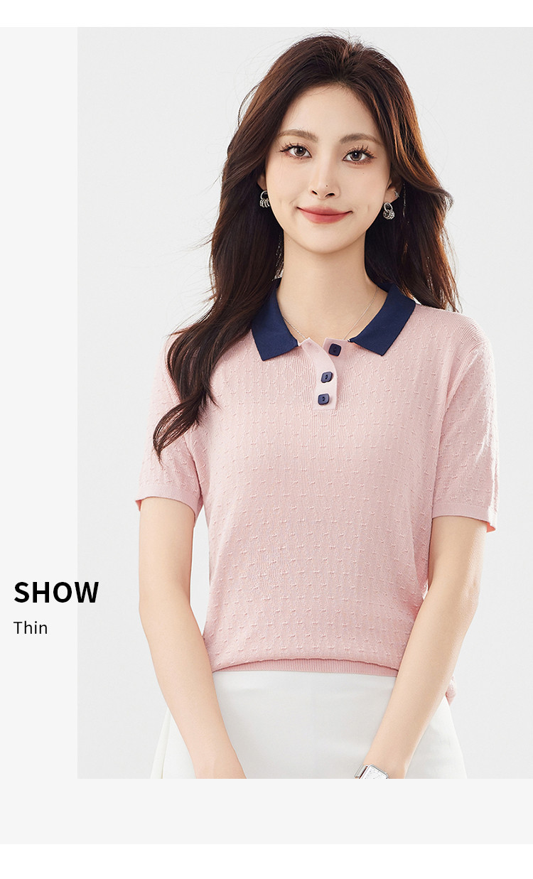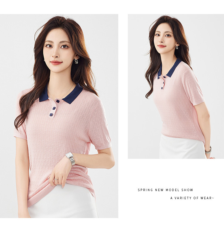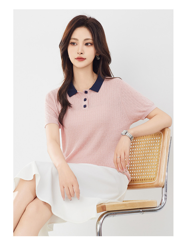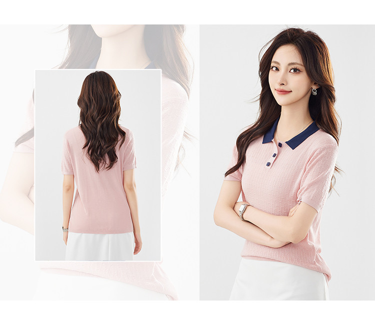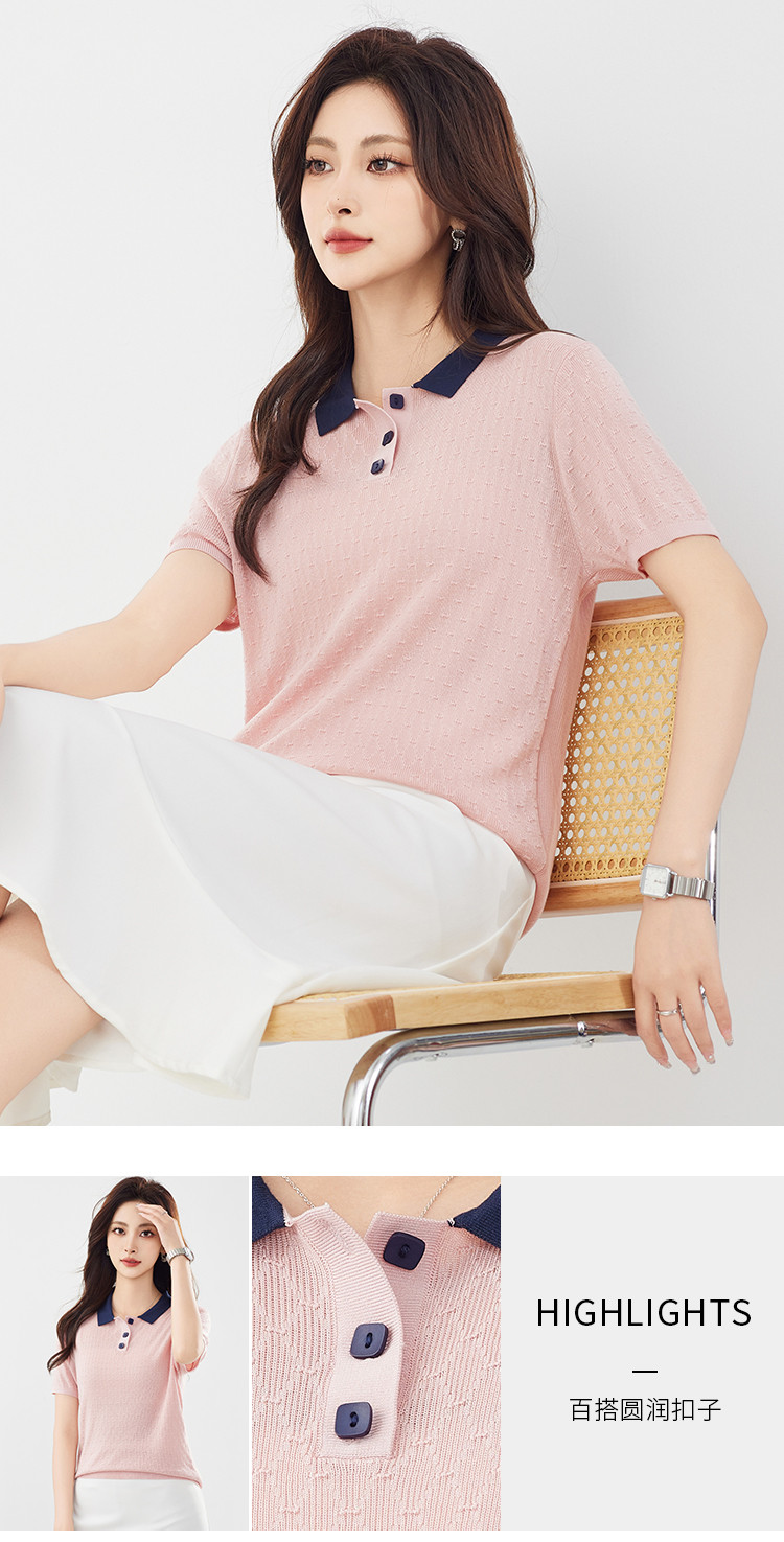 商品名称:【100%莱赛尔】简约高级感撞色翻领针织衫休闲百搭短款上衣女 320607