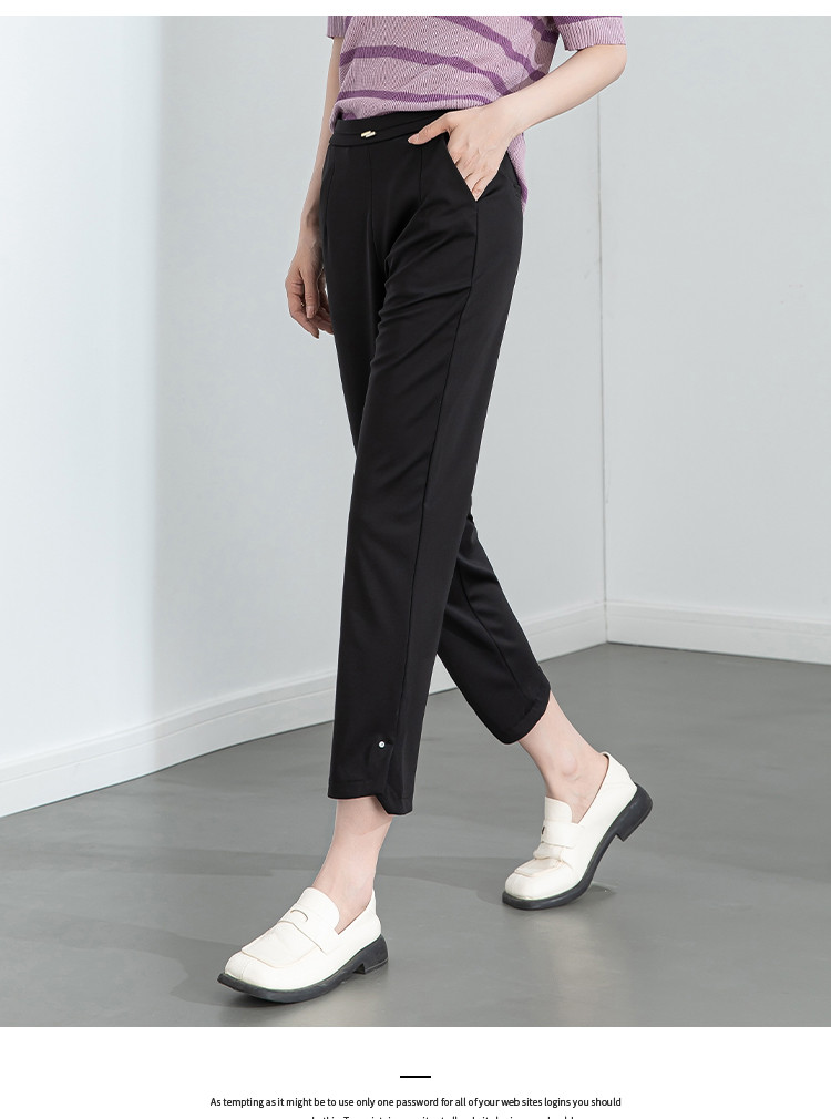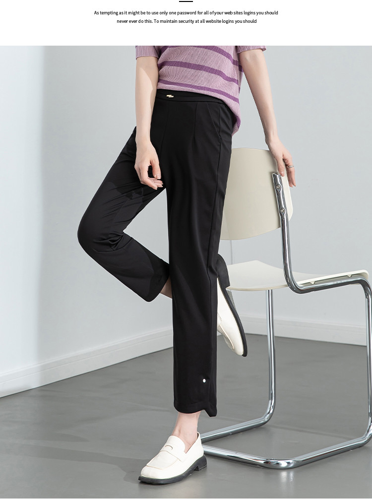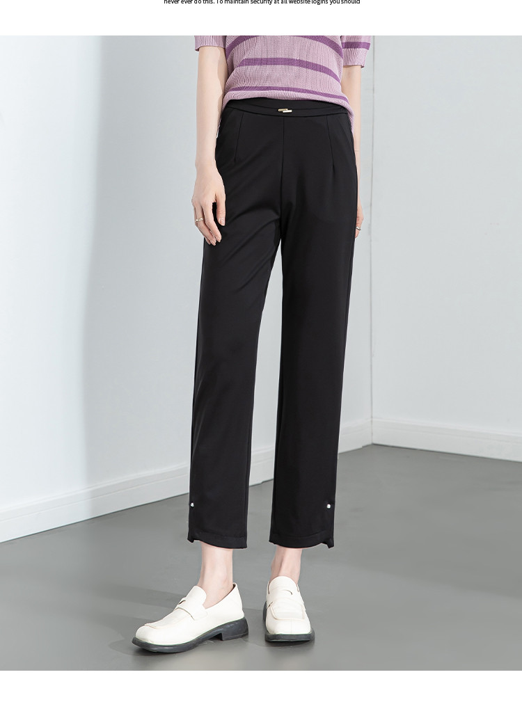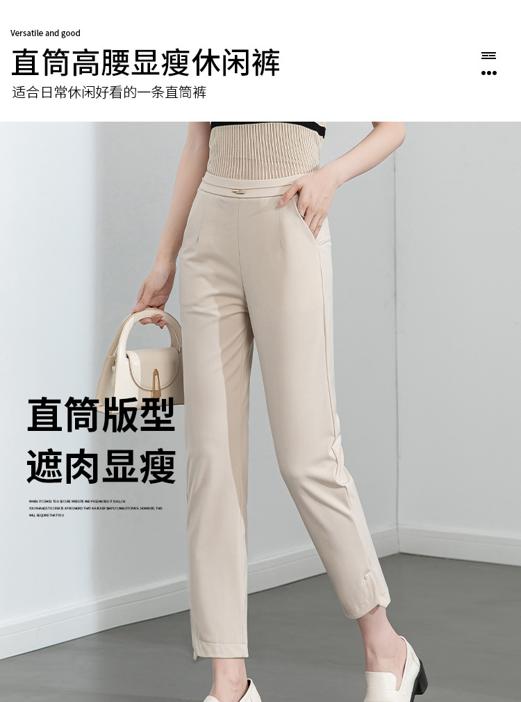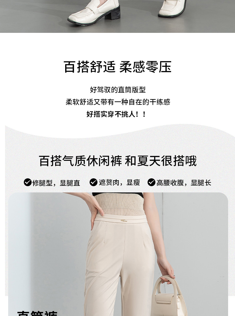 商品名称:女装裤子女裤秋季薄款小个子松紧腰直筒八分裤冰丝休闲裤女 663647