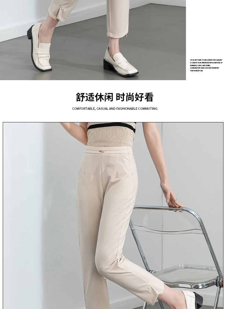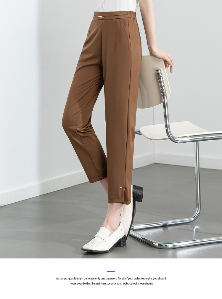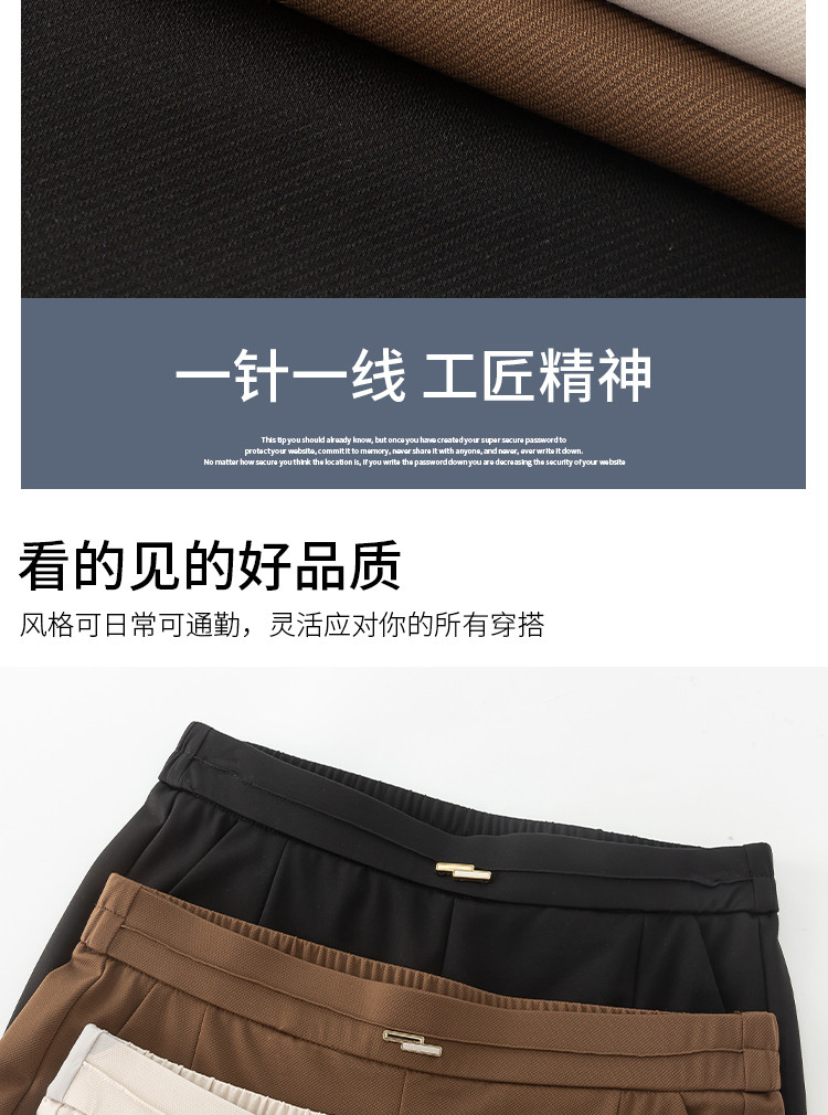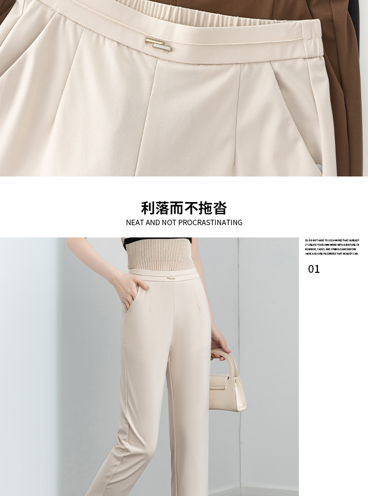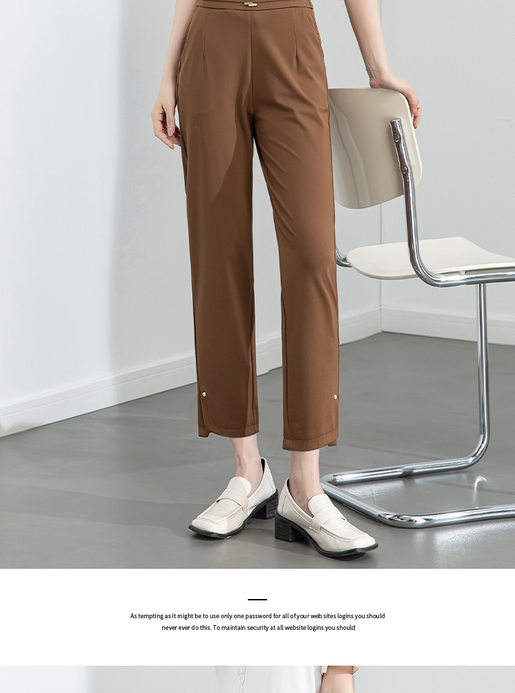 商品名称:女装裤子女裤秋季薄款小个子松紧腰直筒八分裤冰丝休闲裤女 663647