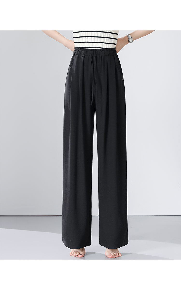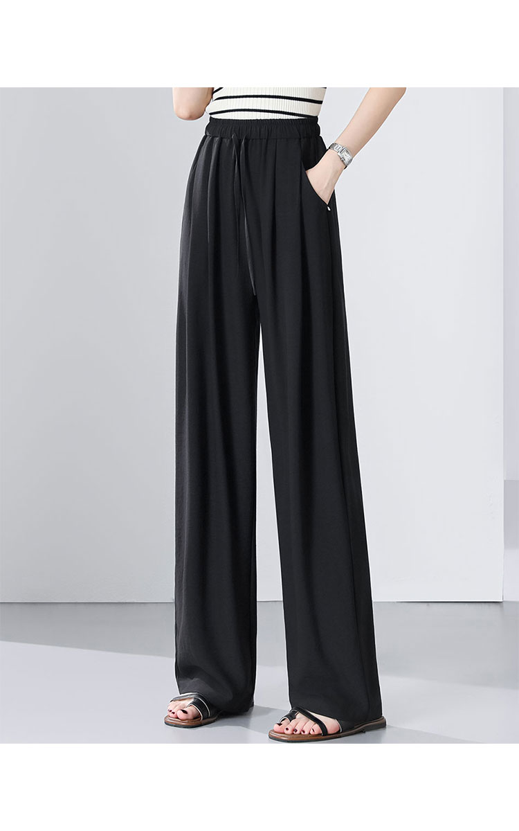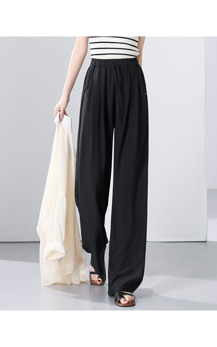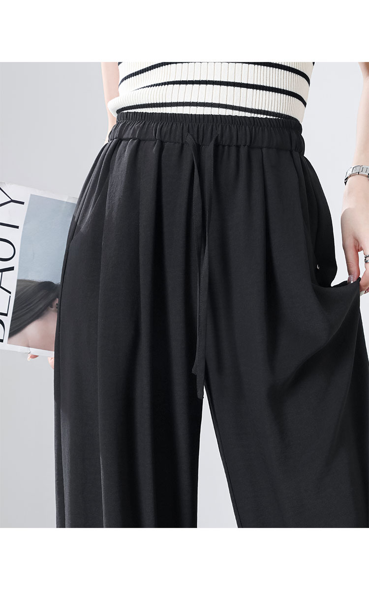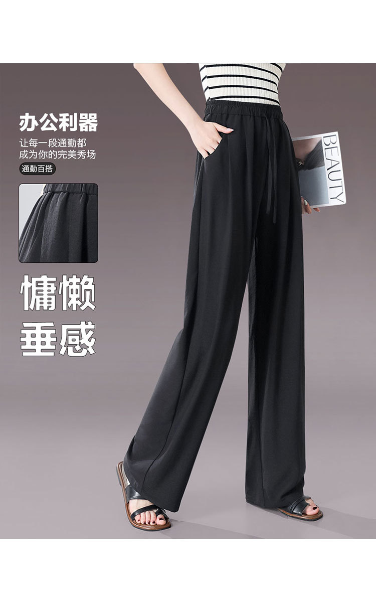 商品名称:【多褶显瘦】慵懒垂坠高级感阔腿裤女夏季高腰系绳通勤百搭休闲裤 379743