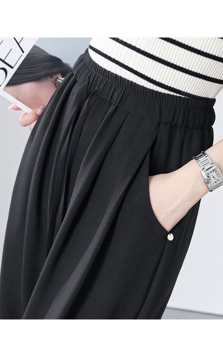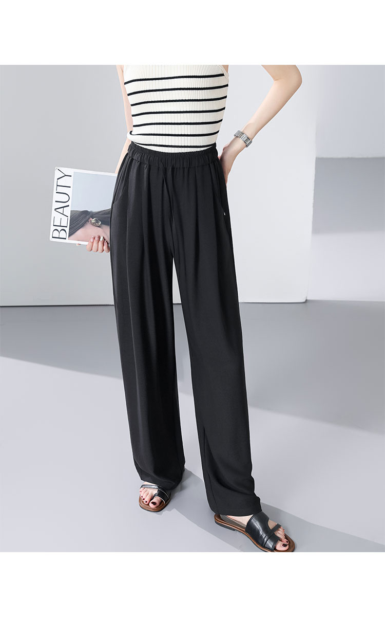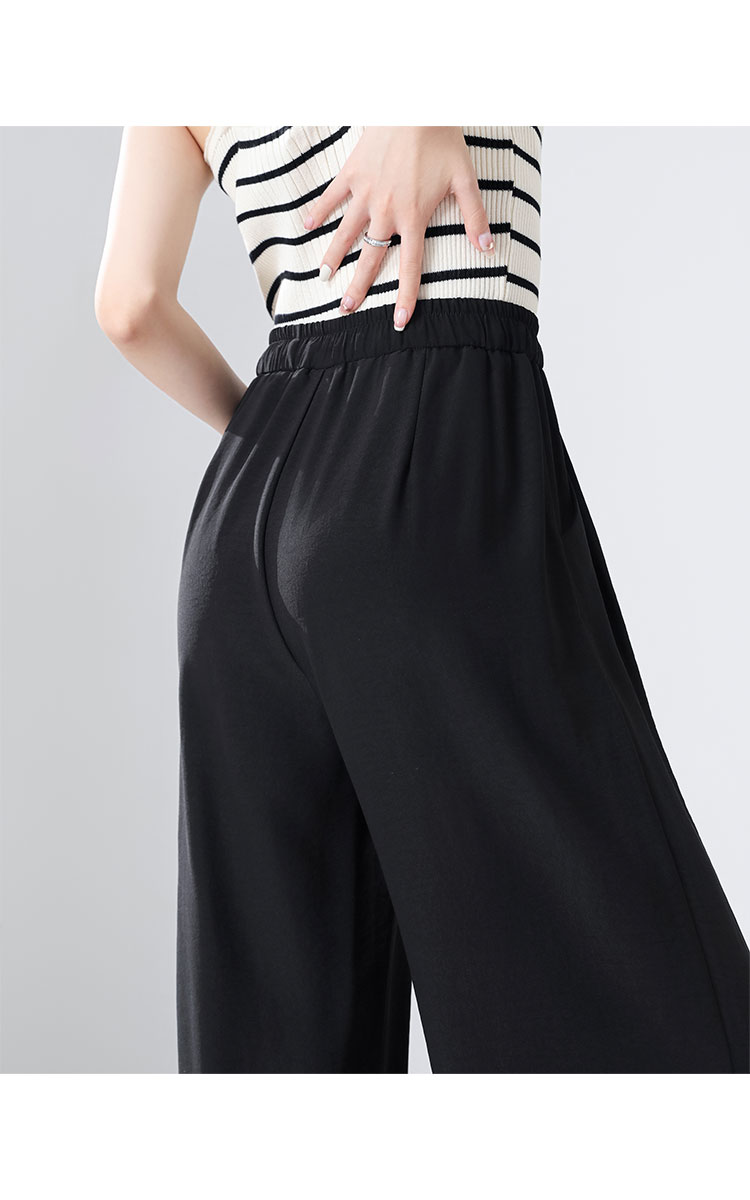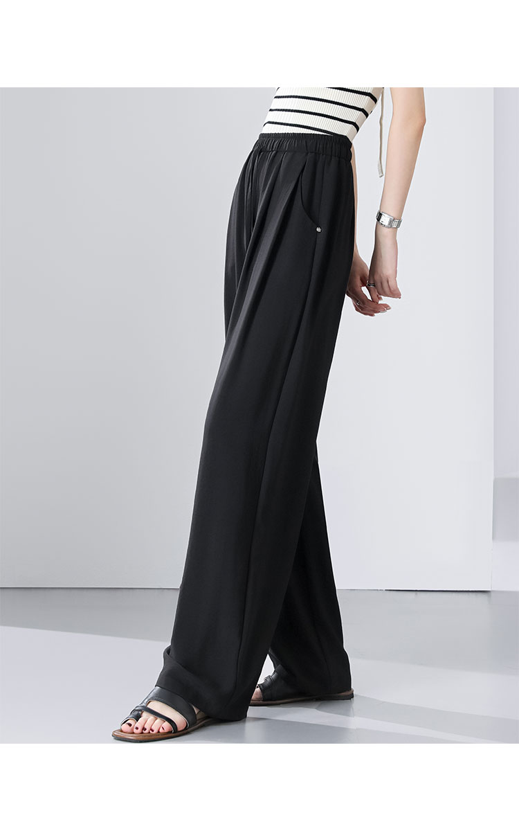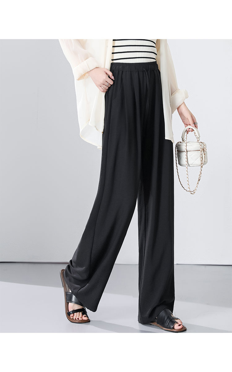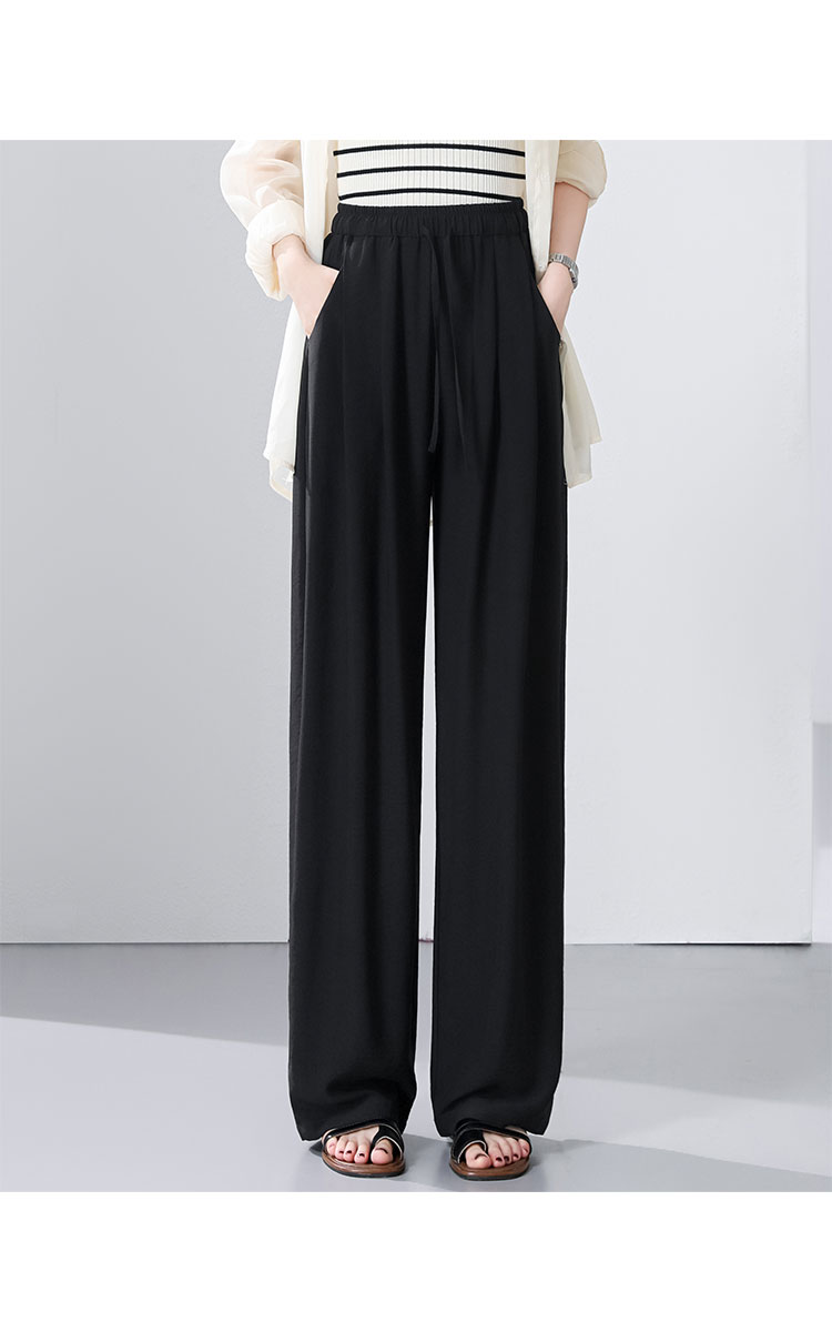 商品名称:【多褶显瘦】慵懒垂坠高级感阔腿裤女夏季高腰系绳通勤百搭休闲裤 379743