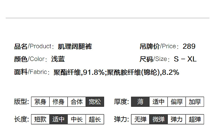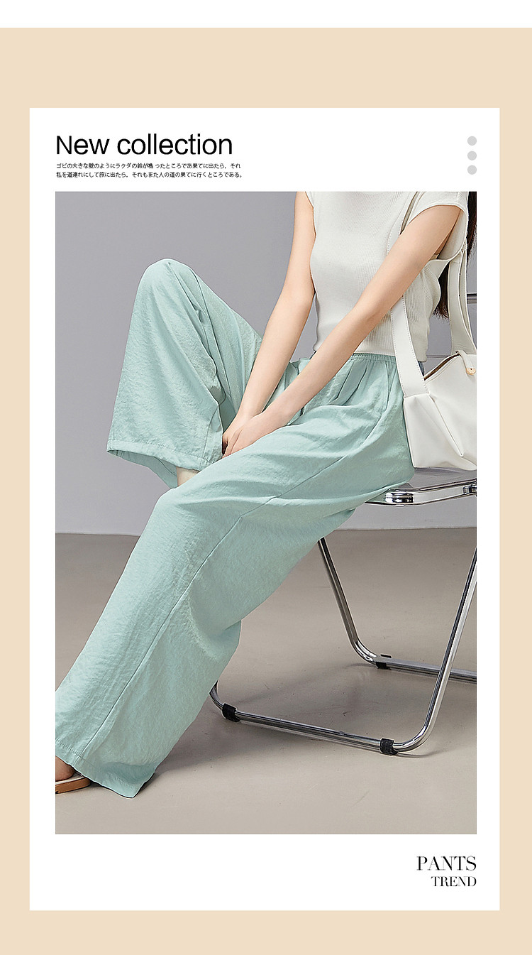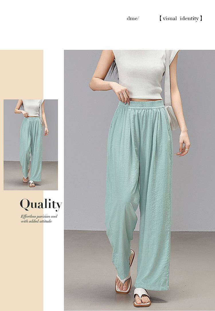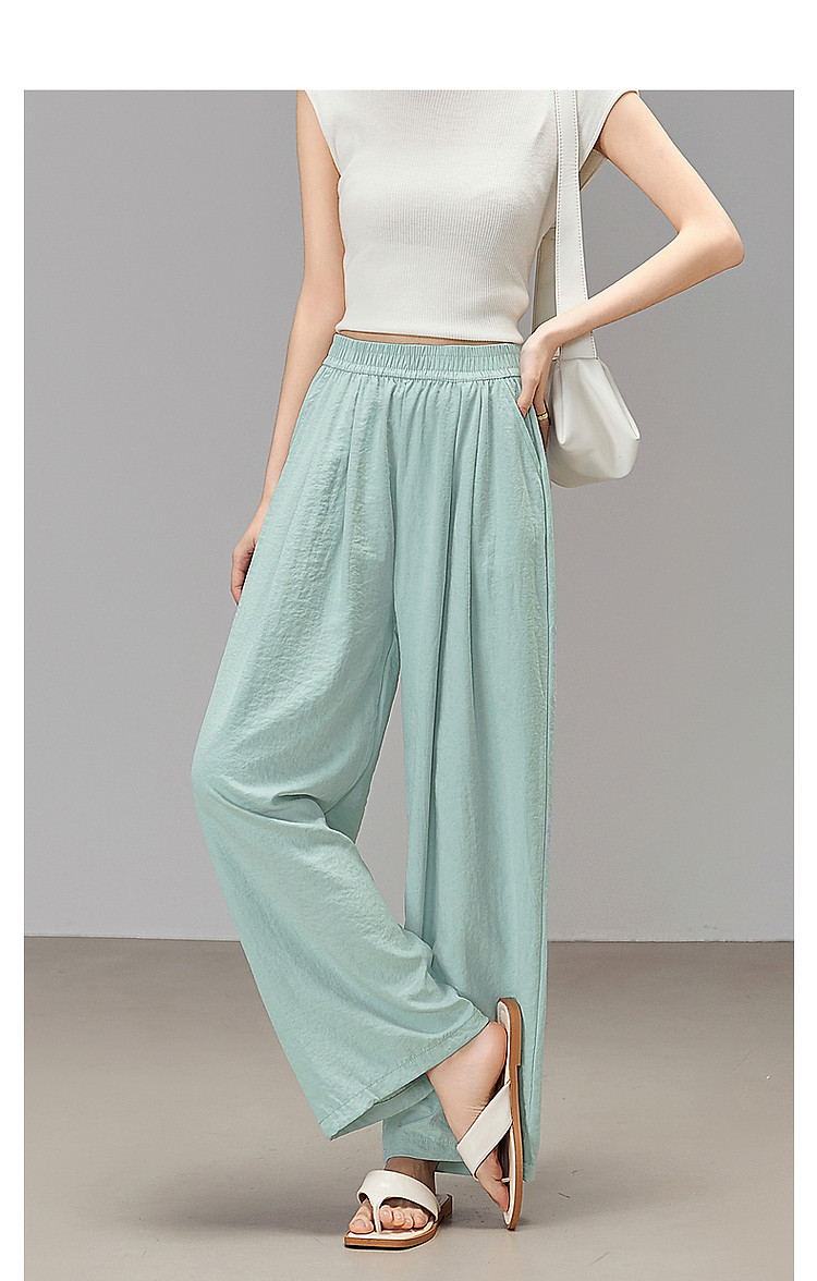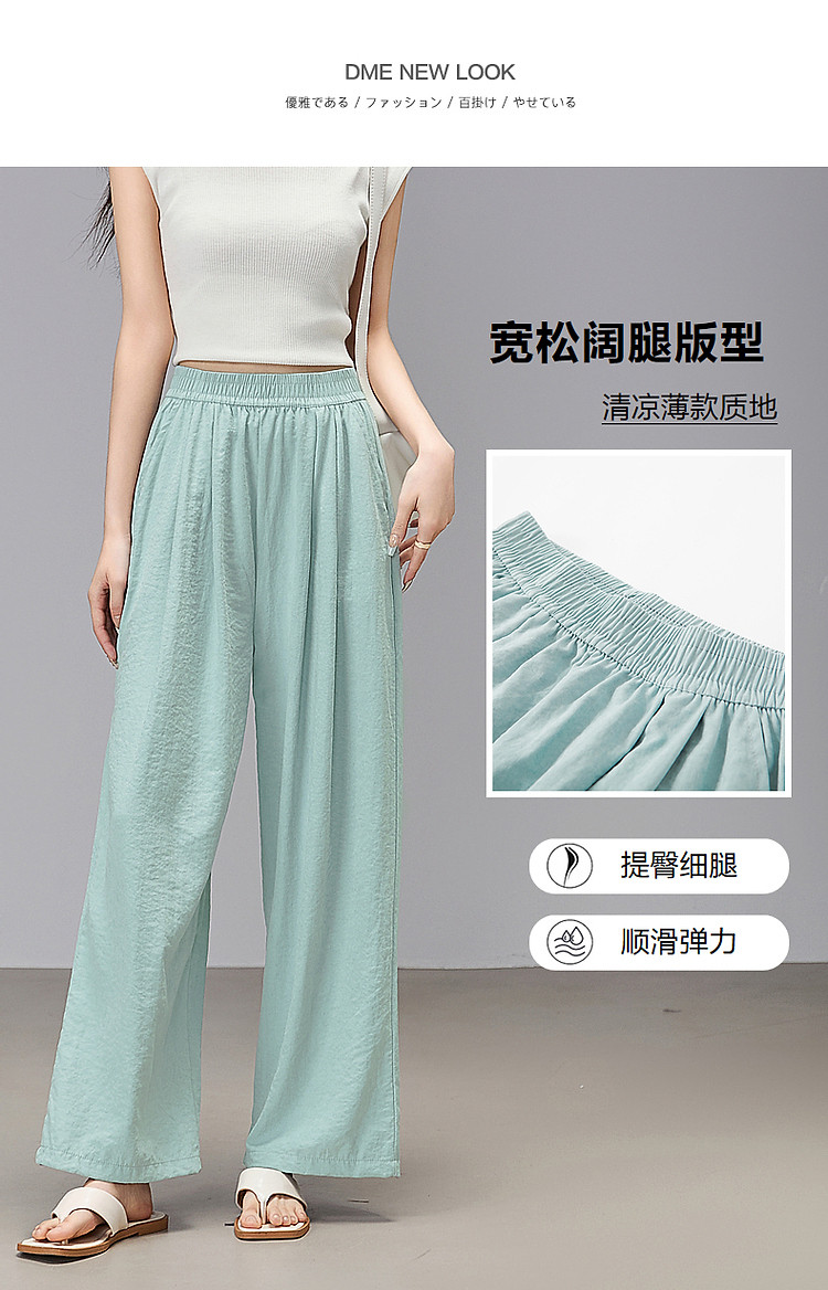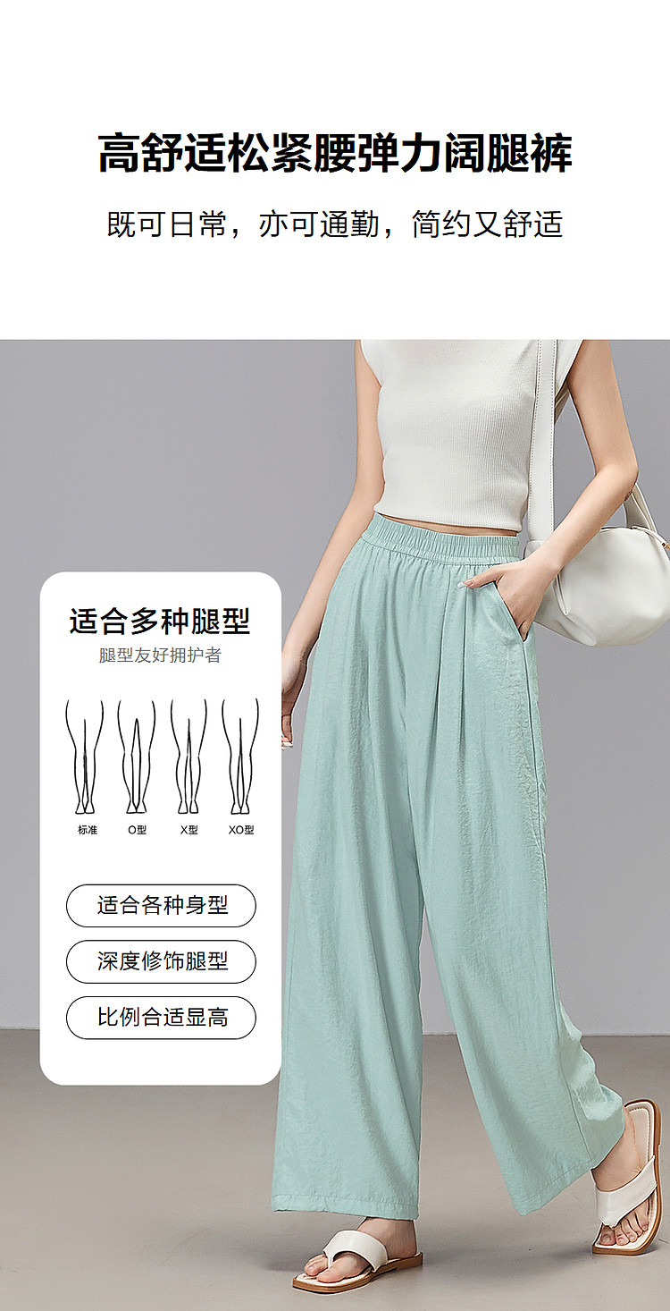 商品名称:【视觉显高瘦】夏高舒适松紧腰弹力宽松肌理感阔腿休闲裤薄款 078721