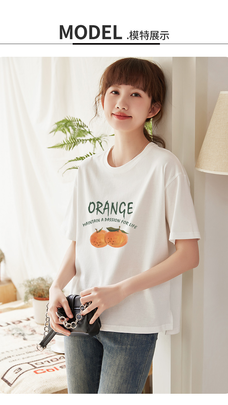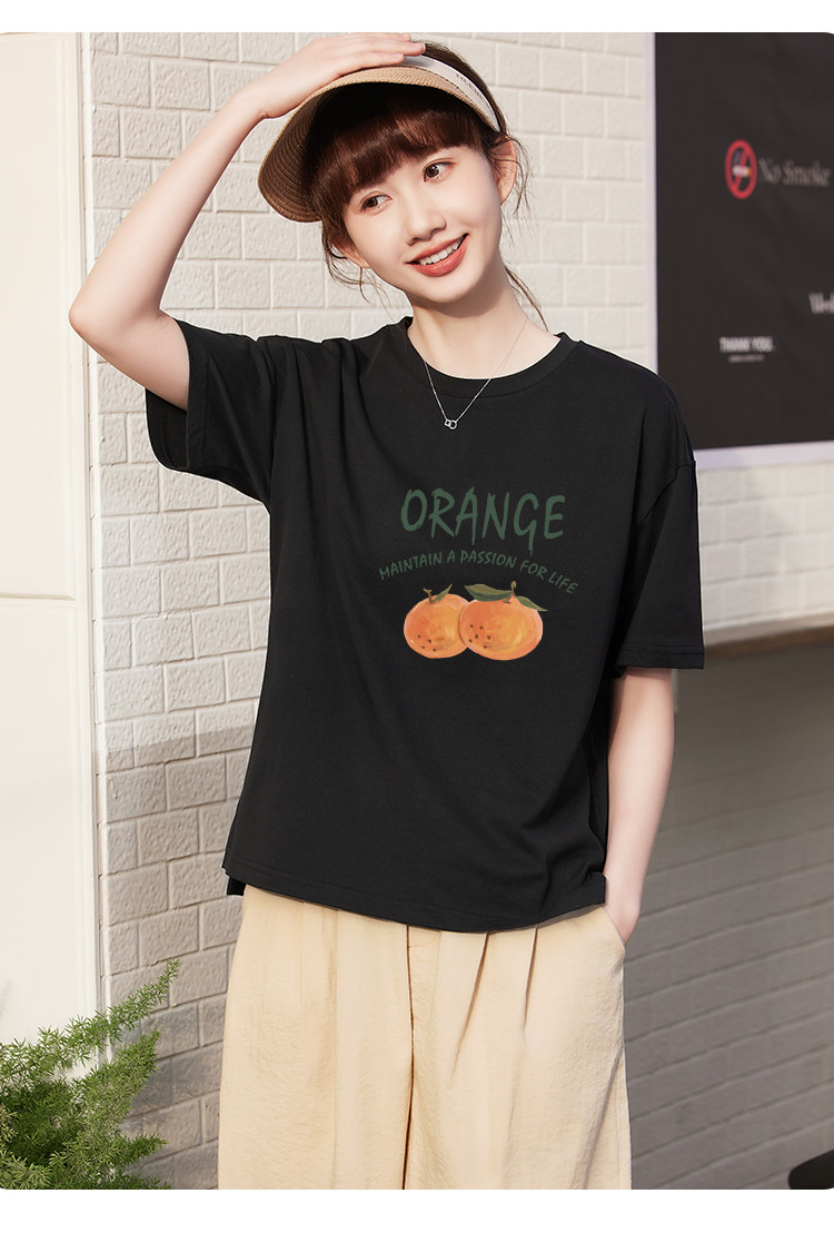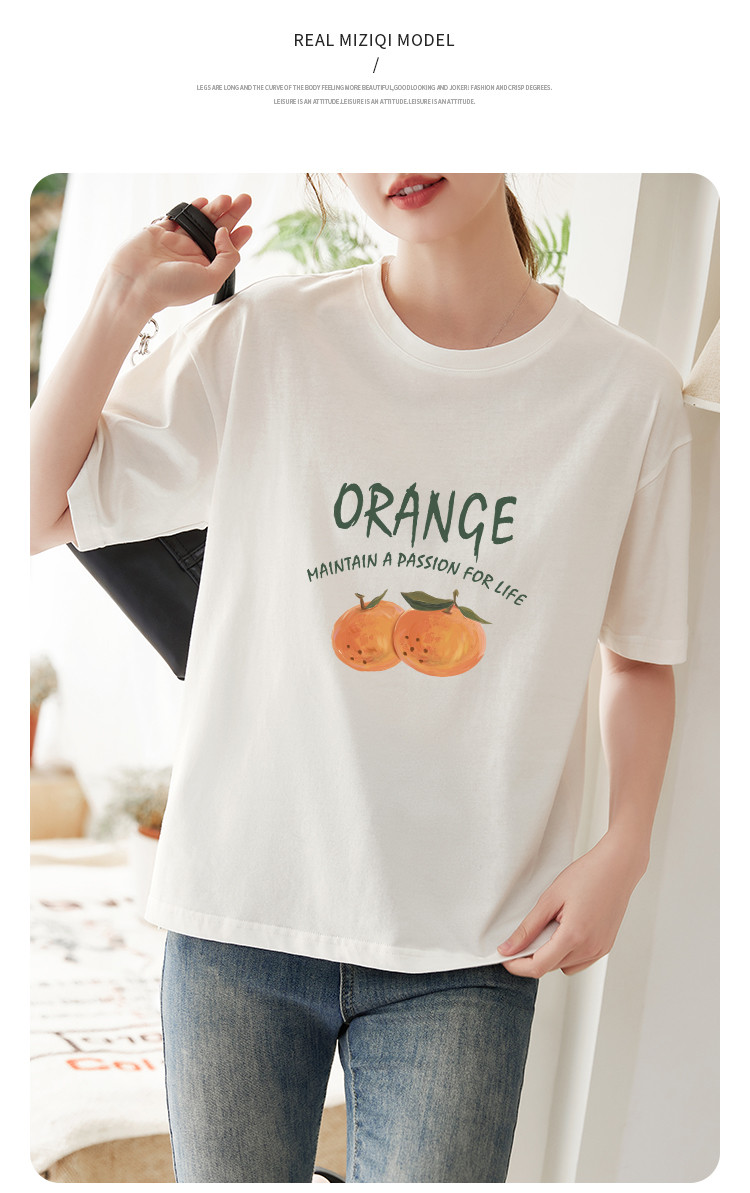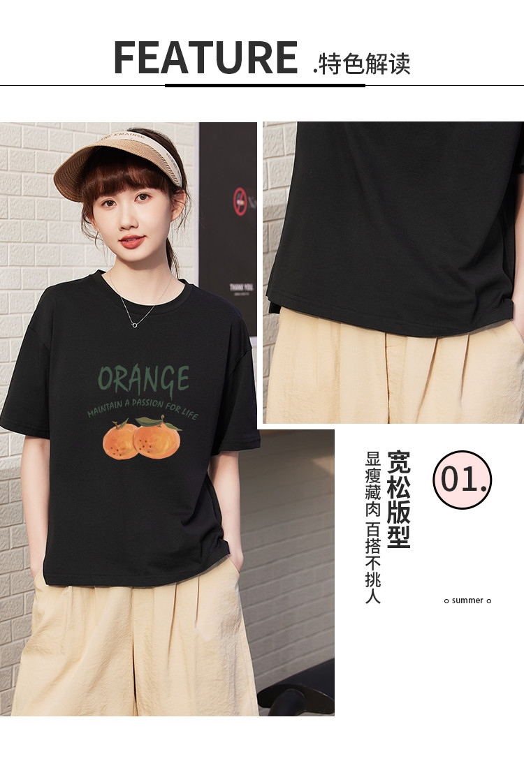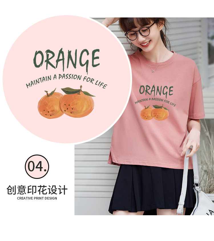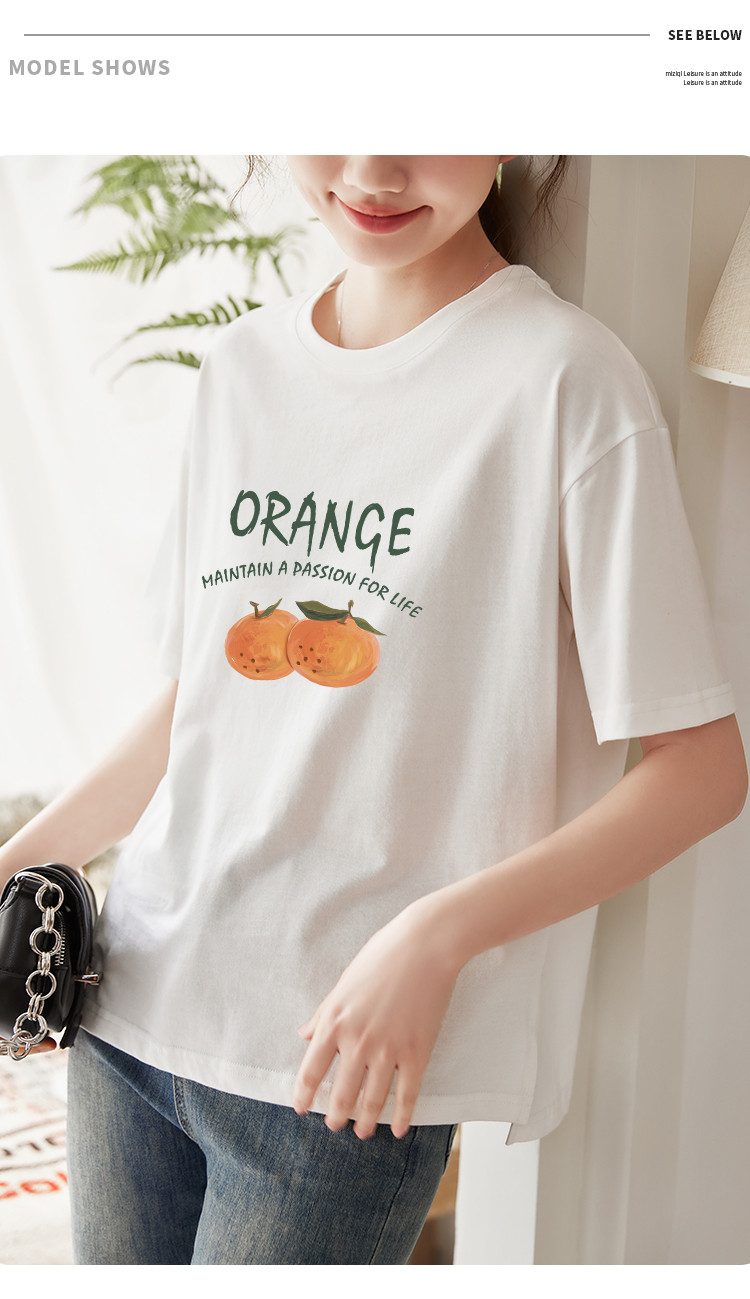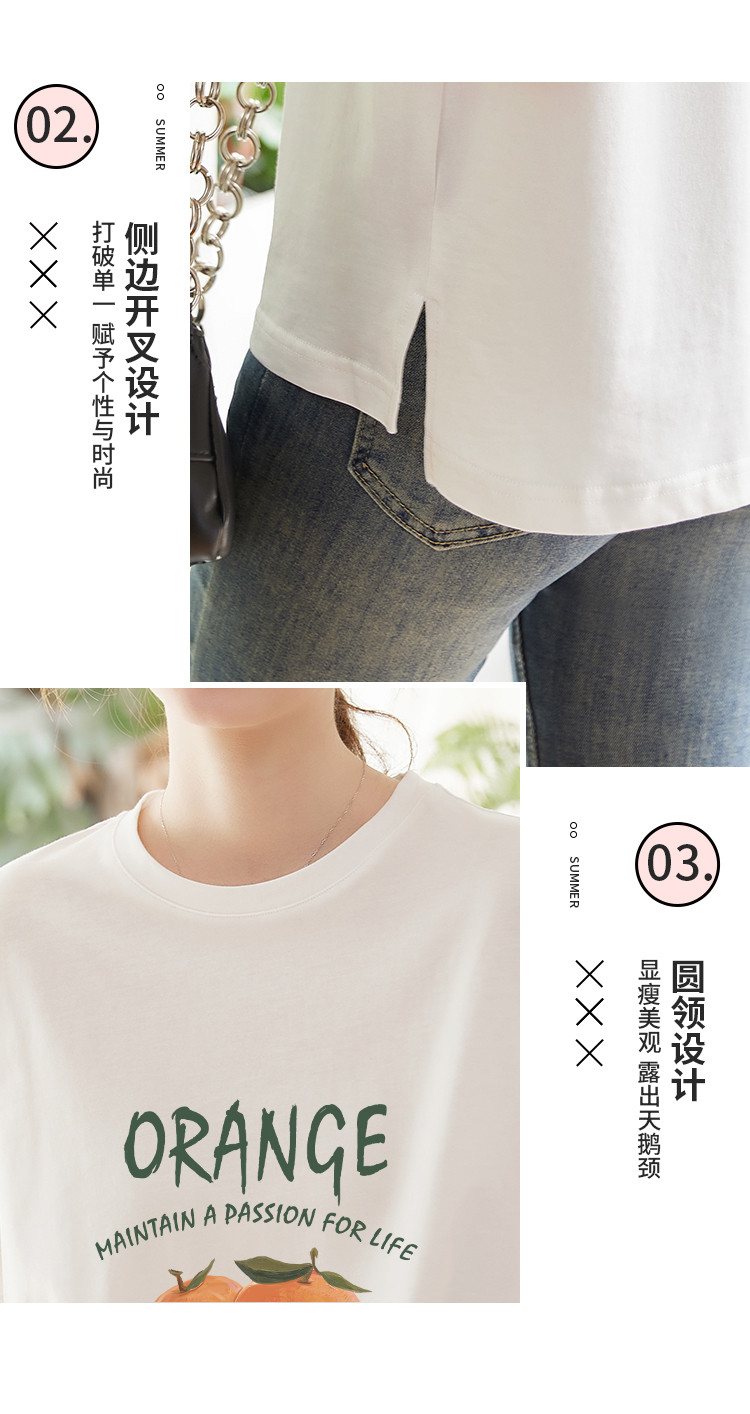 商品名称:米子旗夏季圆领创意印花女式大码T恤侧边开叉设计宽松休闲短袖 646746