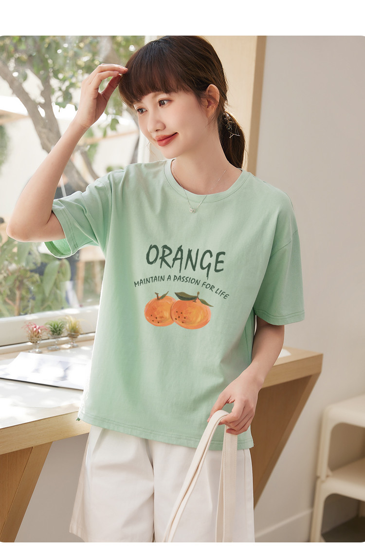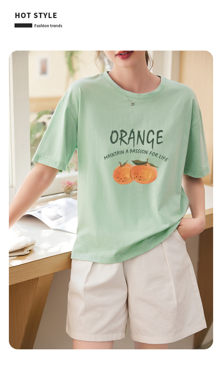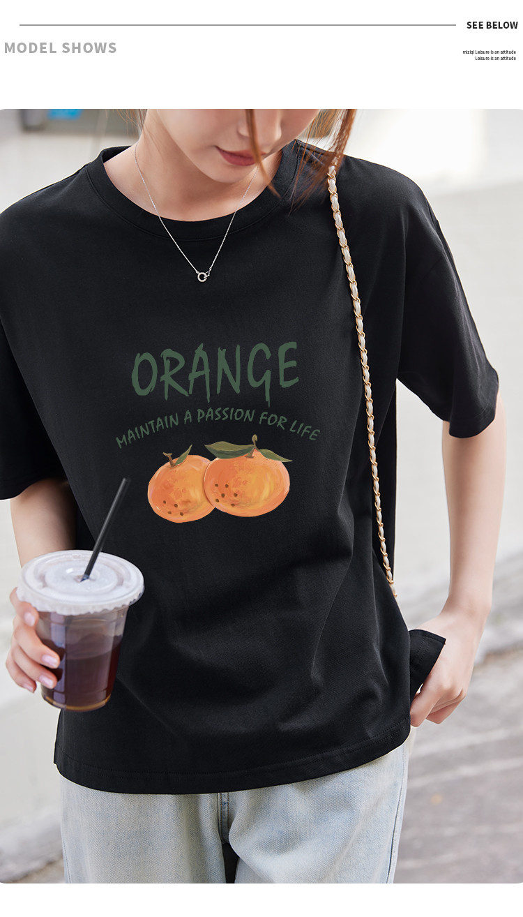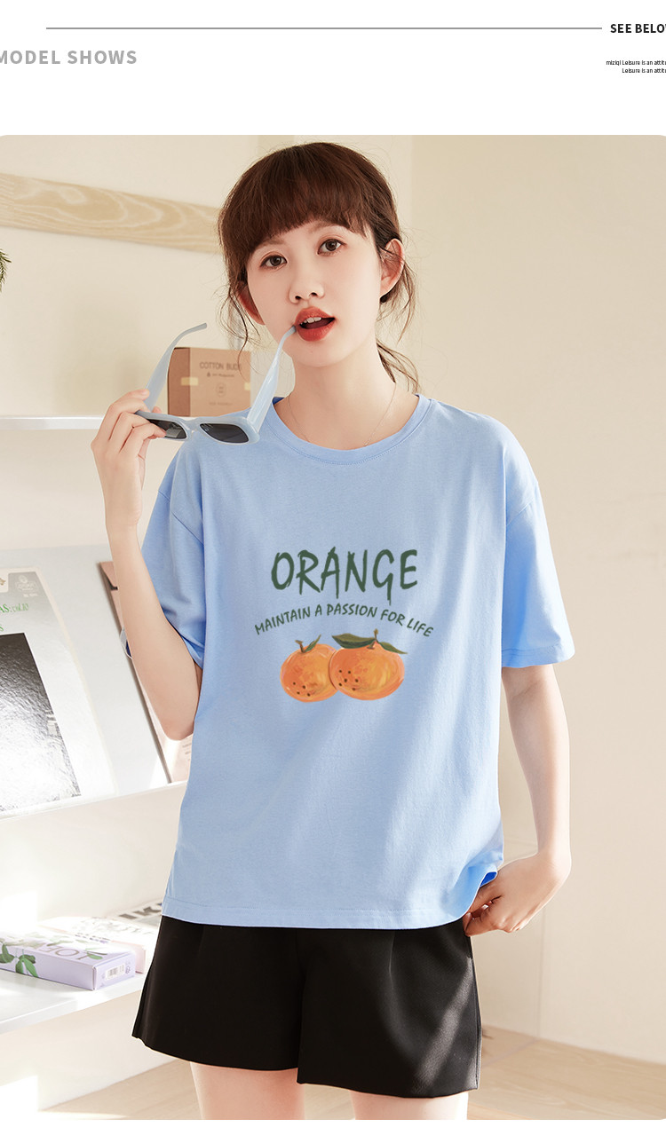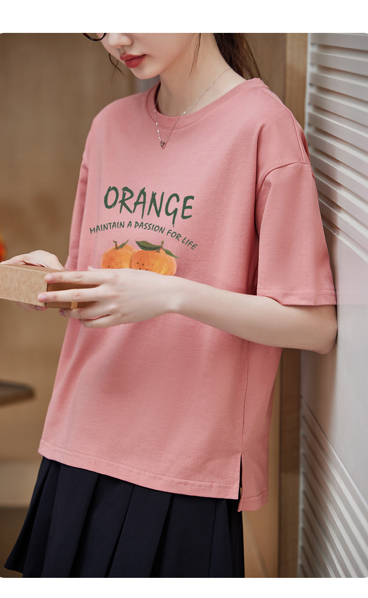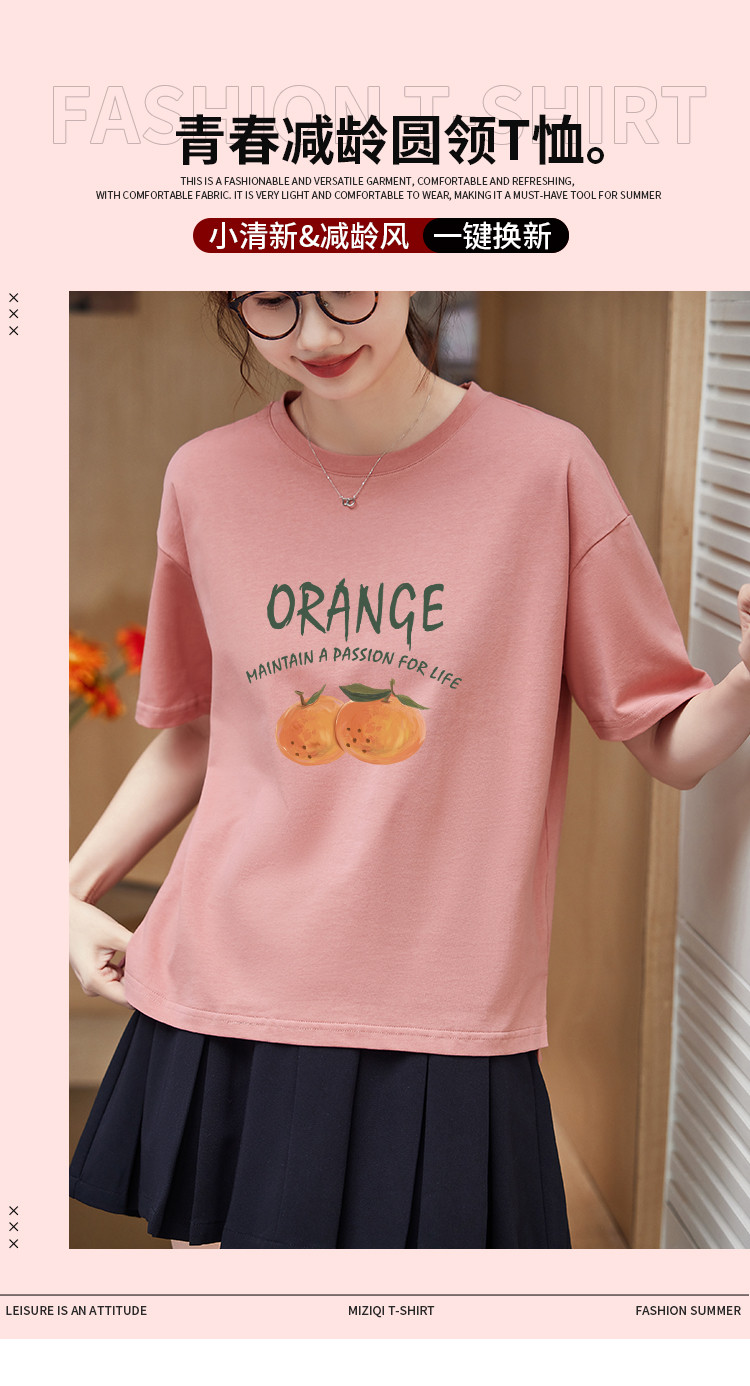 商品名称:米子旗夏季圆领创意印花女式大码T恤侧边开叉设计宽松休闲短袖 646746