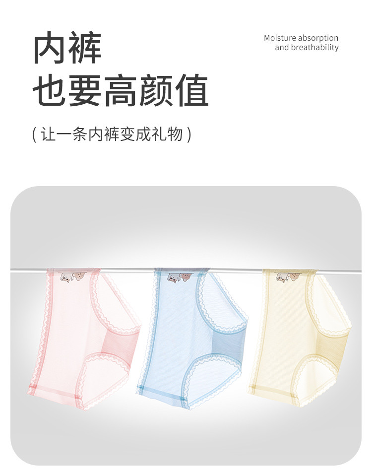 商品名称:【校服神器】3条装女童内裤舒适7A级抑菌底档儿童三角冰冰内裤 613259