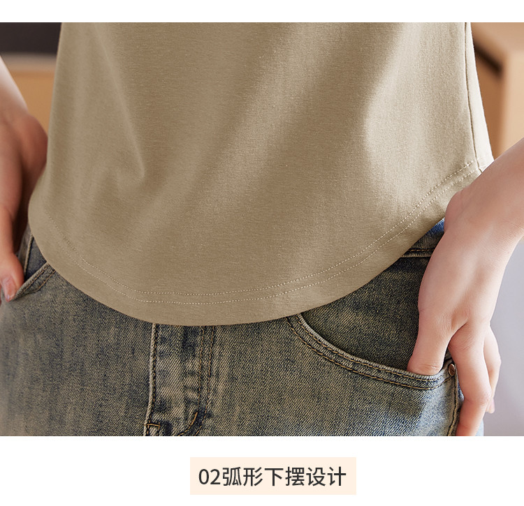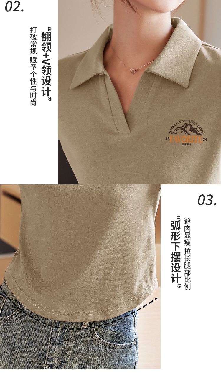米子旗夏季女翻领印花T恤弧形下摆简约小个子短袖上衣 276506