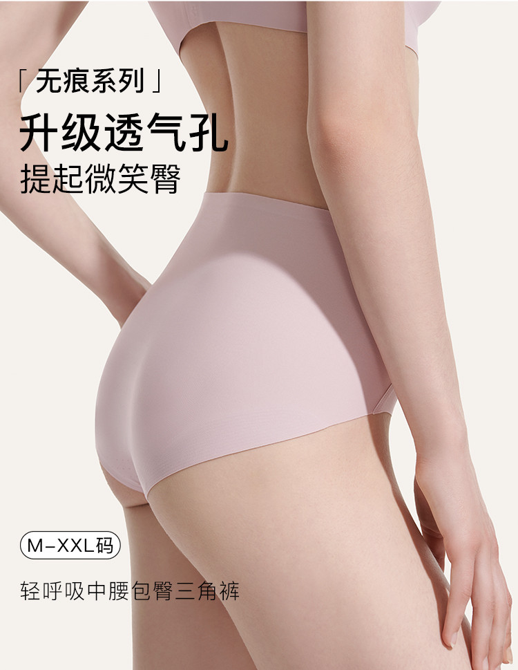 商品名称:【透气无痕】轻呼吸中腰包臀三角裤隐形抗菌纯棉底裆女士内裤 479296