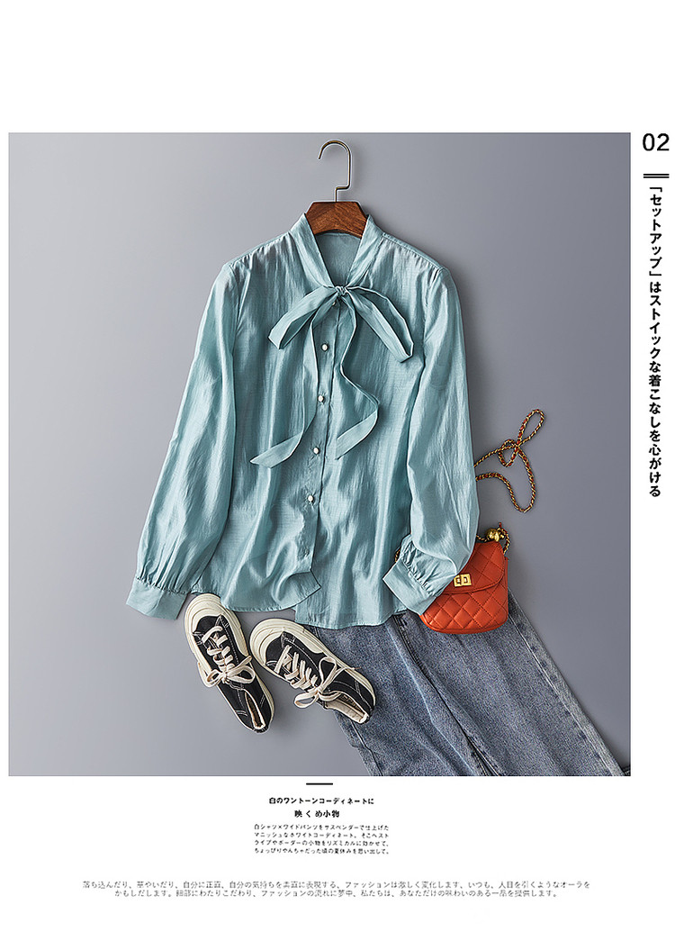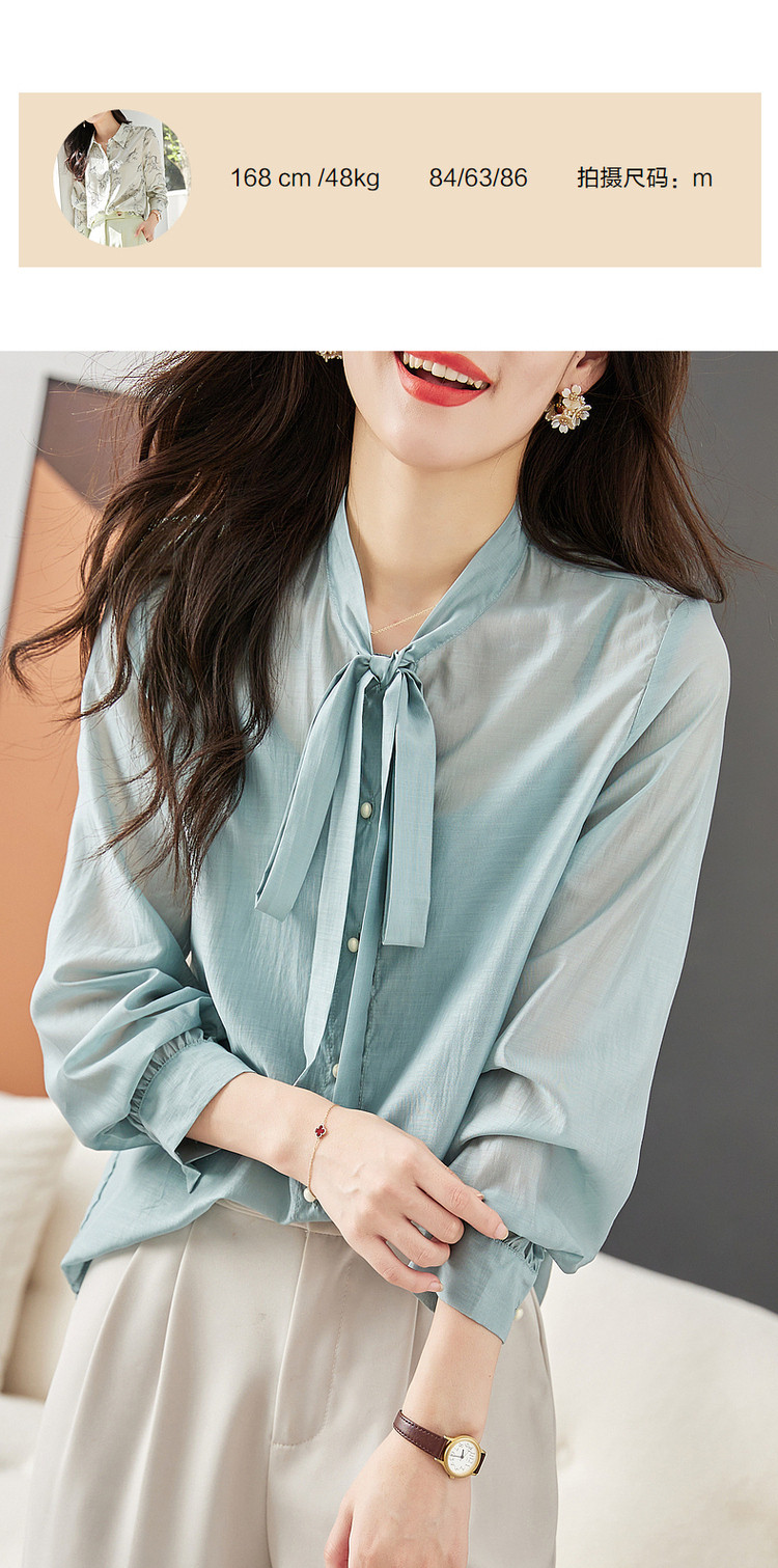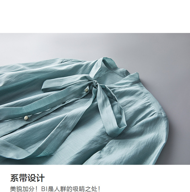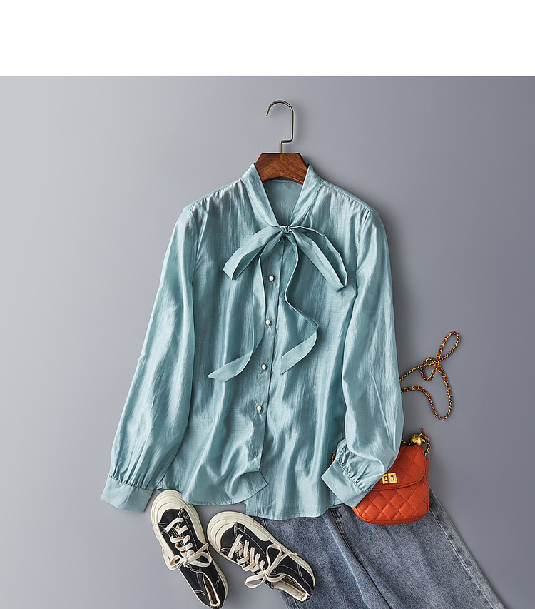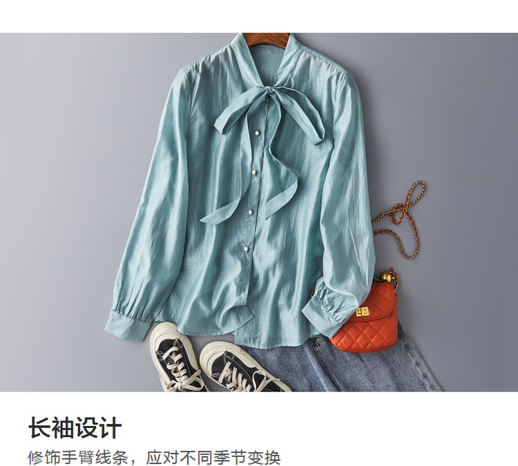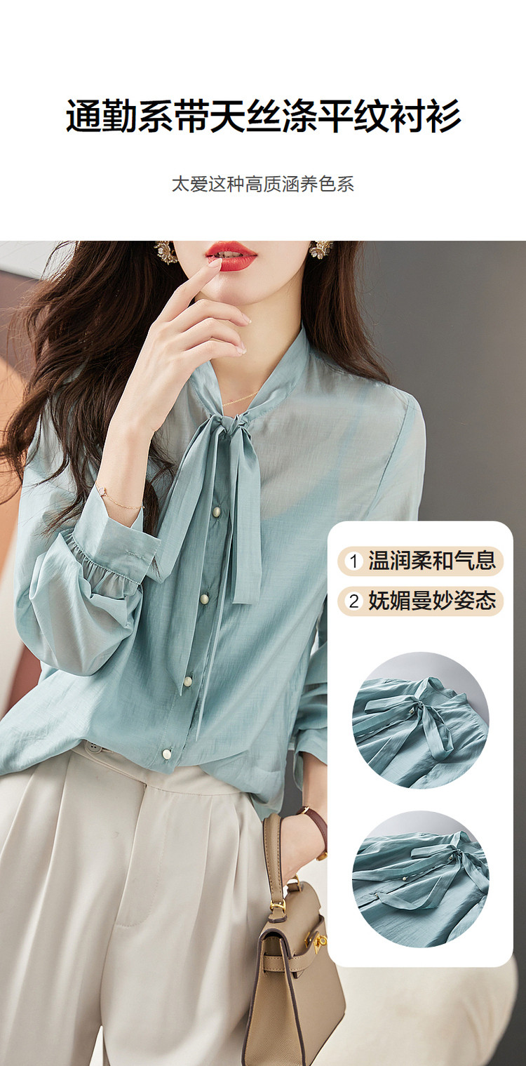 商品名称:【系带衬衣】秋季简约通勤长袖仿天丝涤平纹衬衫女 454465