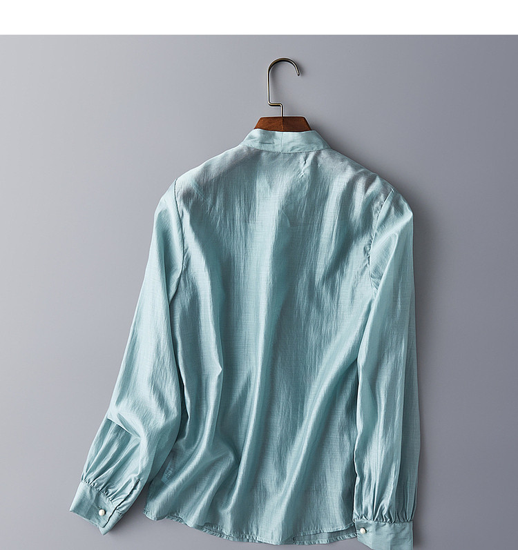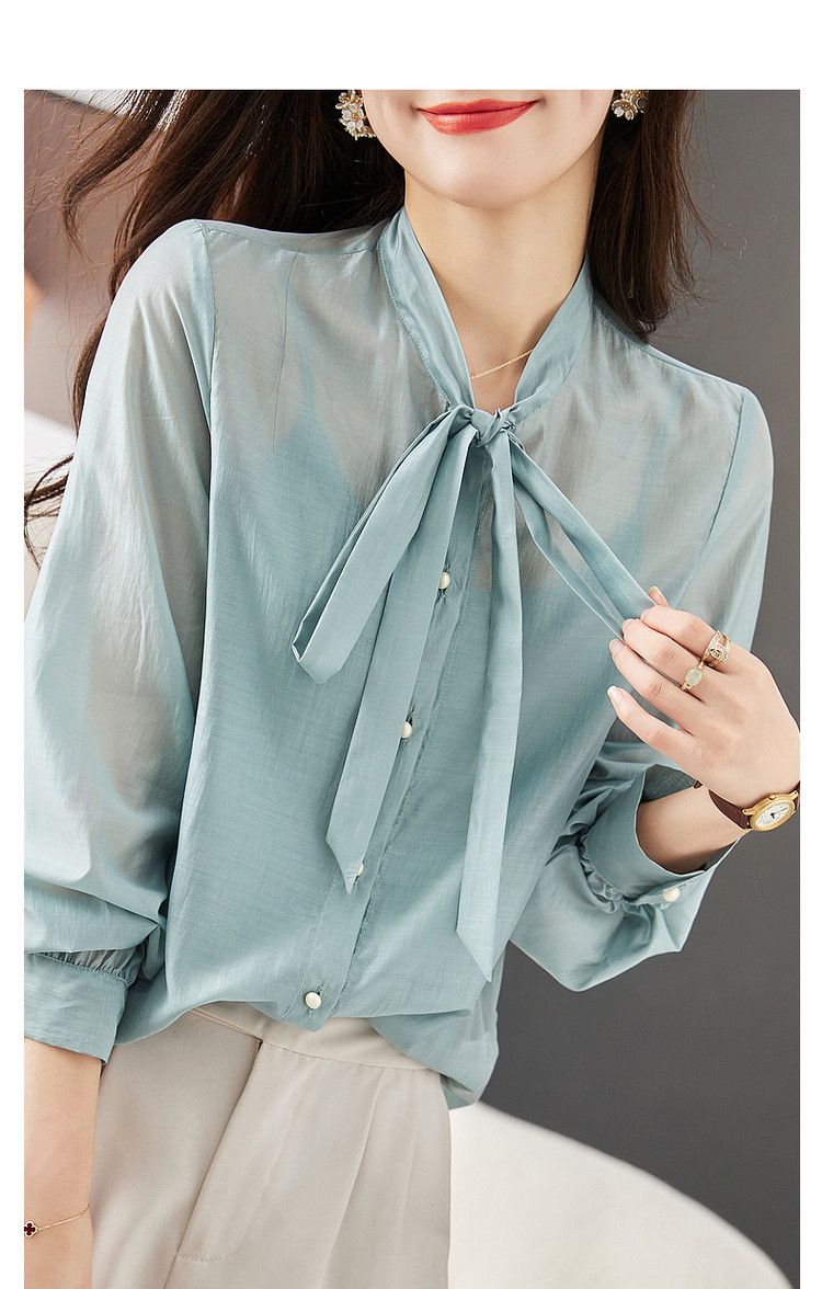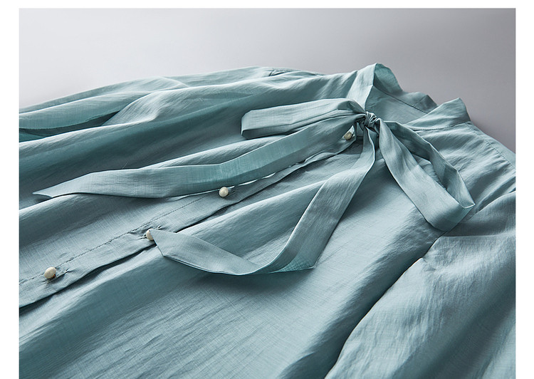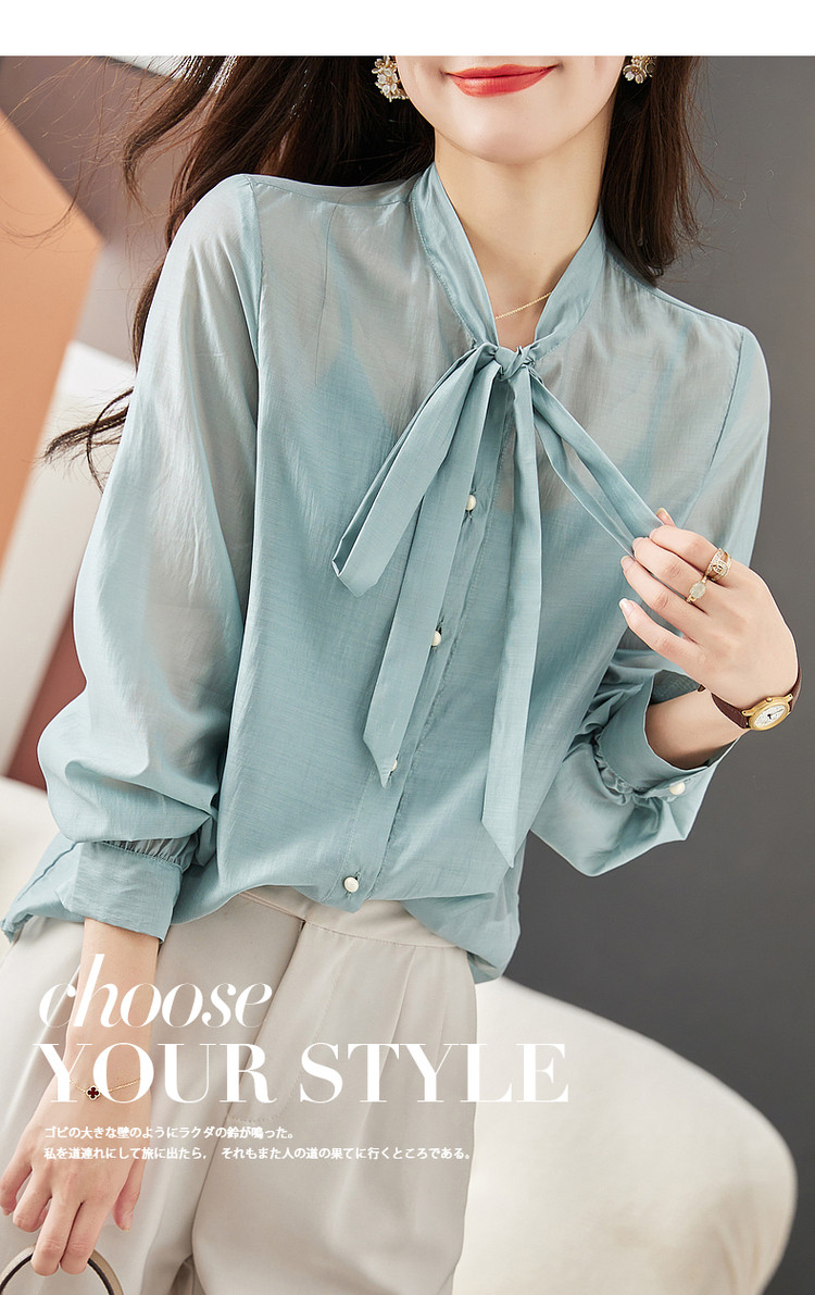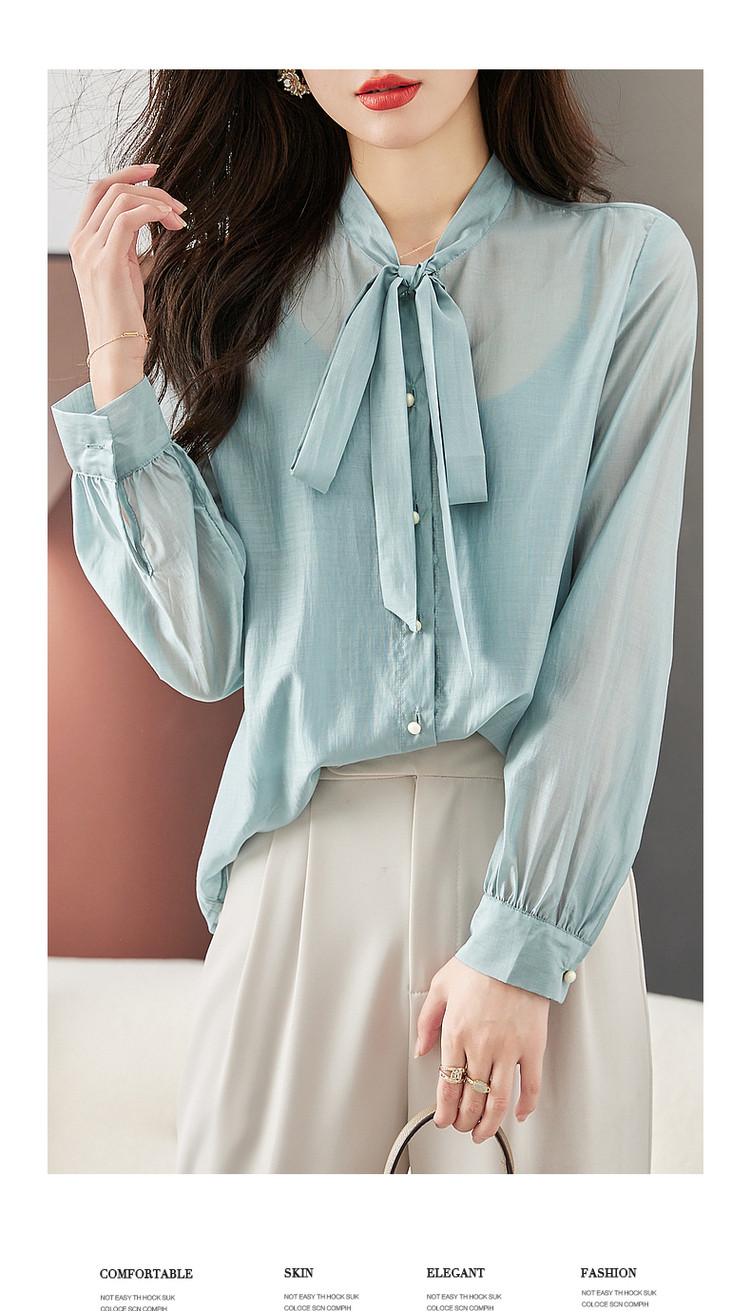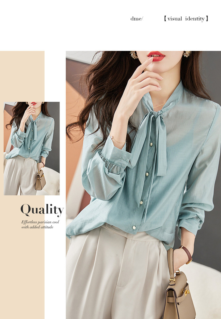 商品名称:【系带衬衣】秋季简约通勤长袖仿天丝涤平纹衬衫女 454465
