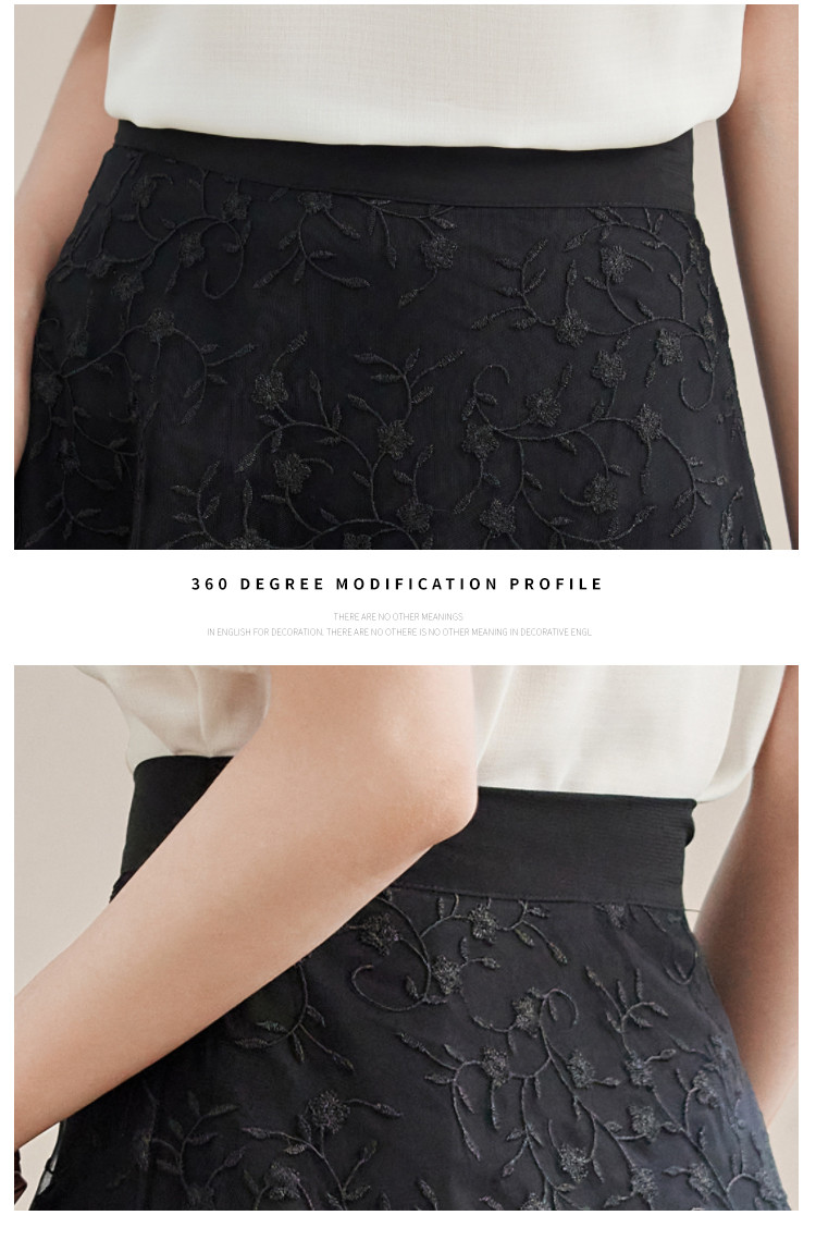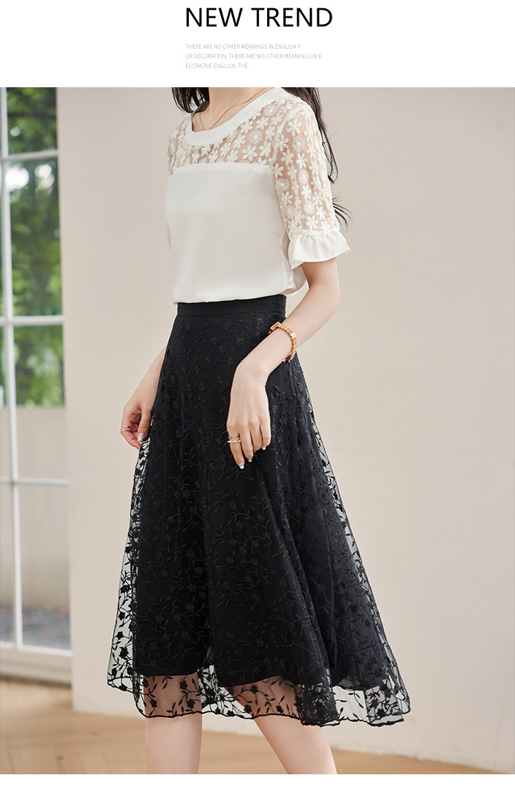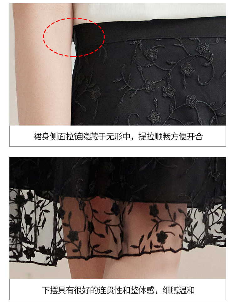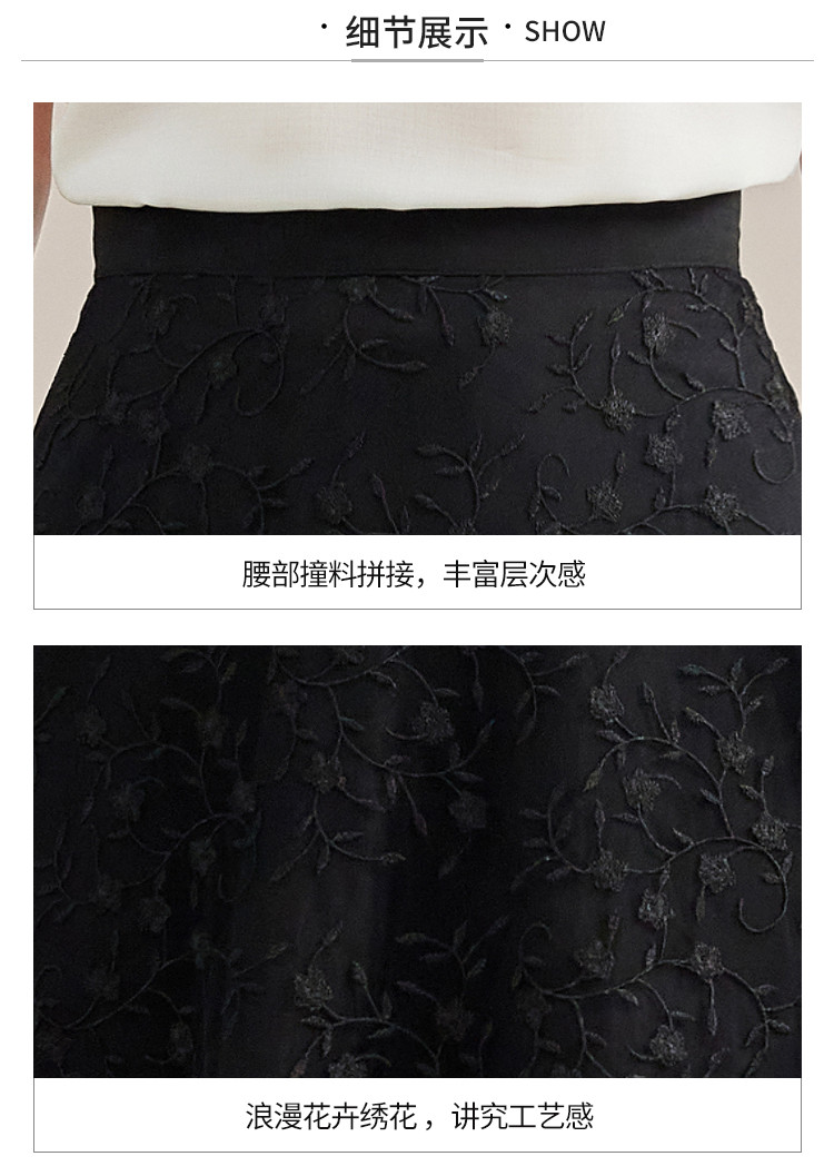 商品名称:轻奢2025清新优雅气质百搭休闲纯色蕾丝绣花大摆a字中长裙女 046680