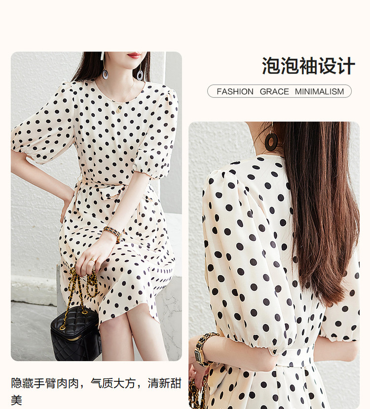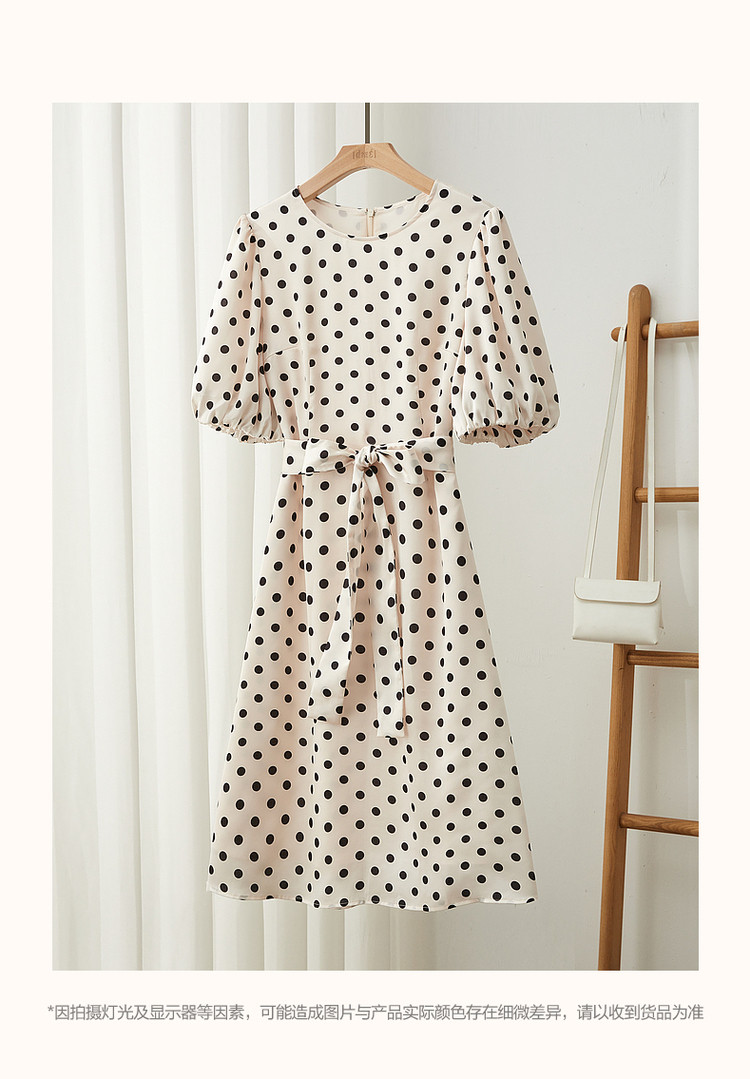 商品名称:【泡泡缎印花茶歇裙】春秋圆领收腰泡泡袖连衣裙女中长款 626113