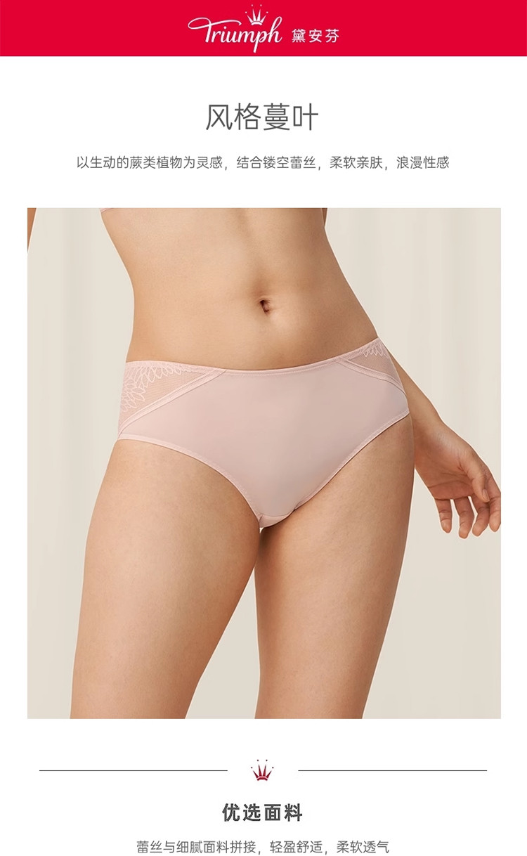 商品名称:黛安芬风格蔓叶蕾丝内裤女舒适中腰平角小裤E004046 163018