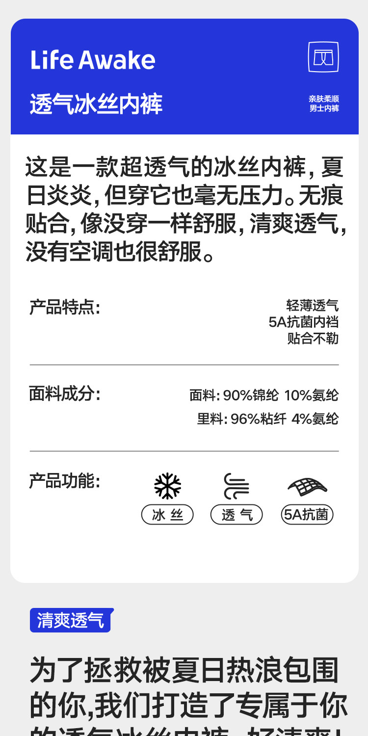 商品名称:【出清捡漏 5A抑菌档】4条装男士无痕内裤男高弹轻薄平角短裤 183130