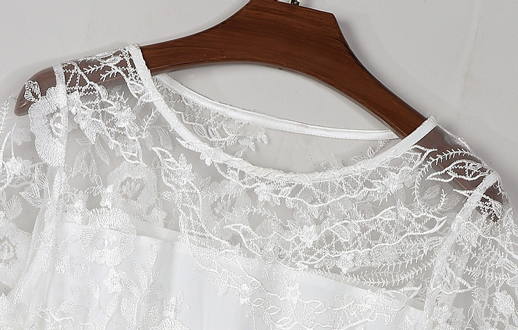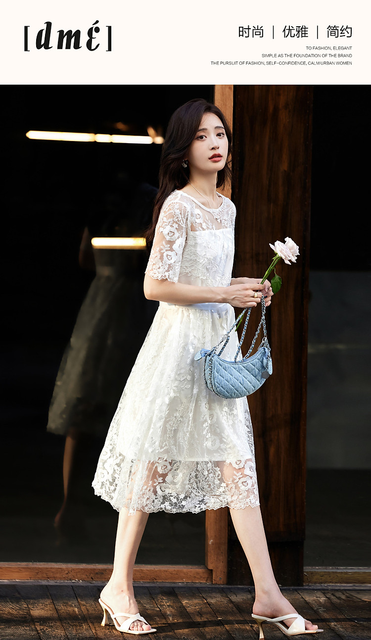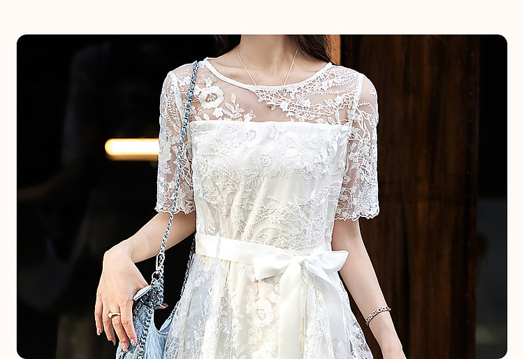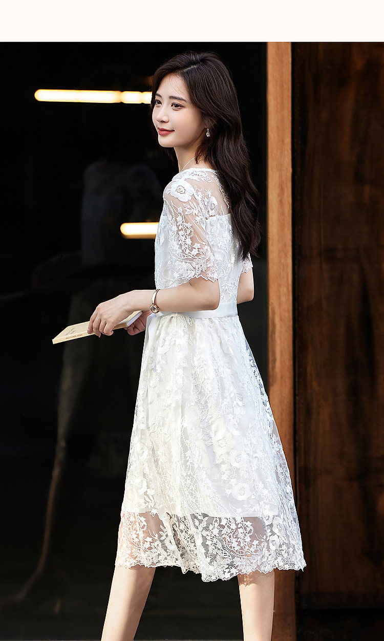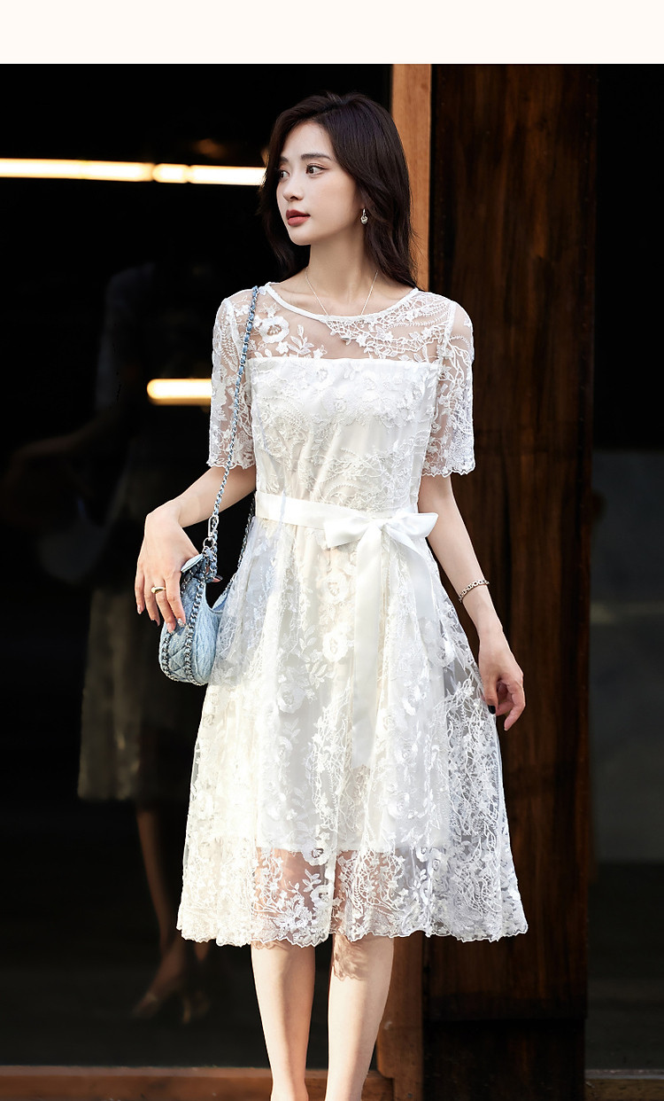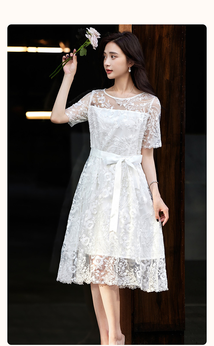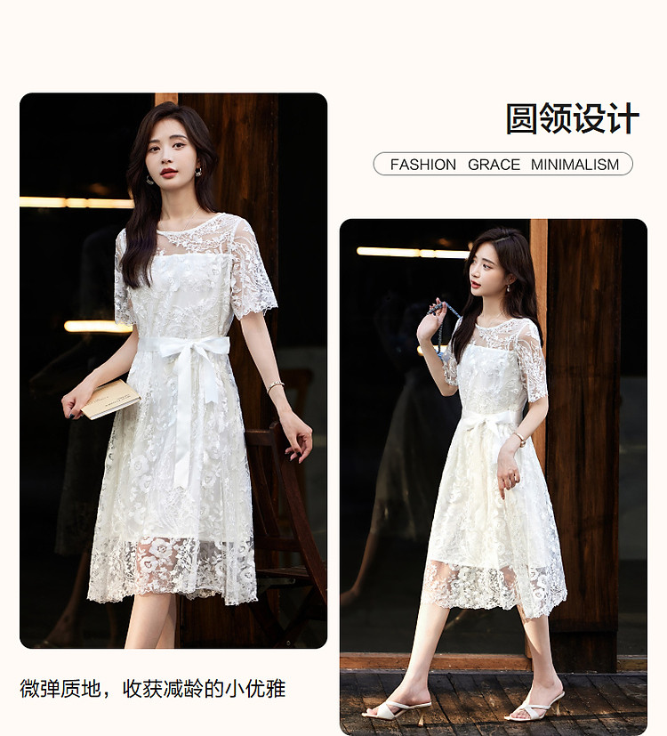 商品名称:【口碑都市丽人】夏轻熟风小性感蕾丝圆领收腰a字连衣裙女长 951233