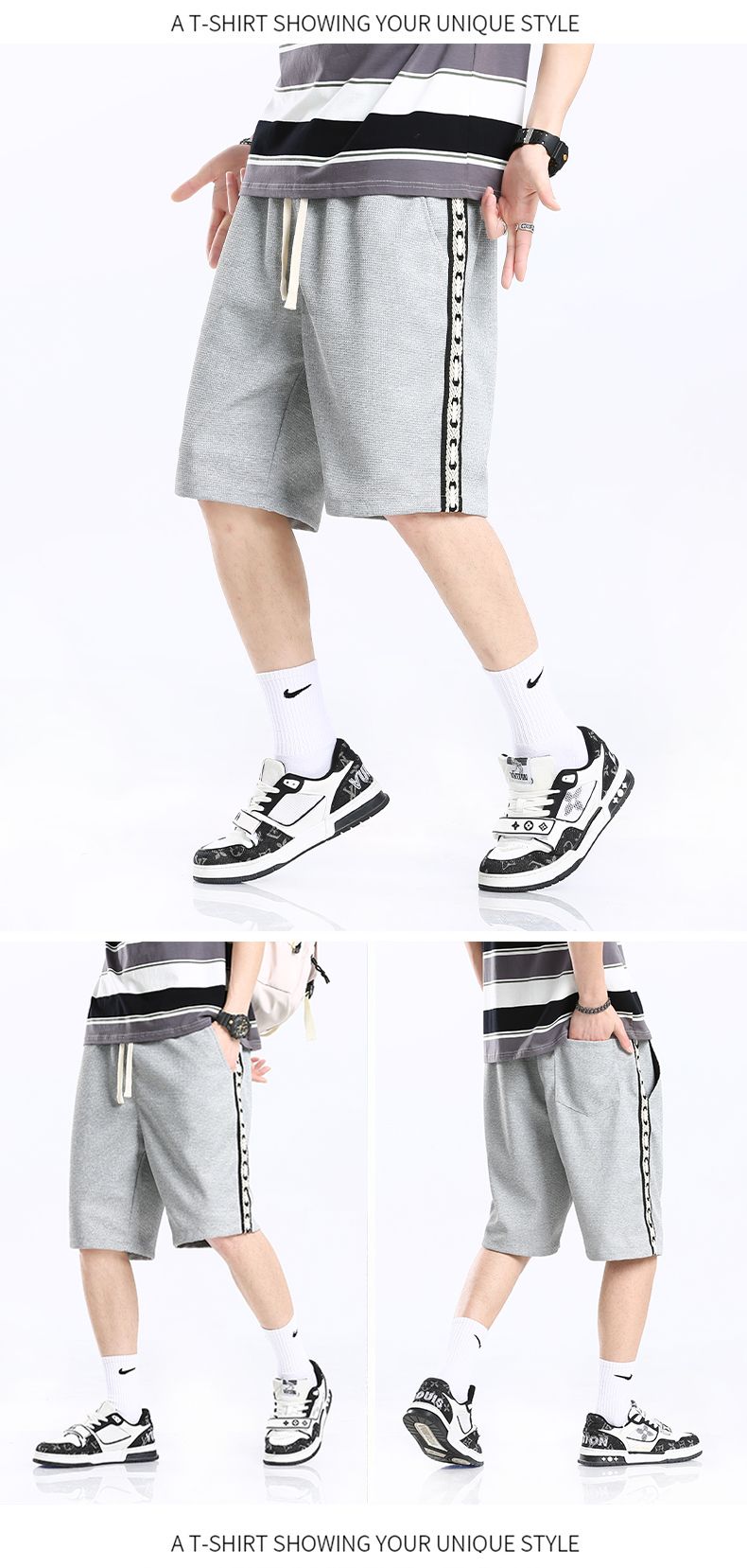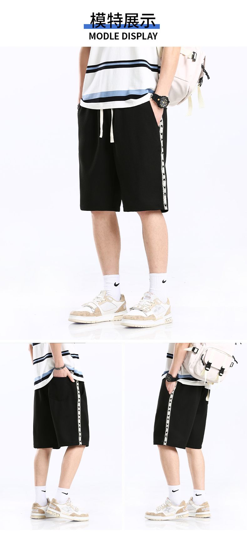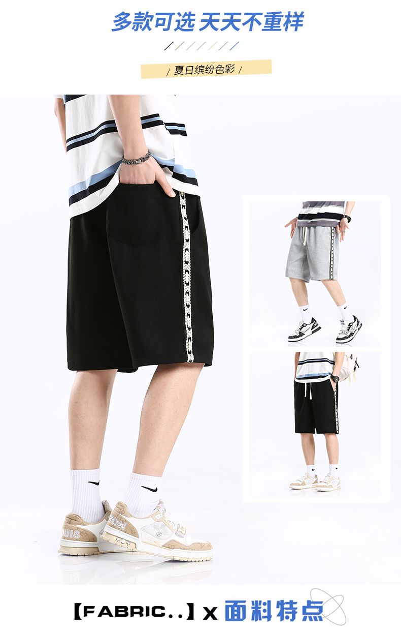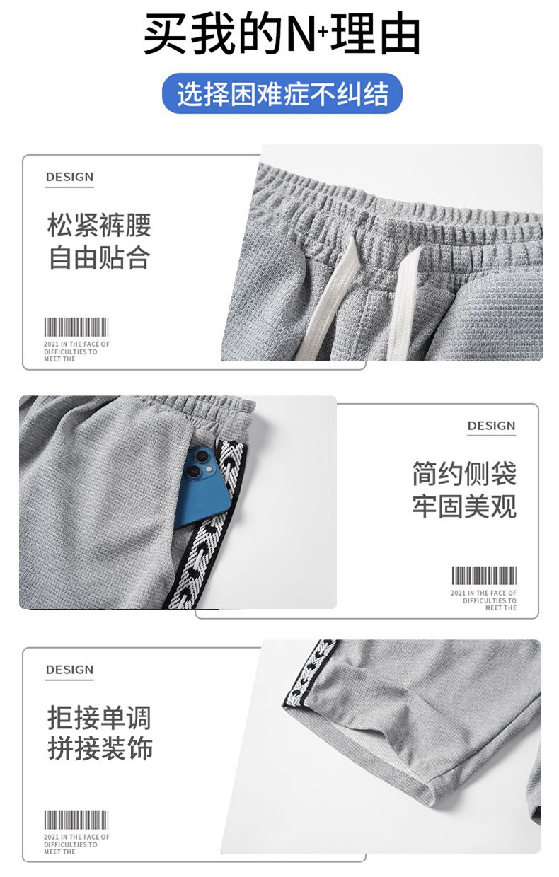 商品名称:曼西尔奴男士夏季透气华夫格侧边织带运动风弹力舒适五分休闲短裤215210TM