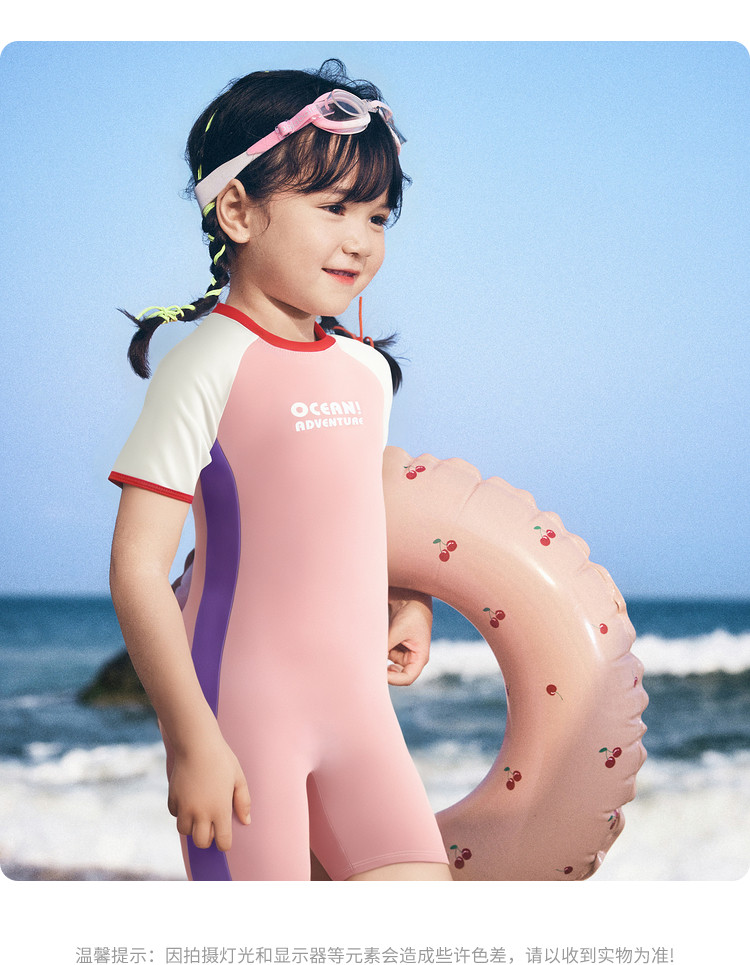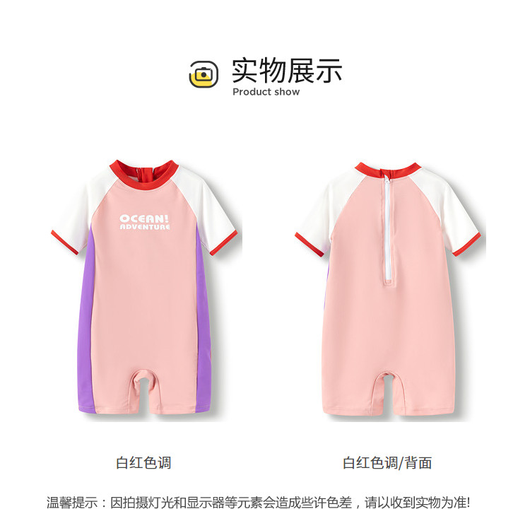 商品名称:防晒UPF50+女童泳衣儿童泳装小童宝宝防晒连体高弹运动撞色 438085