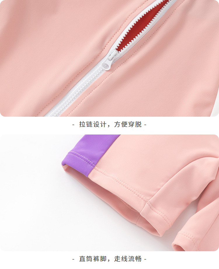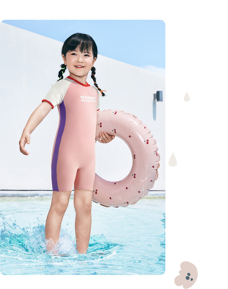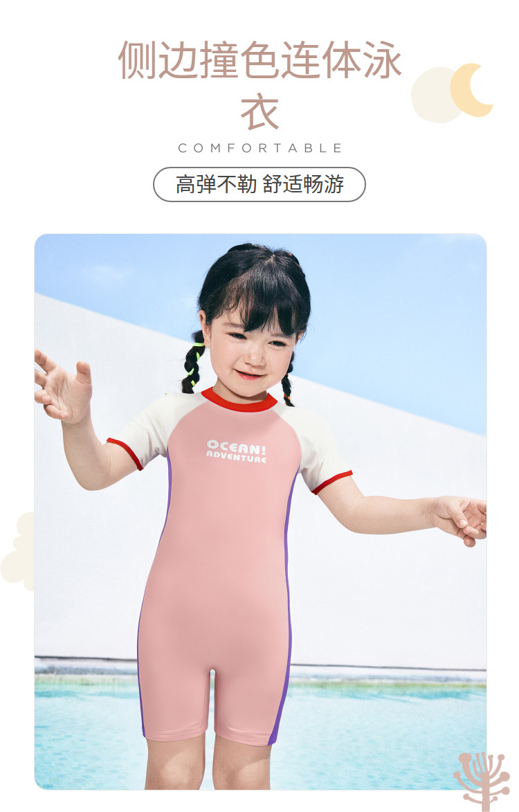 防晒UPF50+女童泳衣儿童泳装小童宝宝防晒连体高弹运动撞色 438085