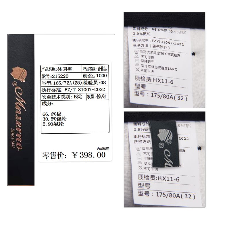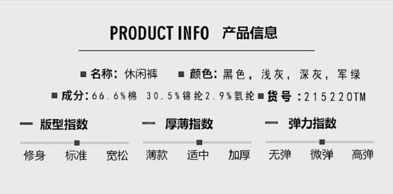 商品名称:曼西尔奴男士棉质纯色直筒修身商务风百搭舒适休闲裤215220TM