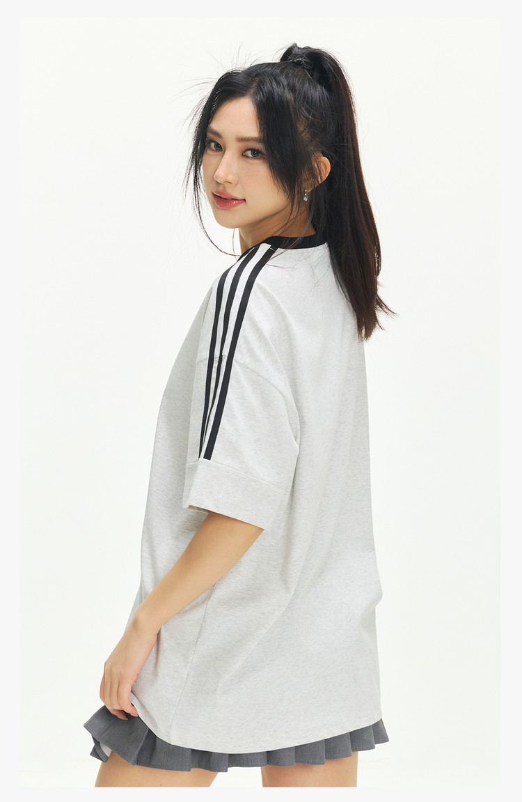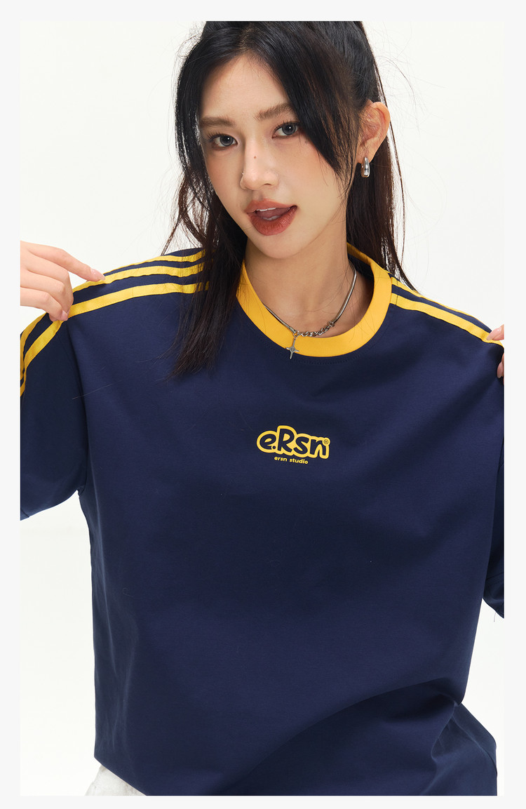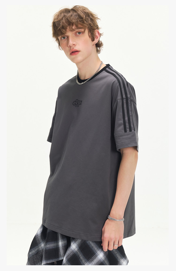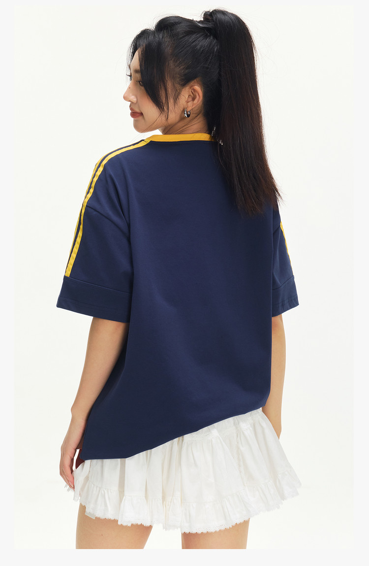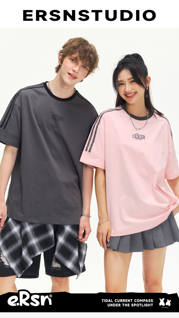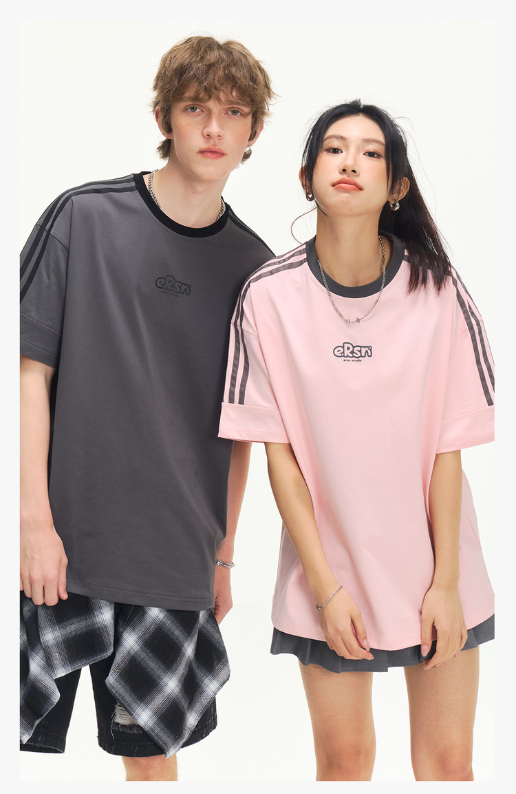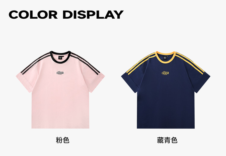 商品名称:美式复古三条杠短袖T恤男2025夏季潮牌圆领休闲半袖女 717911