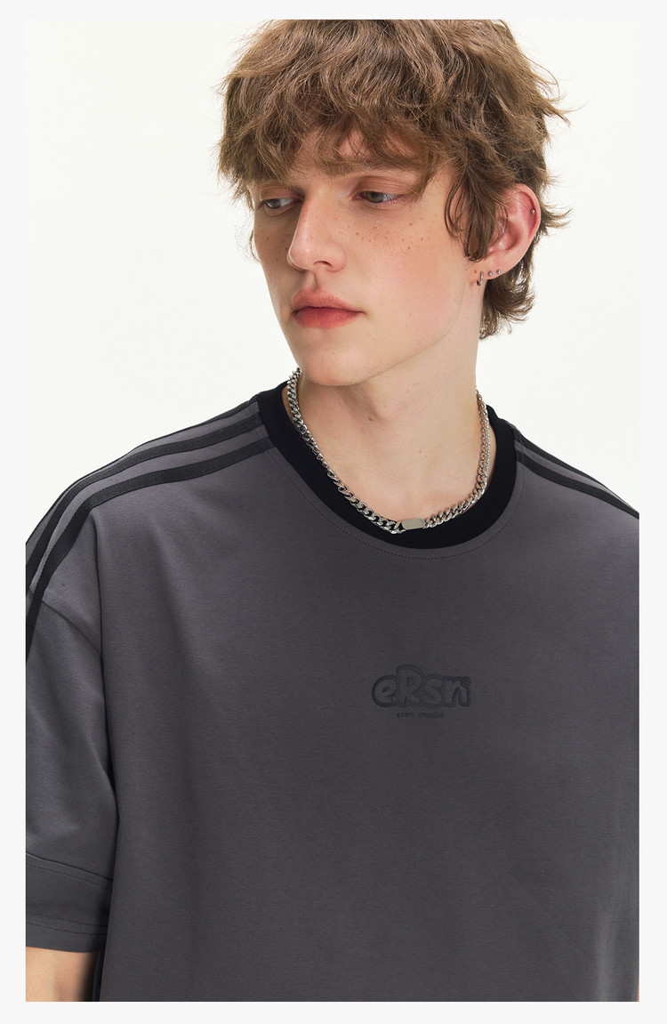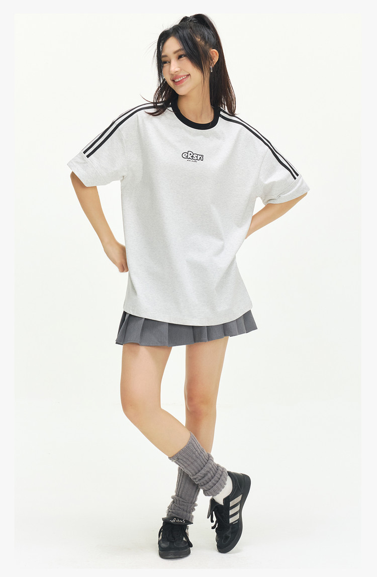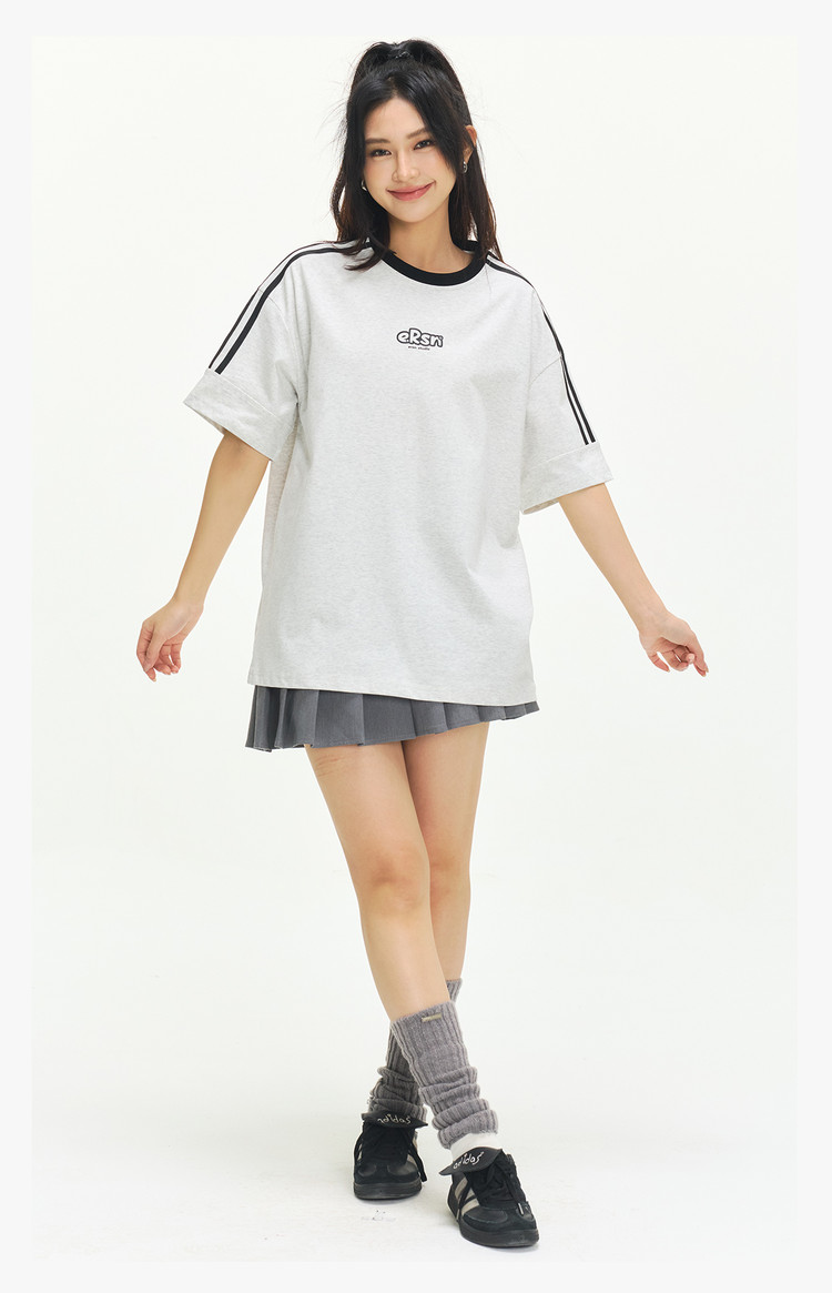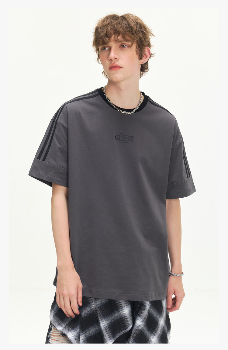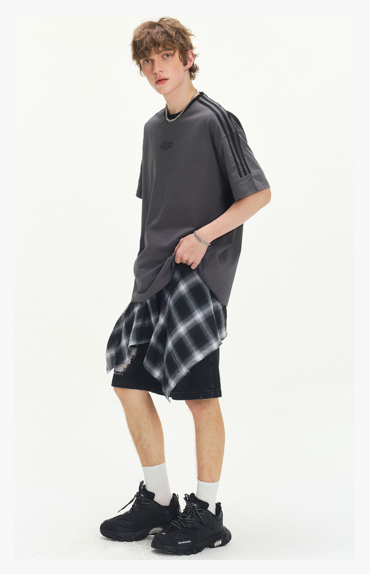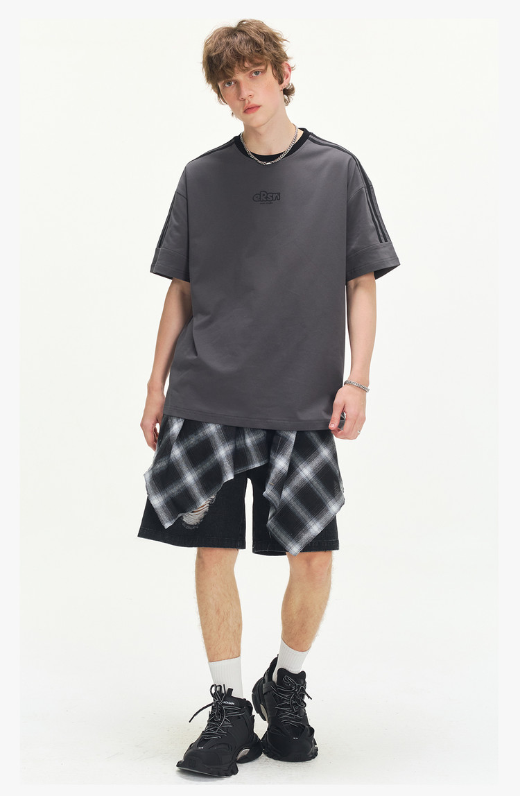 商品名称:美式复古三条杠短袖T恤男2025夏季潮牌圆领休闲半袖女 717911