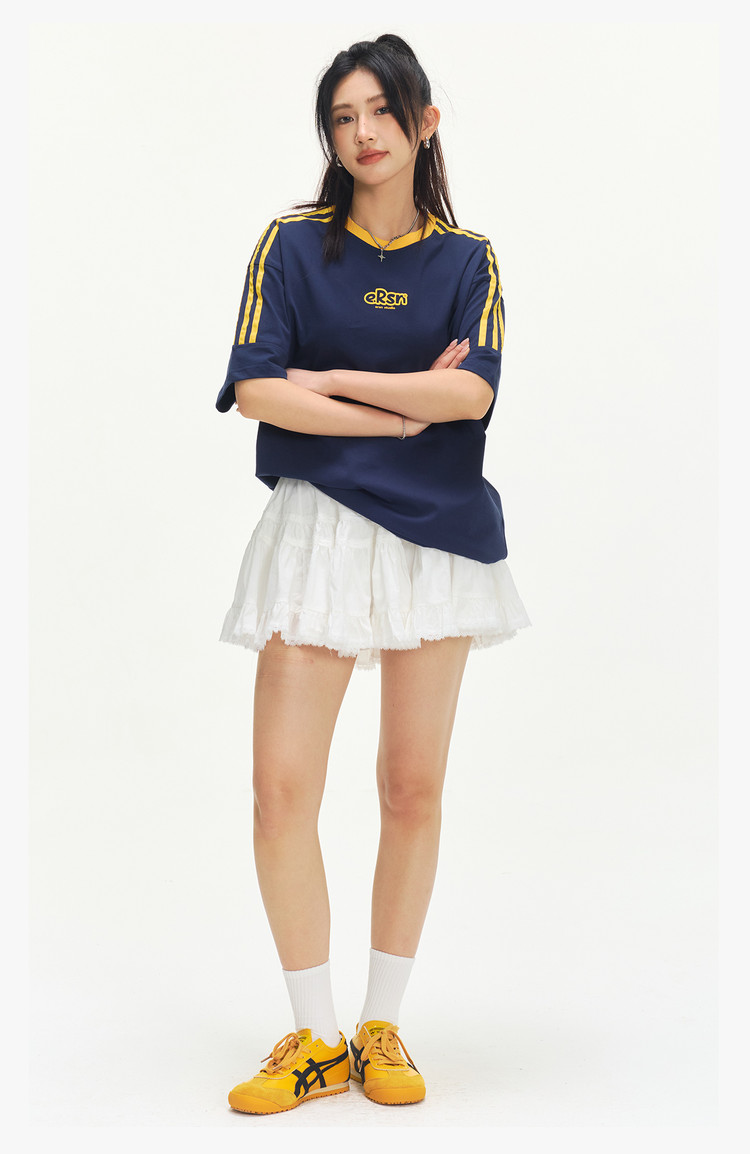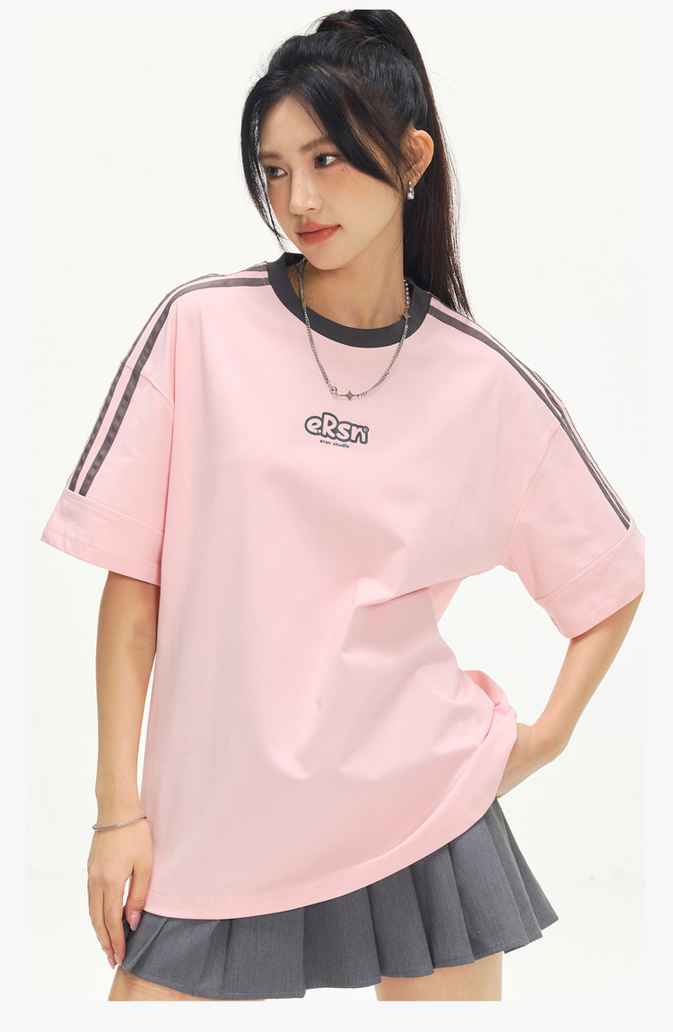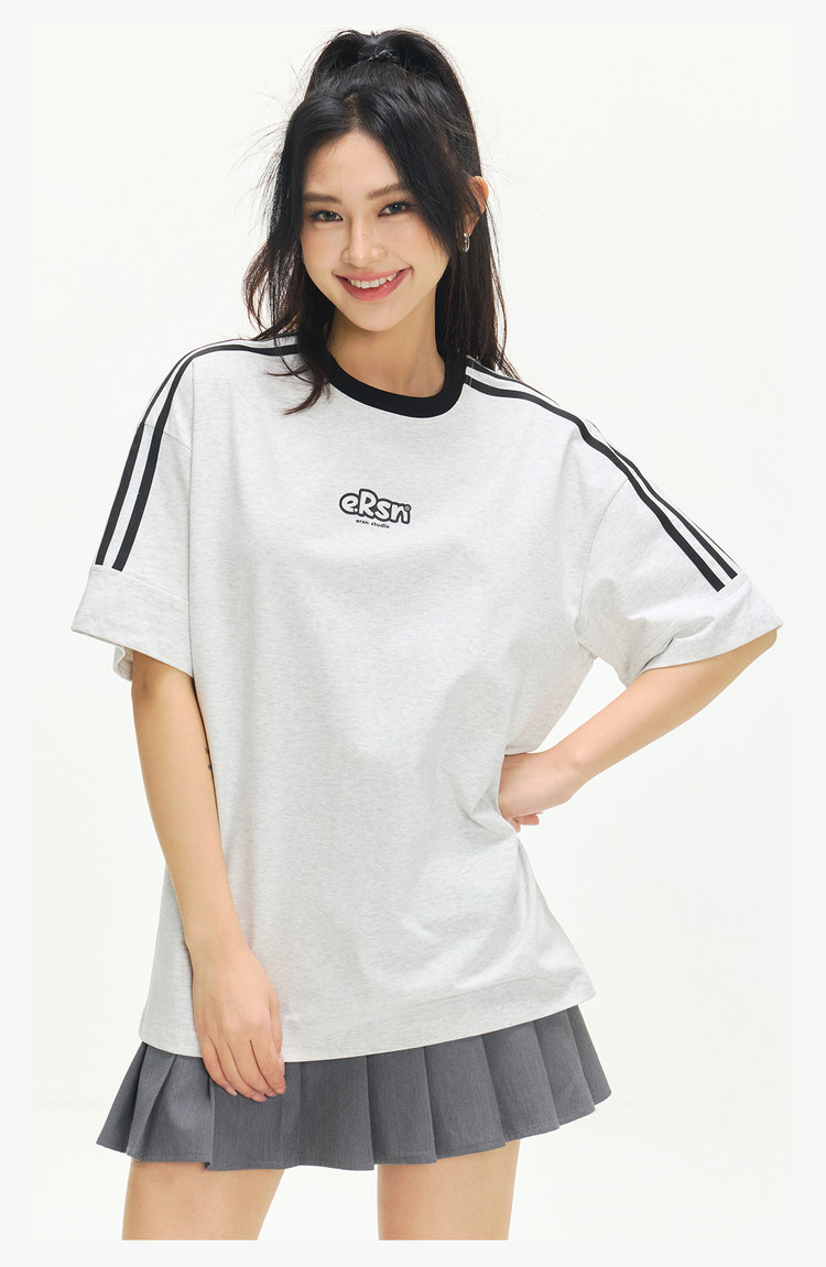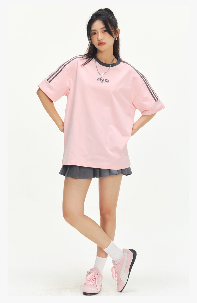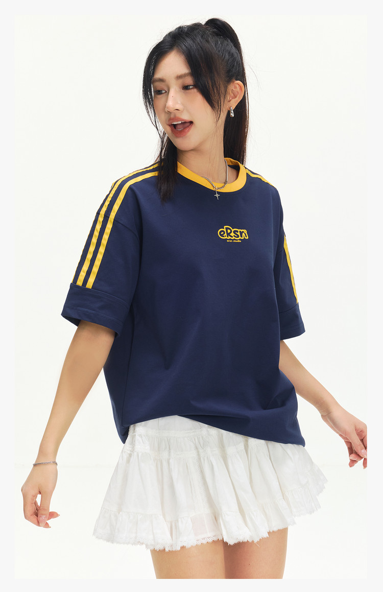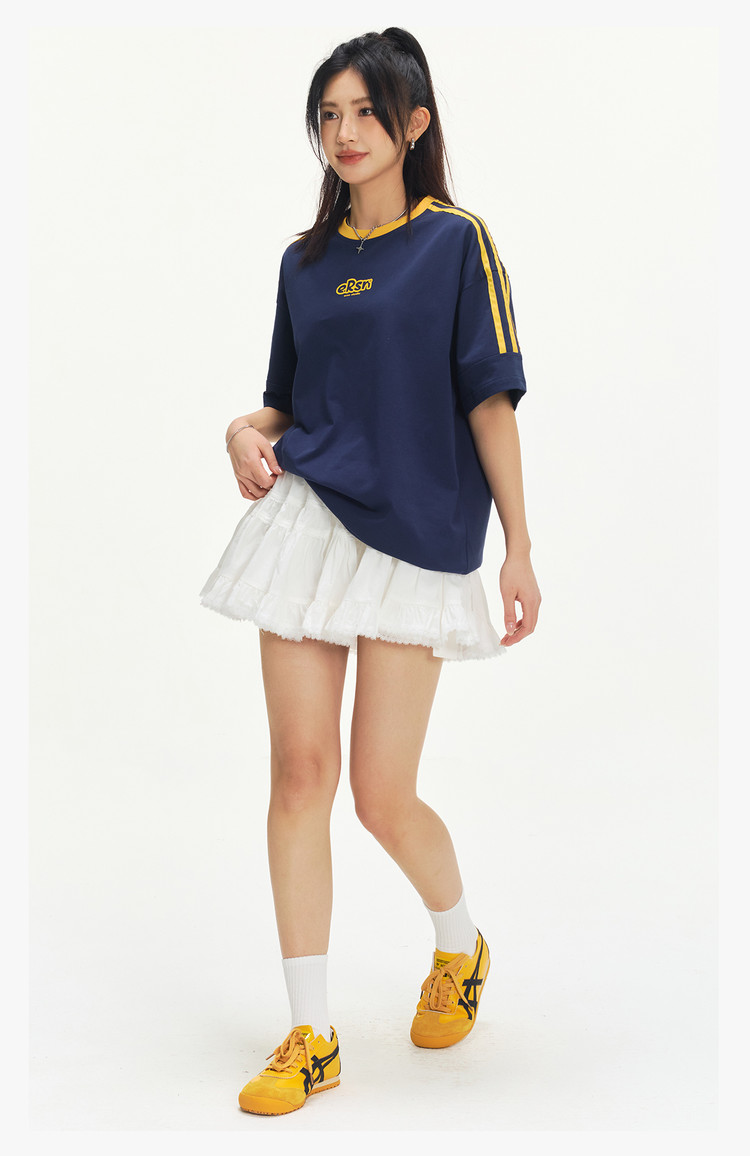 商品名称:美式复古三条杠短袖T恤男2025夏季潮牌圆领休闲半袖女 717911