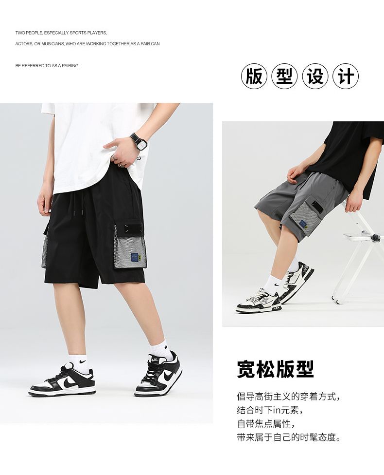 曼西尔奴男士夏季透气潮流时尚工装多口袋弹力舒适五分休闲短裤215206TM