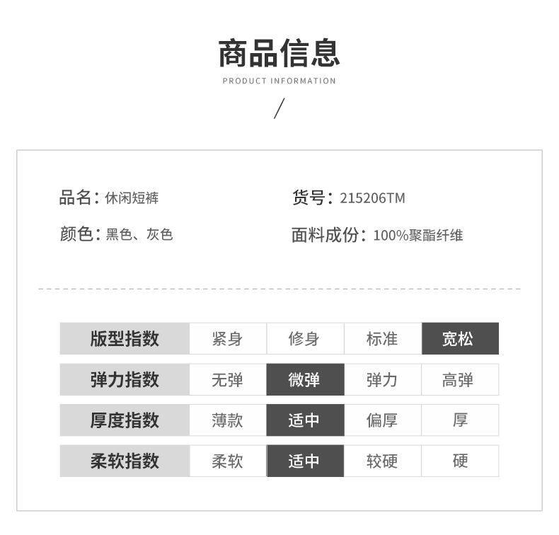 商品名称:曼西尔奴男士夏季透气潮流时尚工装多口袋弹力舒适五分休闲短裤215206TM