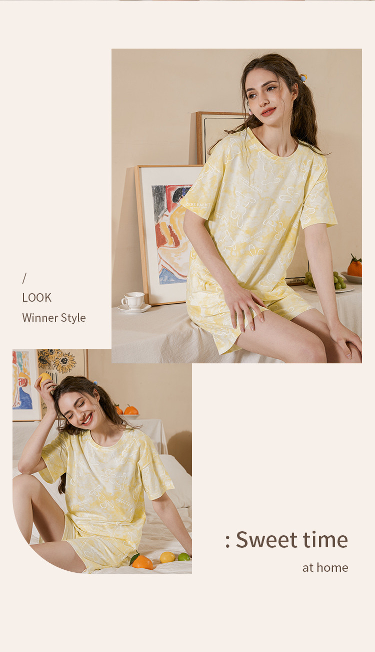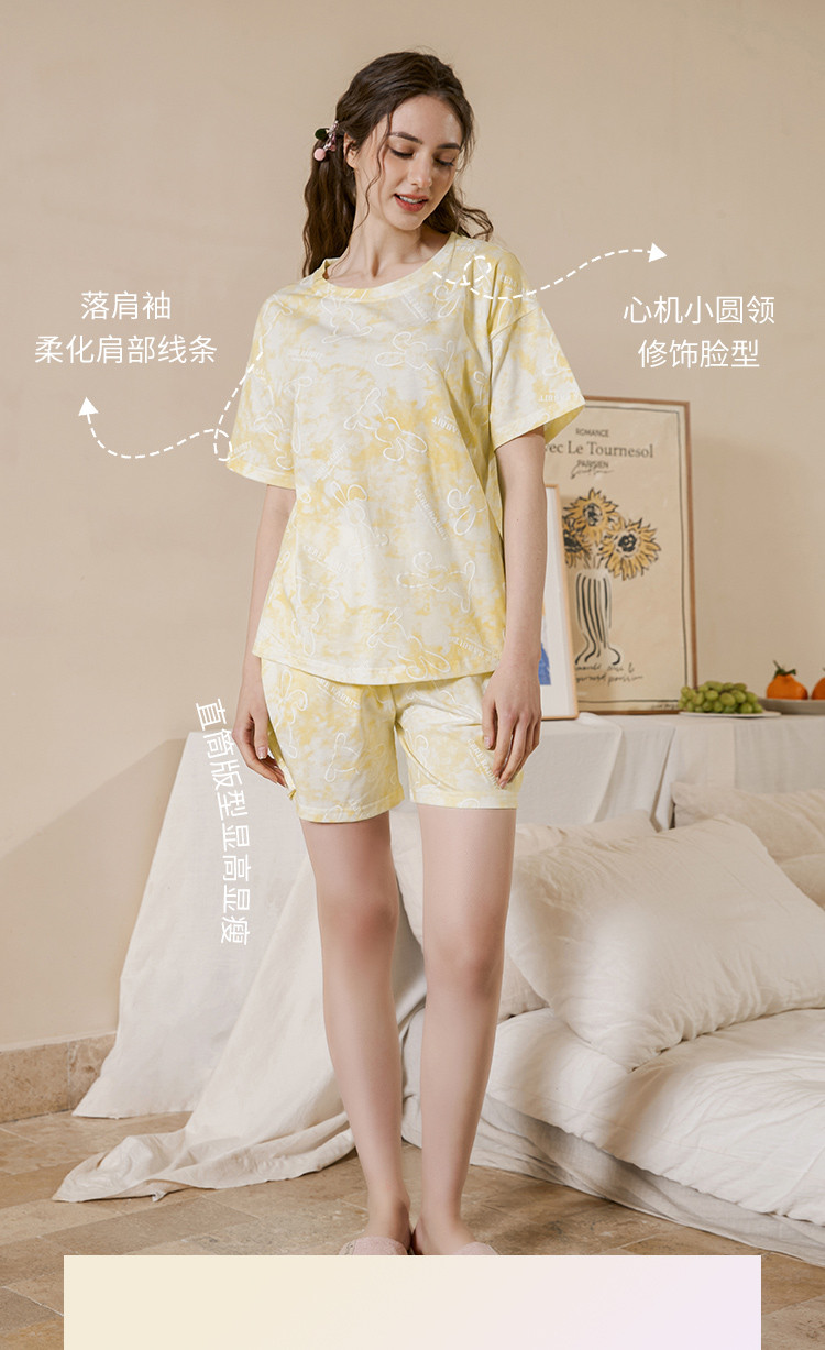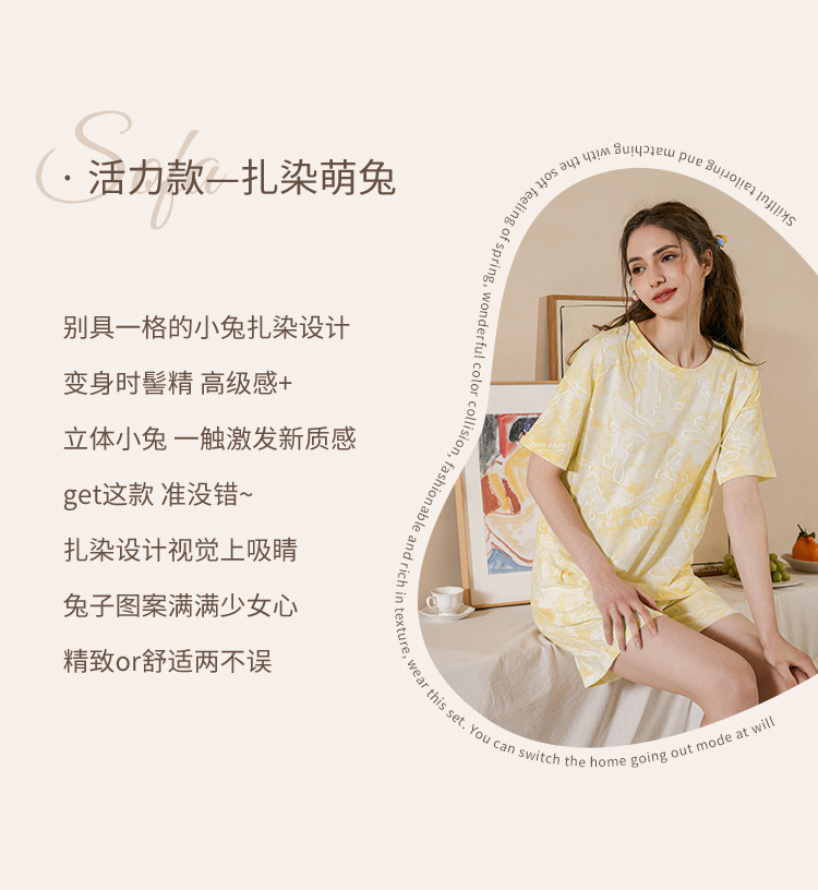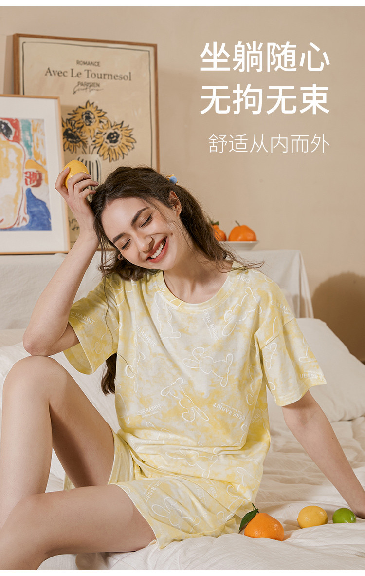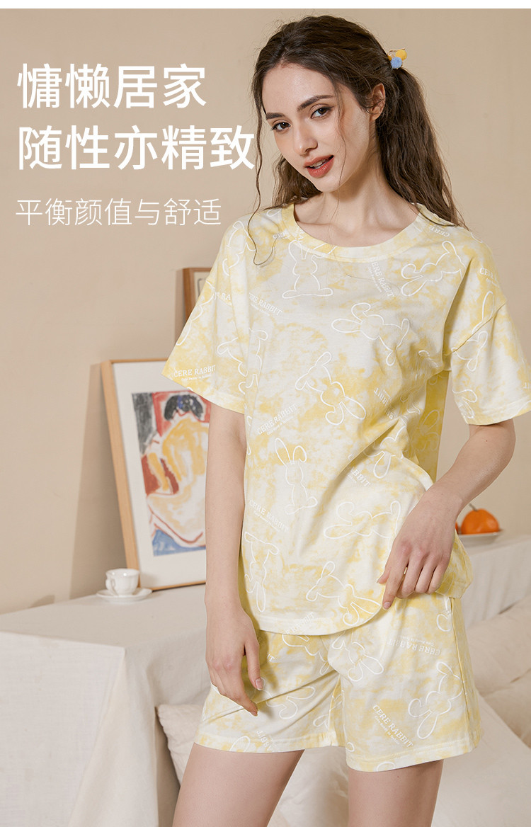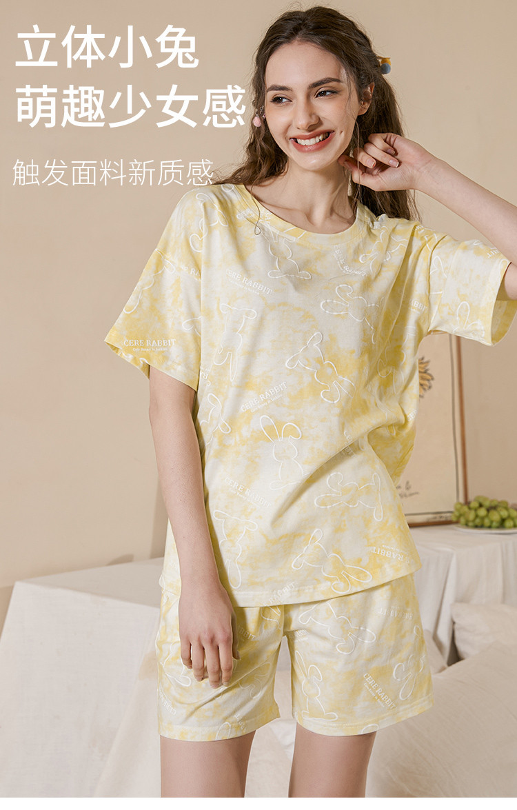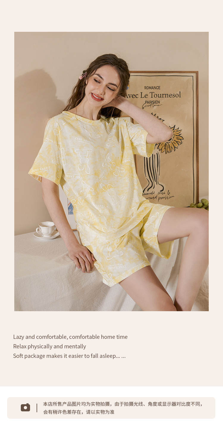 商品名称:甜美卡通扎染睡衣女士短袖短裤家居服夏季薄款舒适爽棉套装可外穿 314827