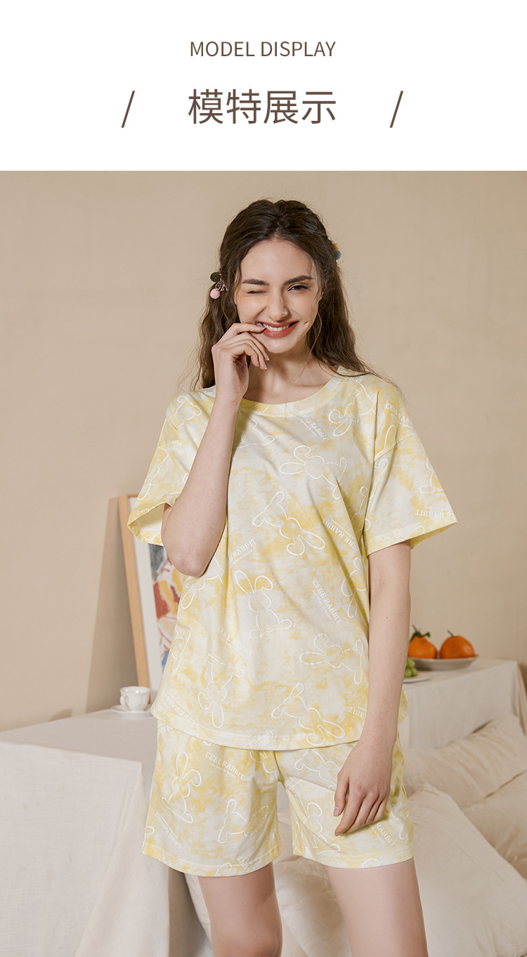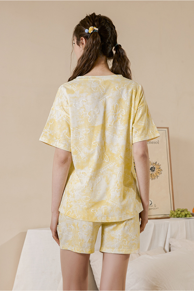 甜美卡通扎染睡衣女士短袖短裤家居服夏季薄款舒适爽棉套装可外穿 314827