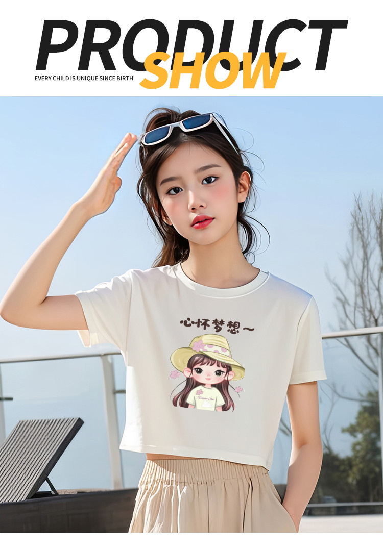 商品名称:童装女童短款短袖T恤24儿童下载中大童洋气韩版女孩上衣潮 075091