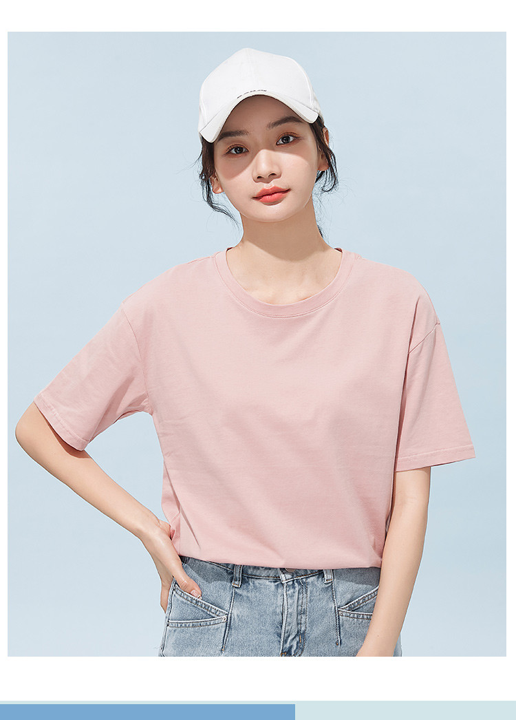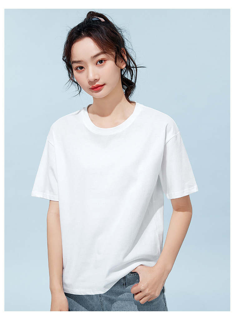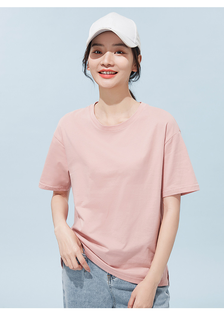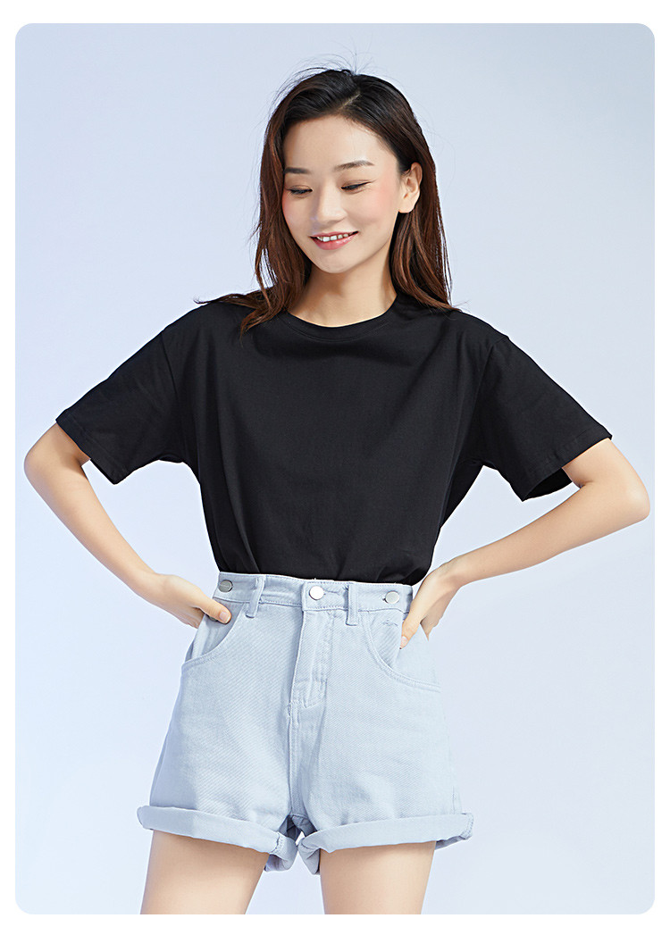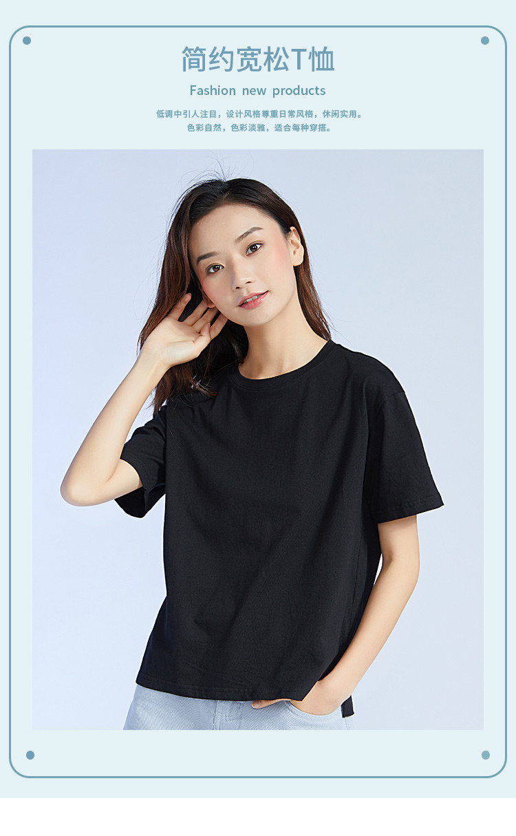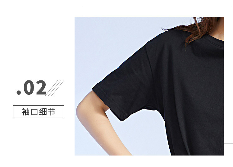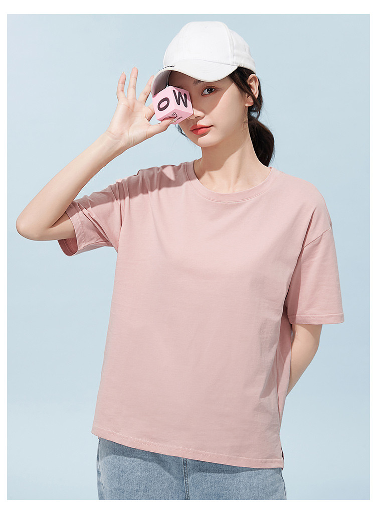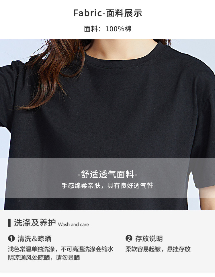 米子旗夏季女圆领纯色简约大码T恤下摆侧边开叉通勤休闲短袖上衣 030490