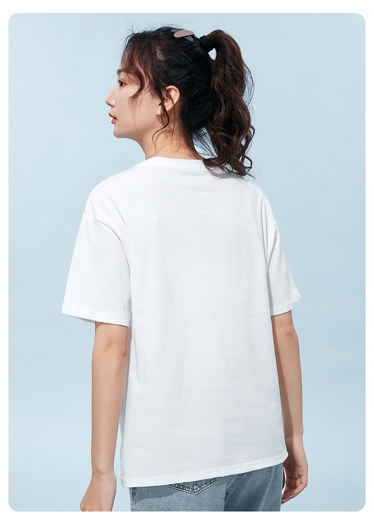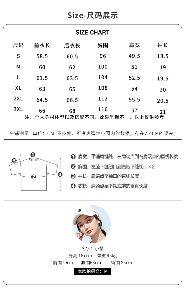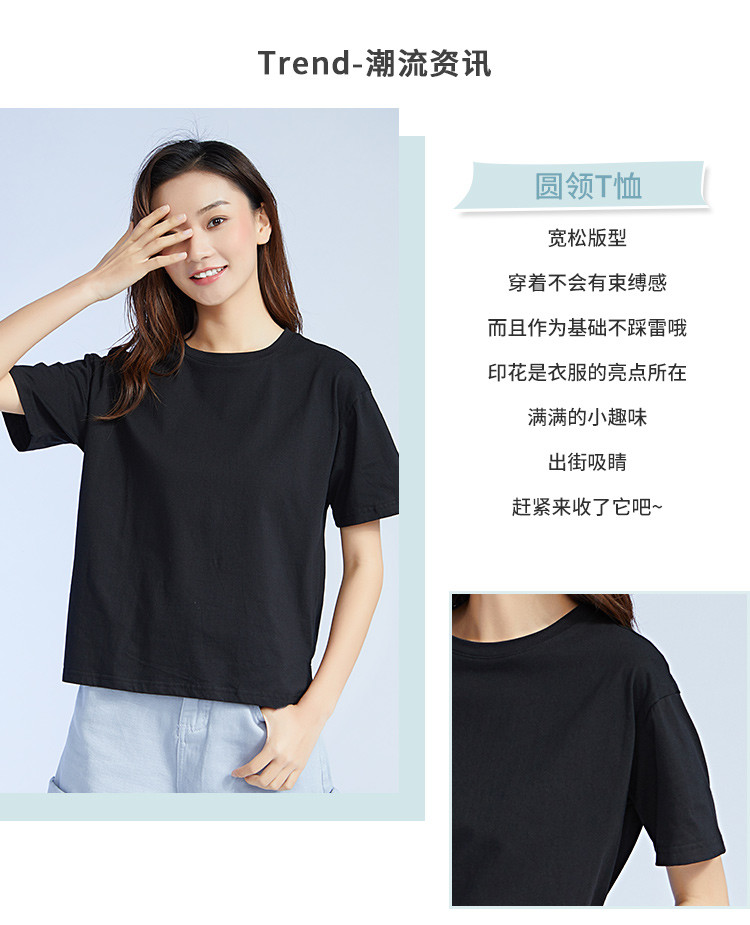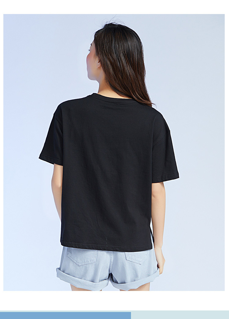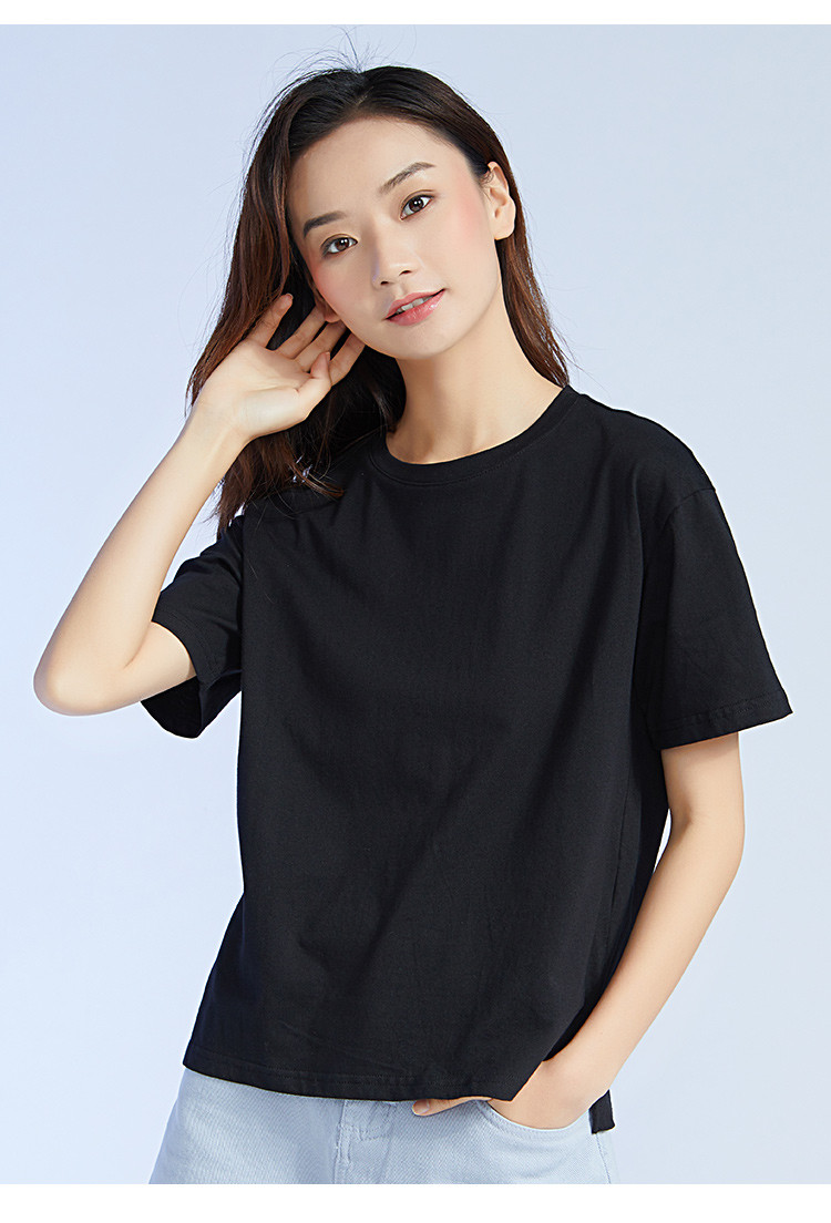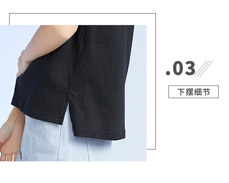 商品名称:米子旗夏季女圆领纯色简约大码T恤下摆侧边开叉通勤休闲短袖上衣 030490