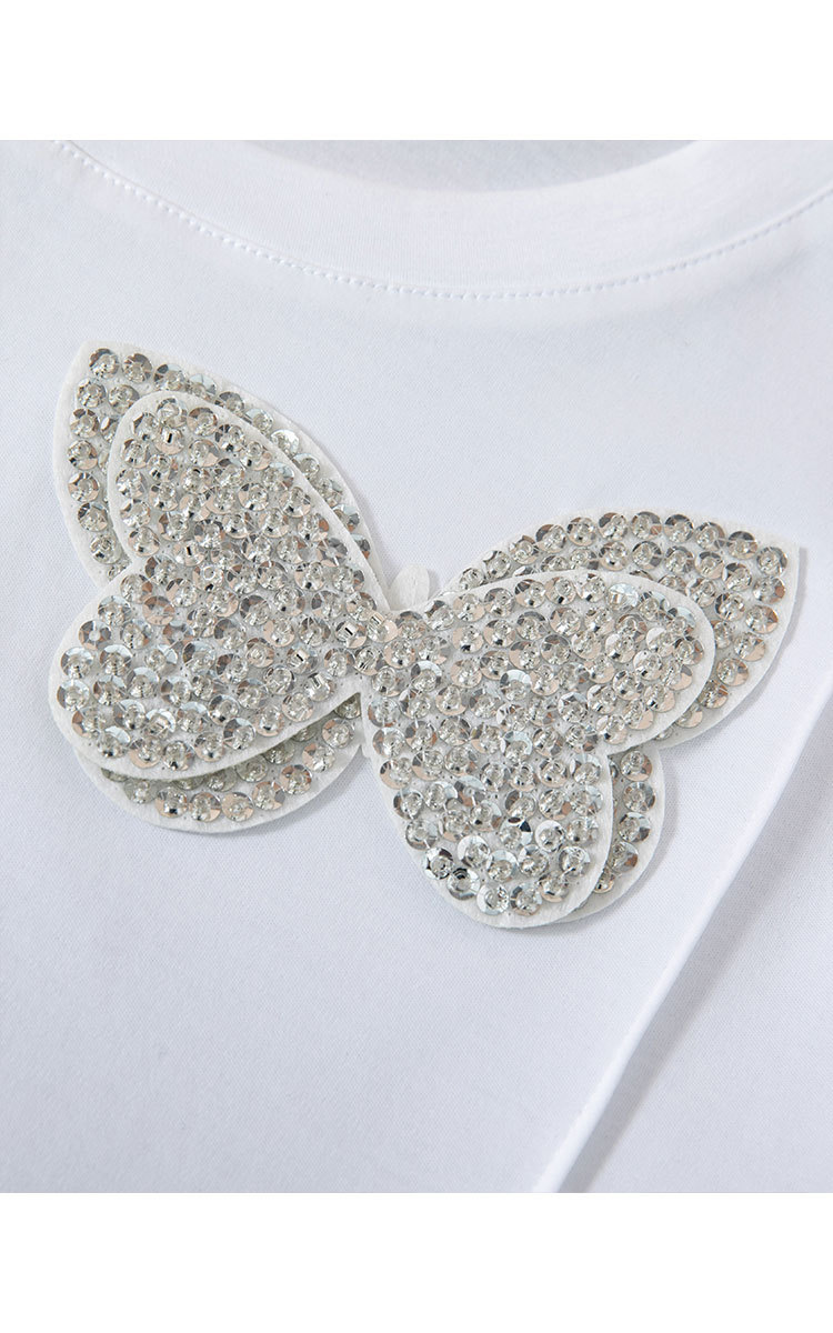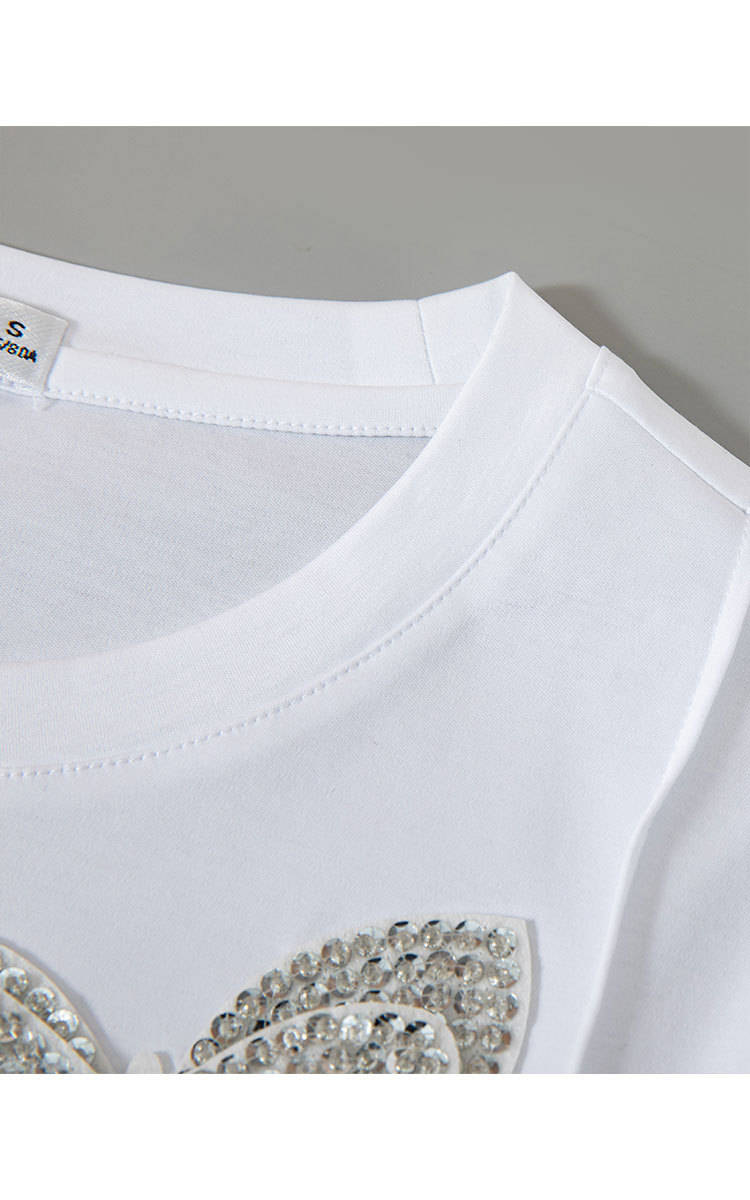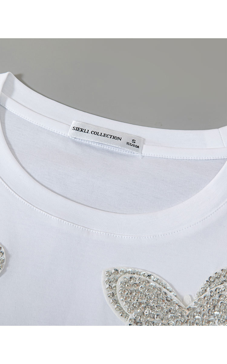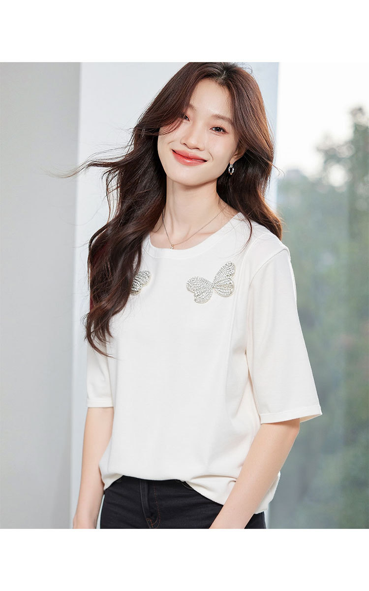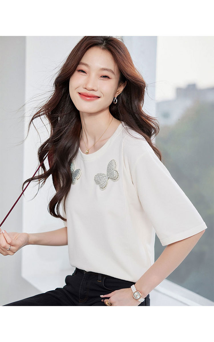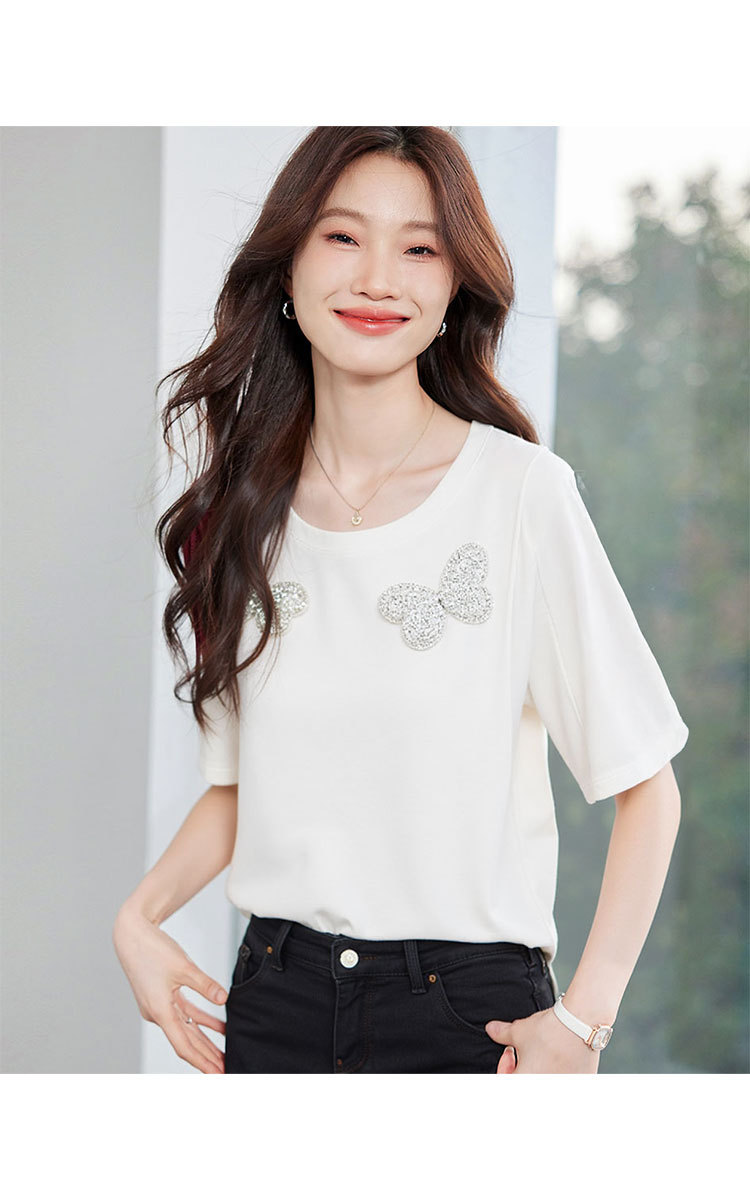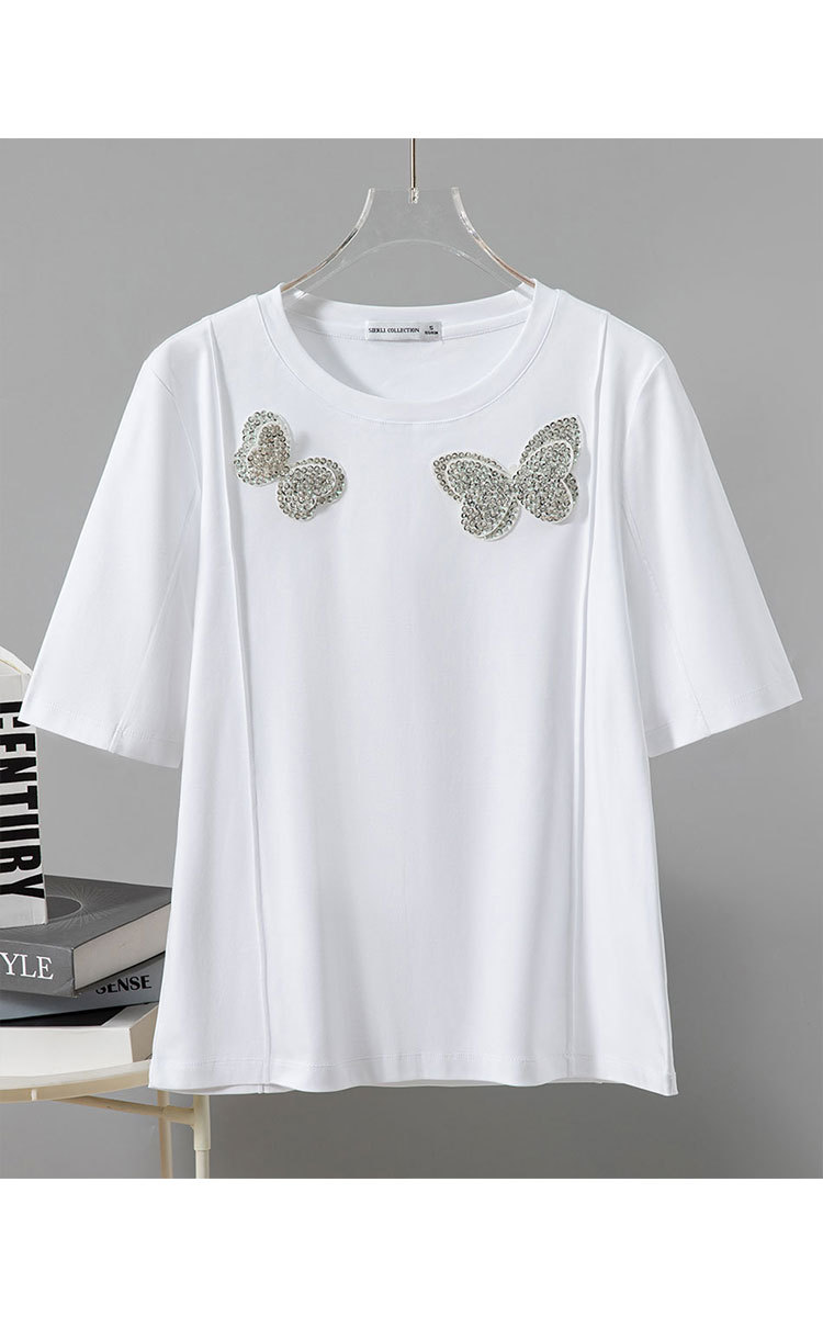 商品名称:【丝光棉简约纯色女式t恤】夏季百搭宽松圆领蝴蝶镶钻短袖t恤女 817631