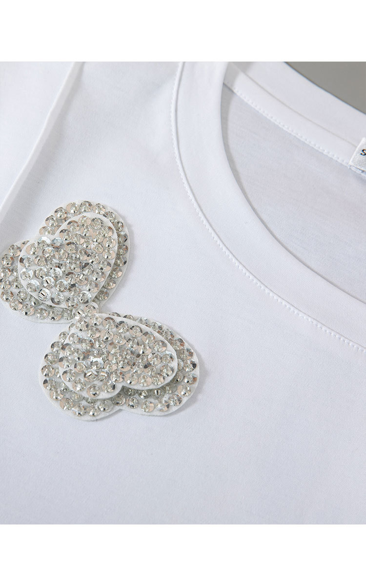 【丝光棉简约纯色女式t恤】夏季百搭宽松圆领蝴蝶镶钻短袖t恤女 817631