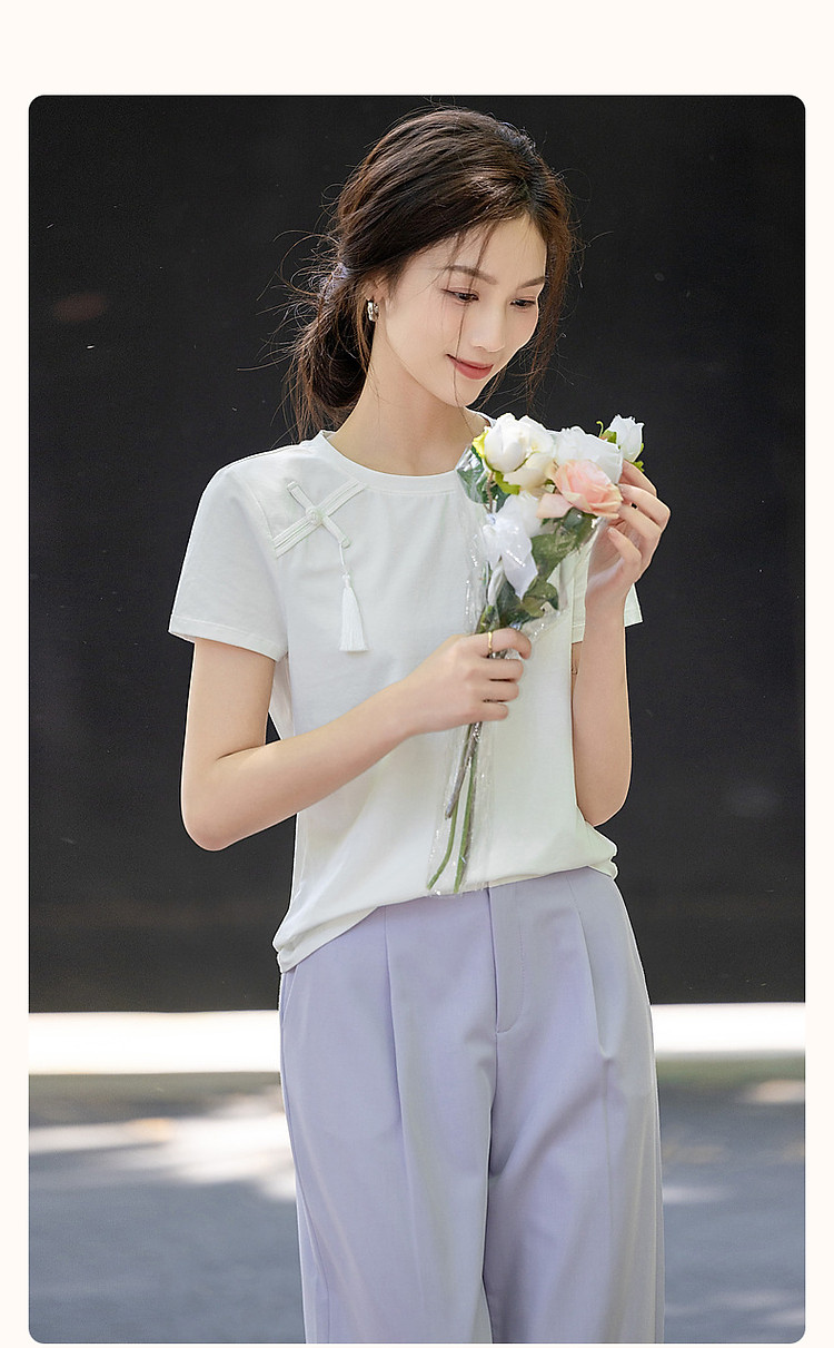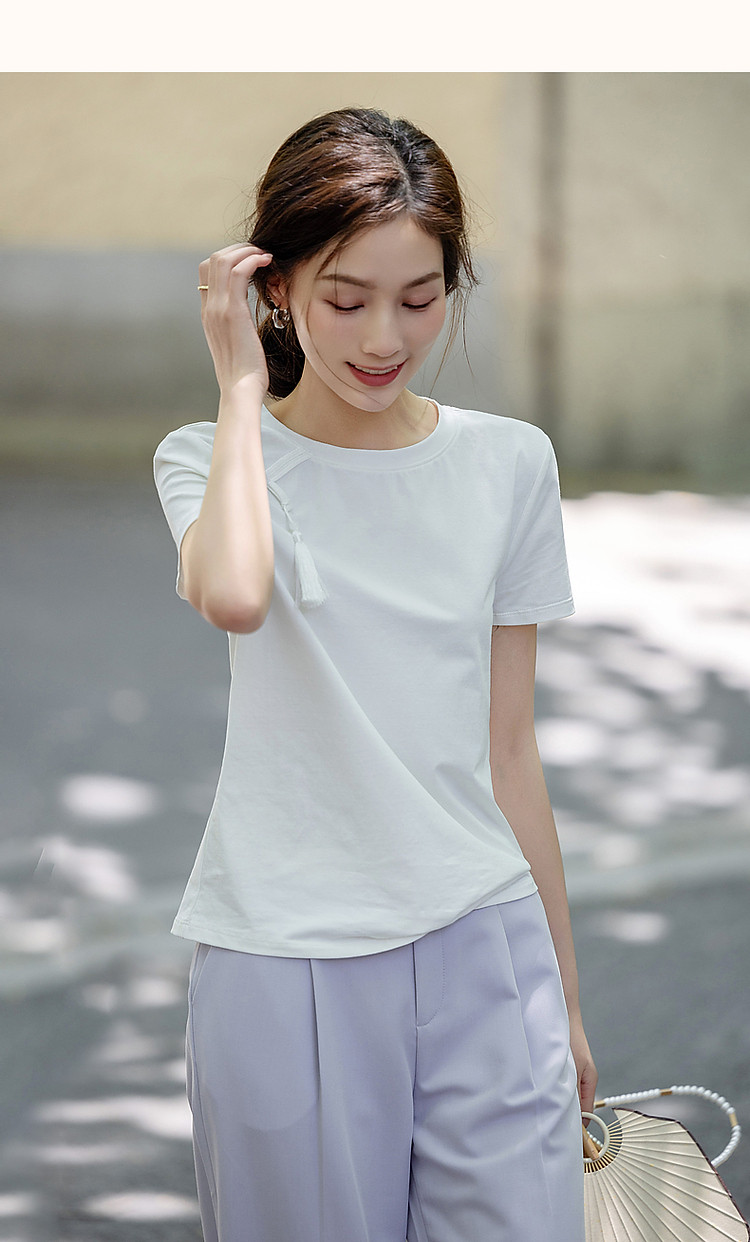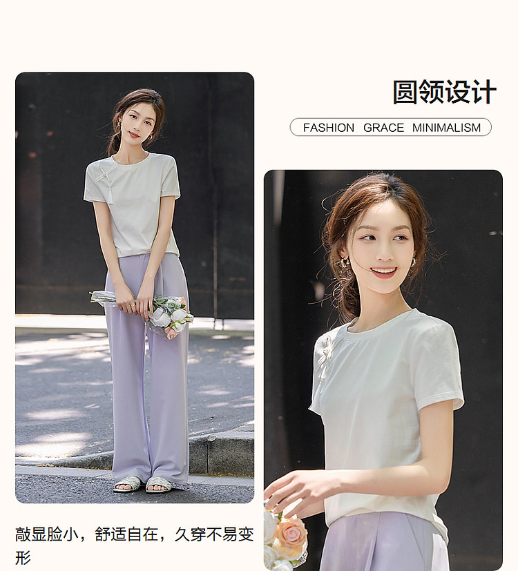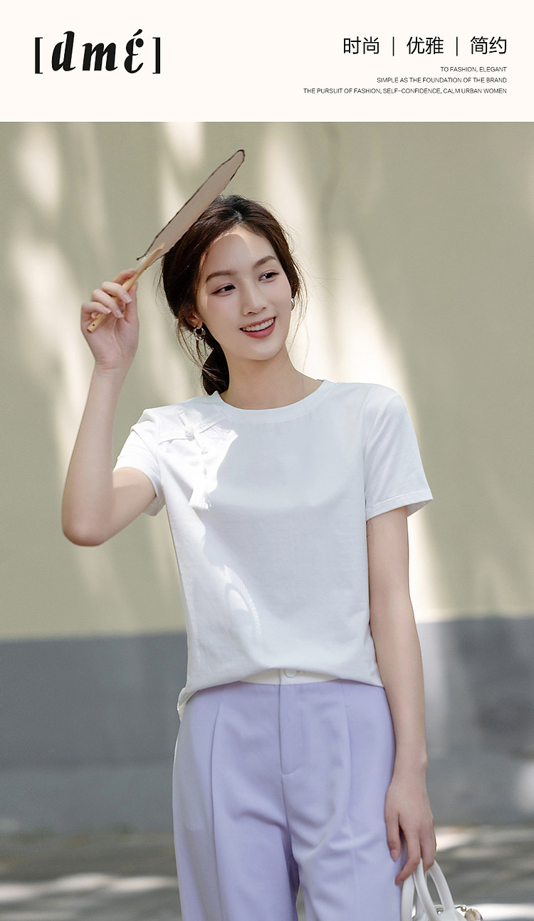 商品名称:【新中式棉氨t恤】夏国风圆领盘扣弹力藏肉短袖气质女式t恤 555521