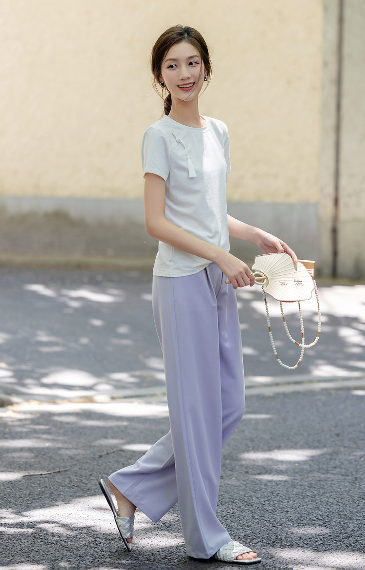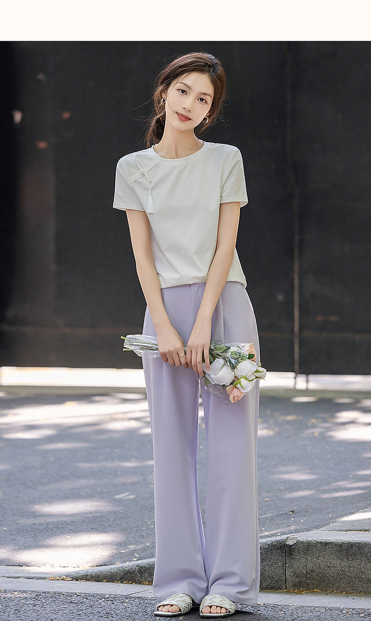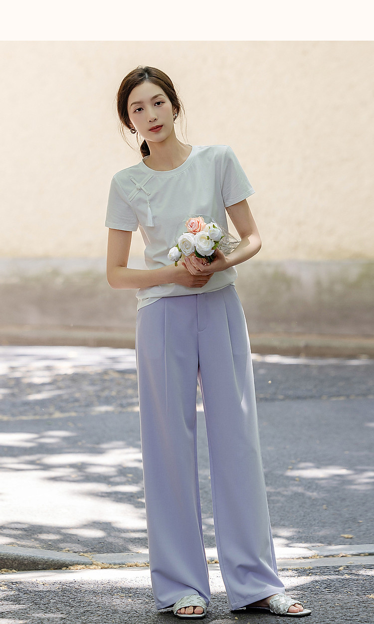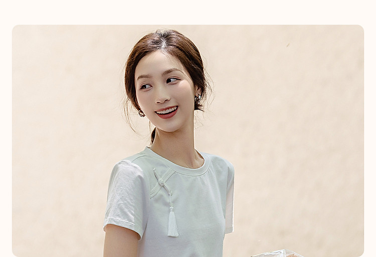 商品名称:【新中式棉氨t恤】夏国风圆领盘扣弹力藏肉短袖气质女式t恤 555521