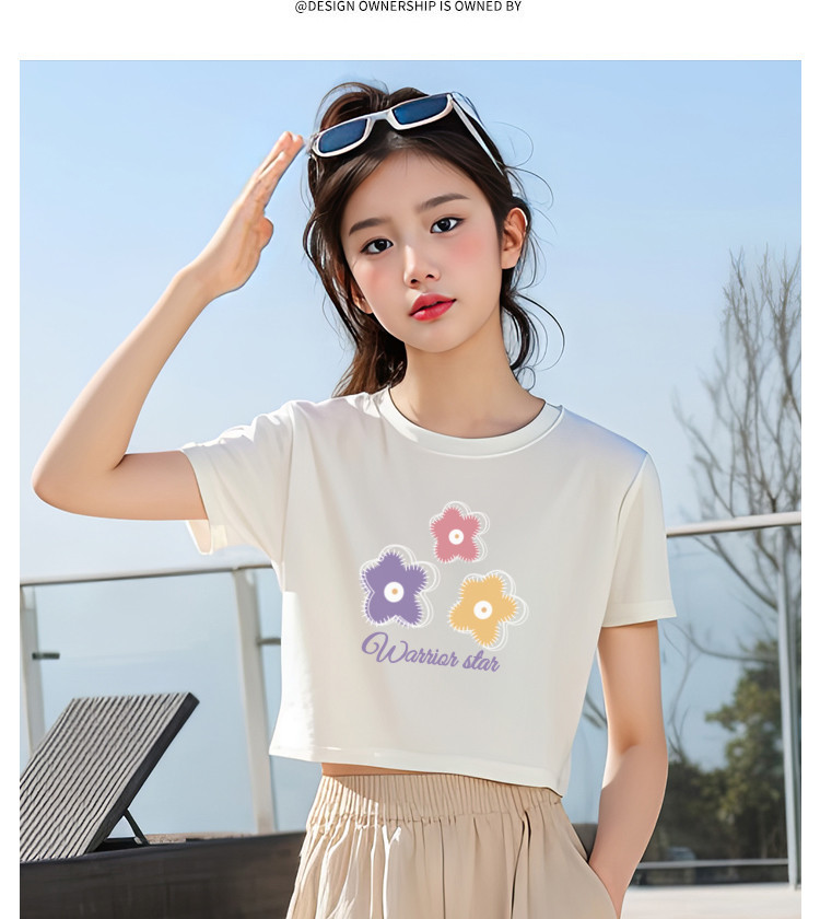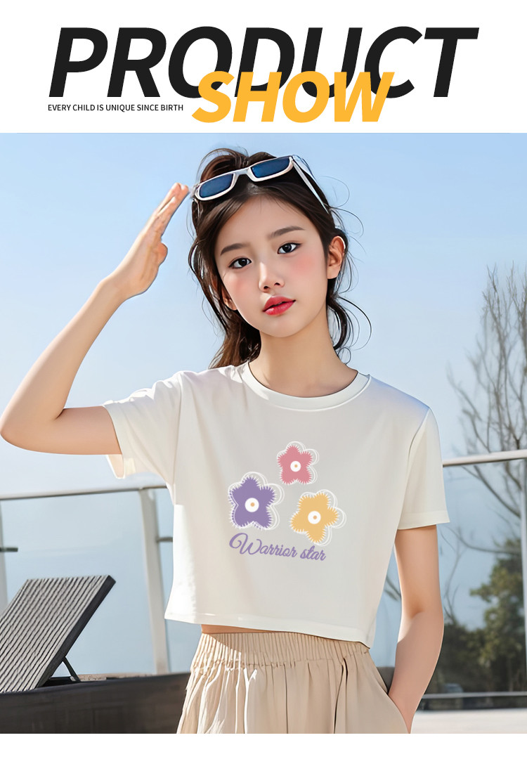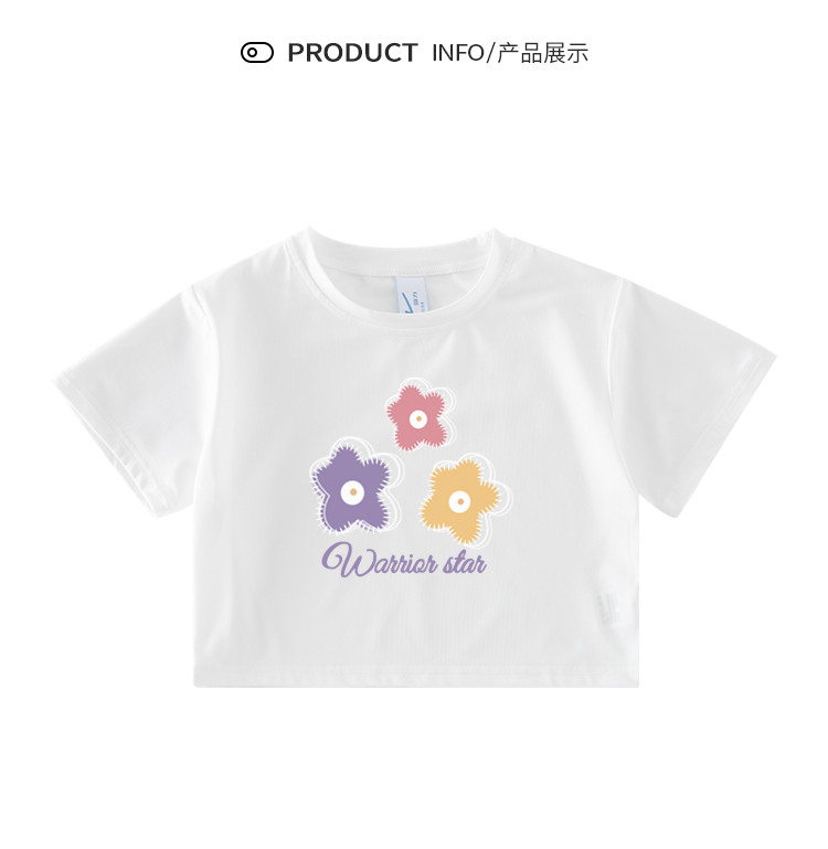 商品名称:童装女童短袖T恤轻薄透气夏季女孩中大童短款上衣休闲百搭 095571