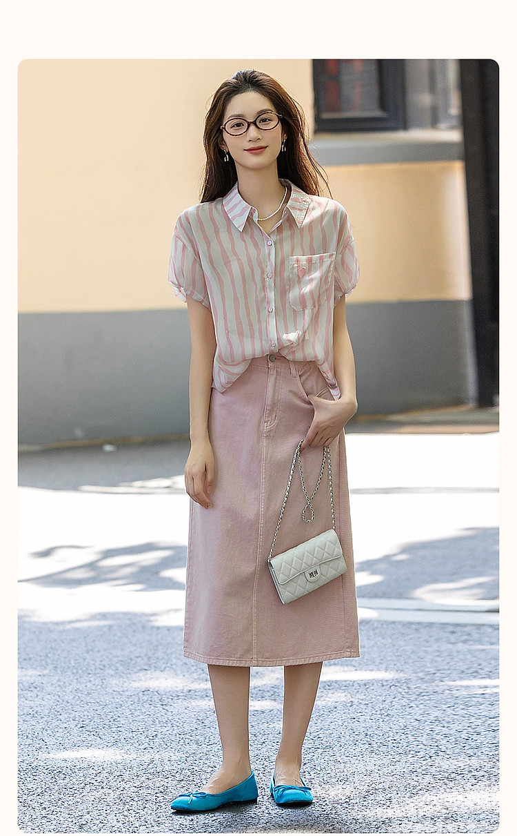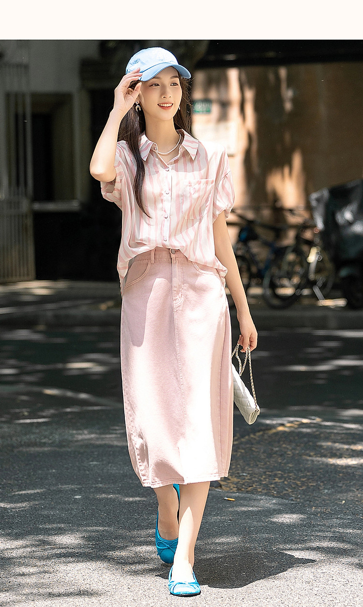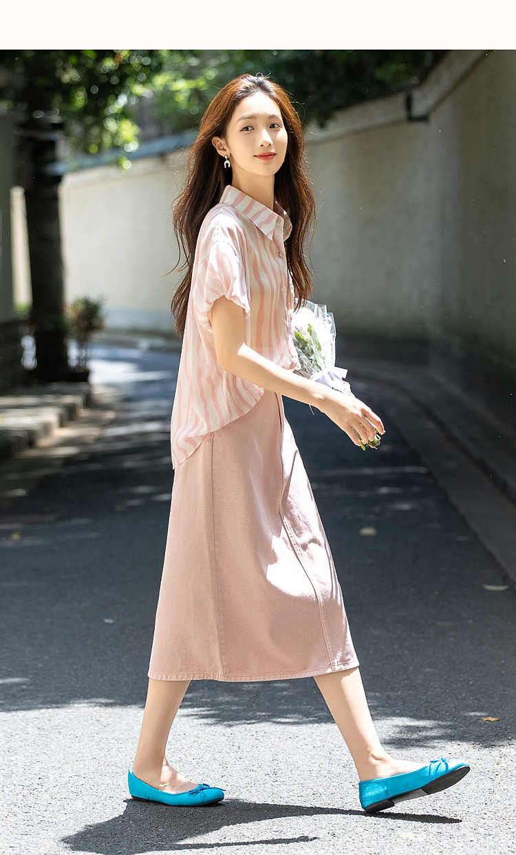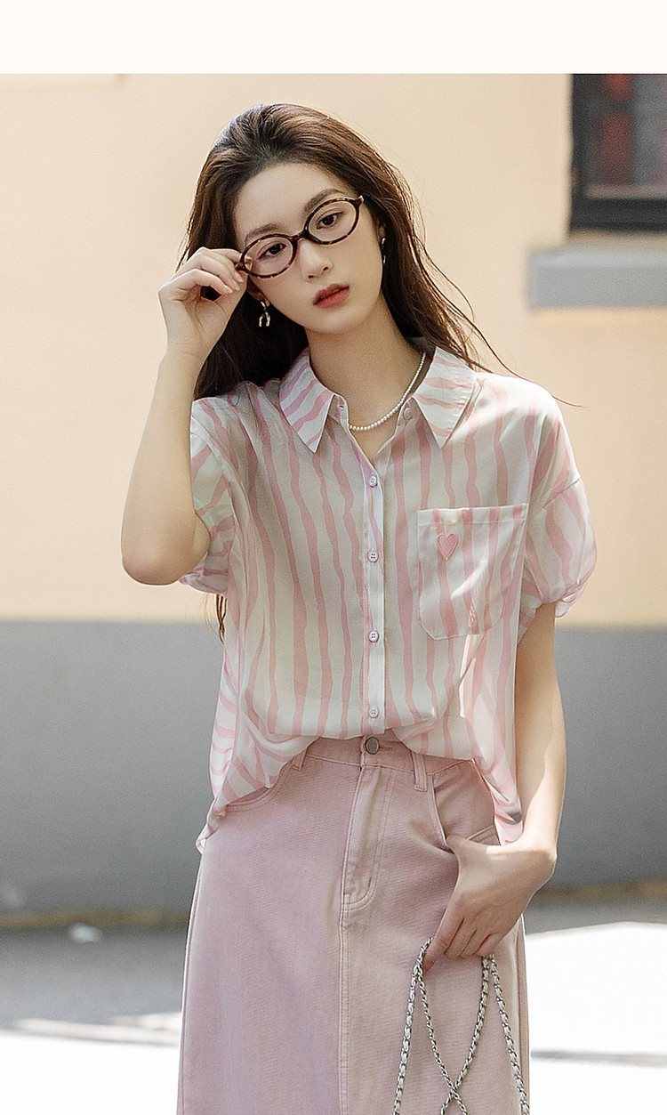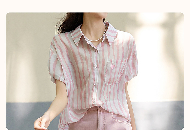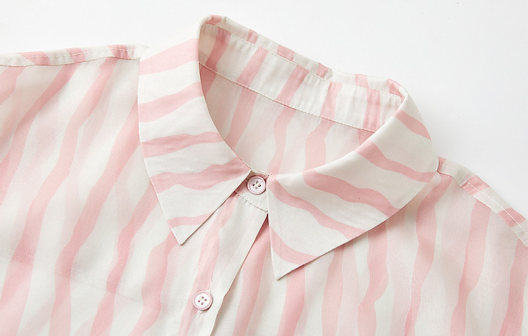 商品名称:【夏日轻氧吧】轻龄感条纹衬衫甜美花苞袖爽滑雪纺舒适衬衣女上衣 600321