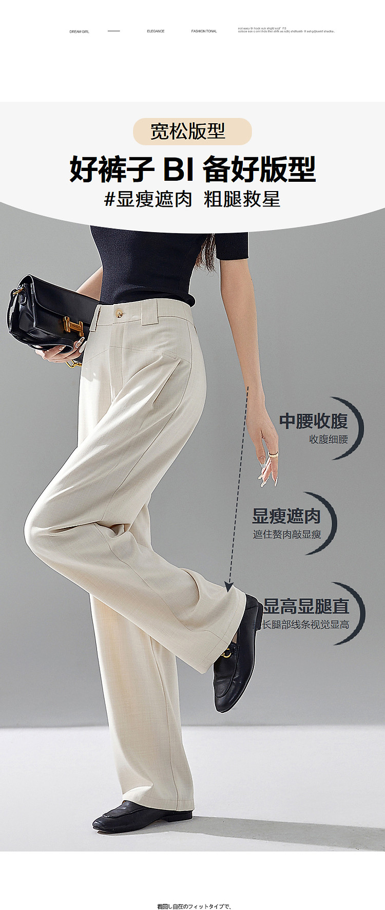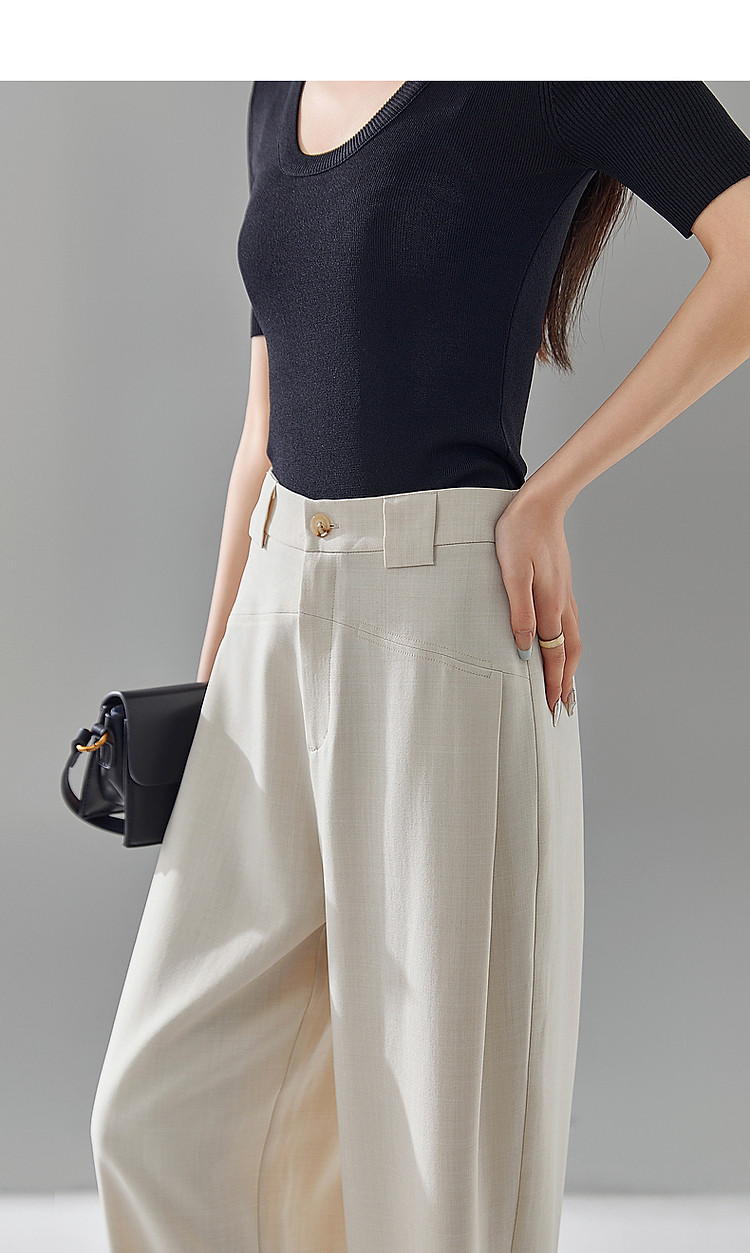 商品名称:【韩式通勤西装裤】夏“知识分子”简约镰刀裤直筒拼接休闲裤 743681