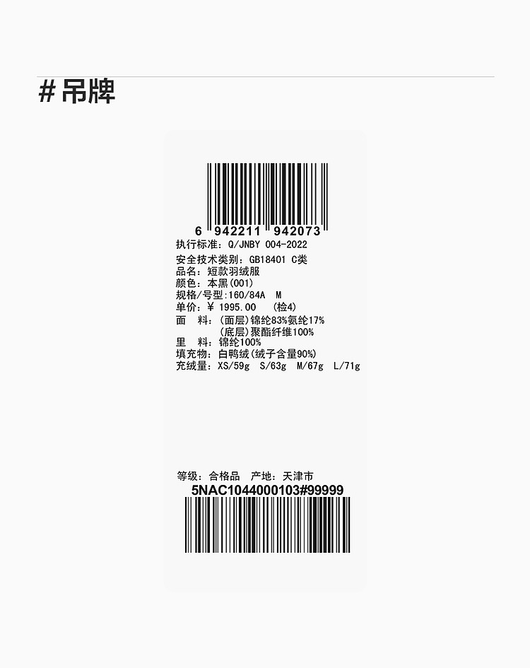 商品名称:冬羽绒服工装宽松立领外套女 925323