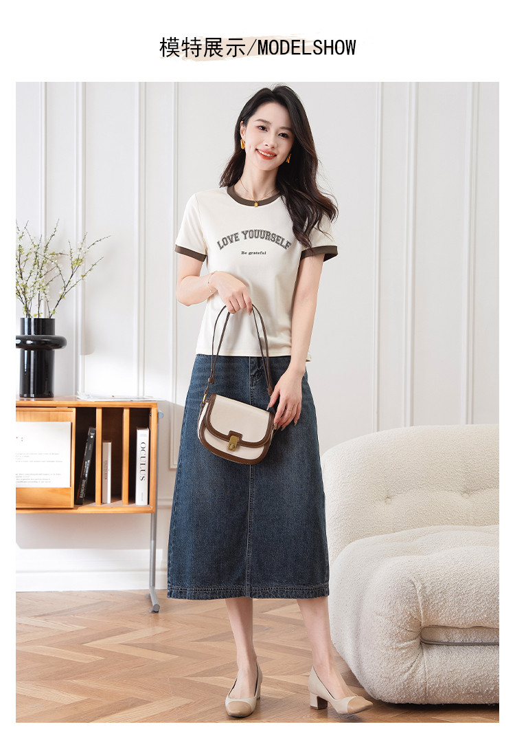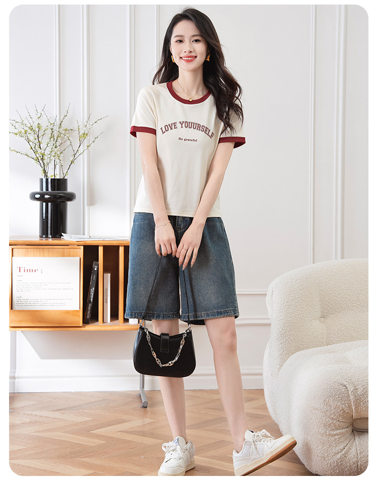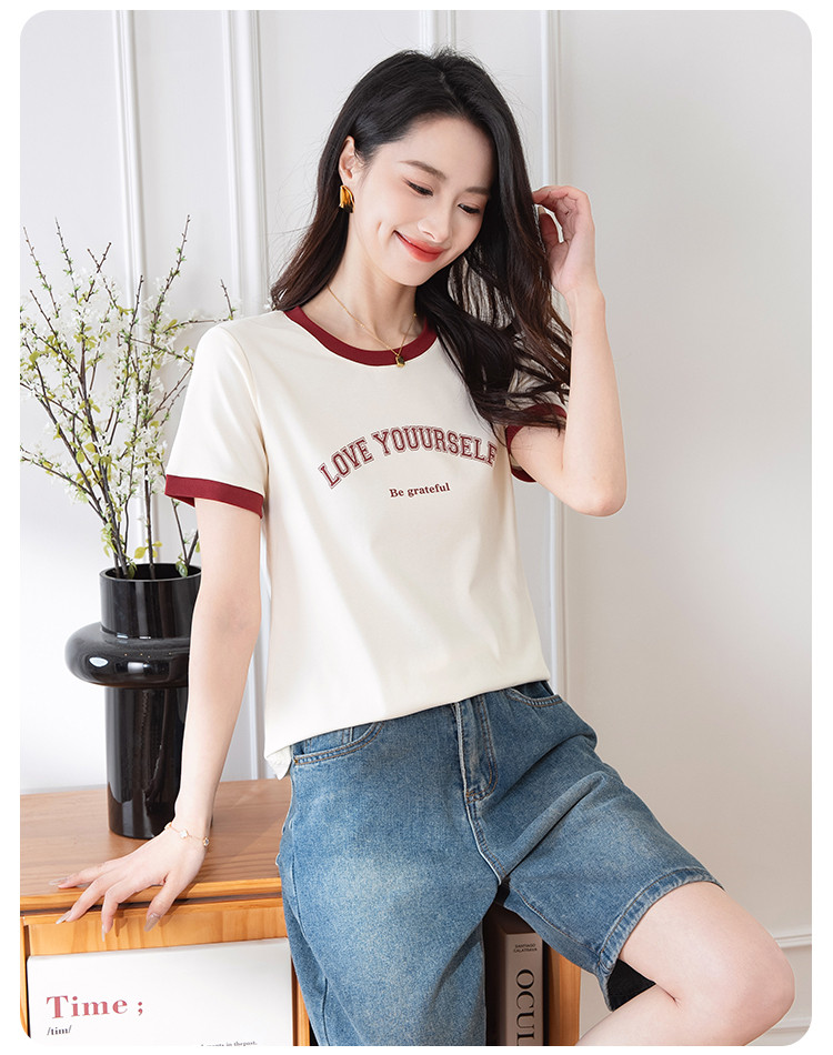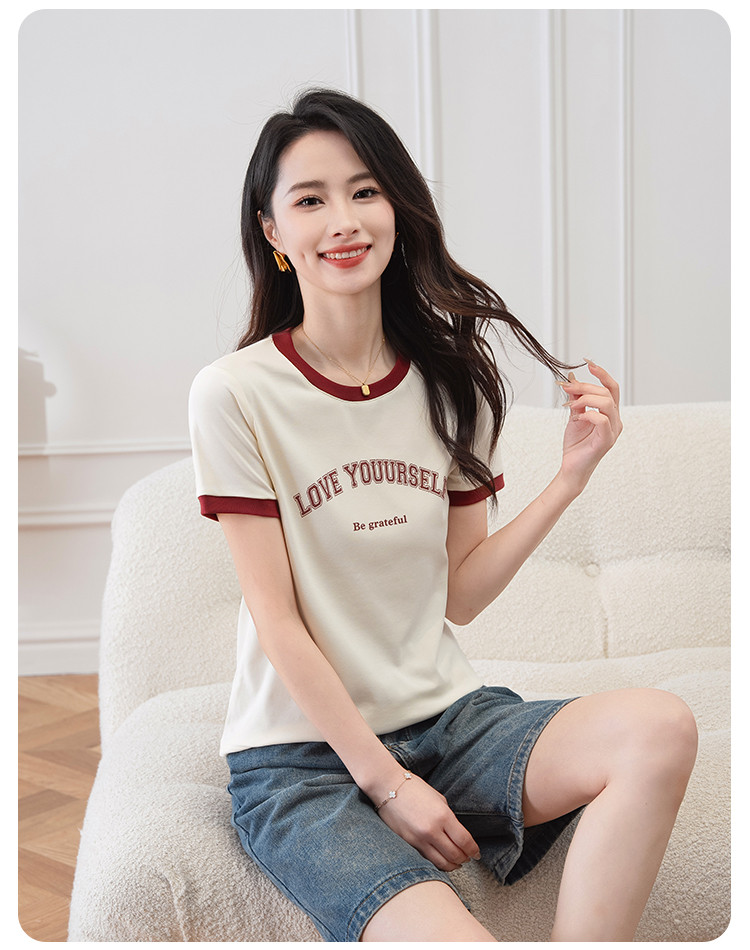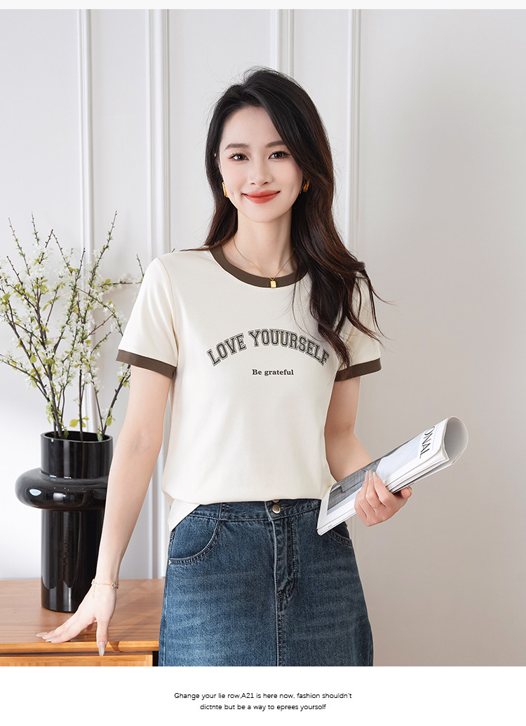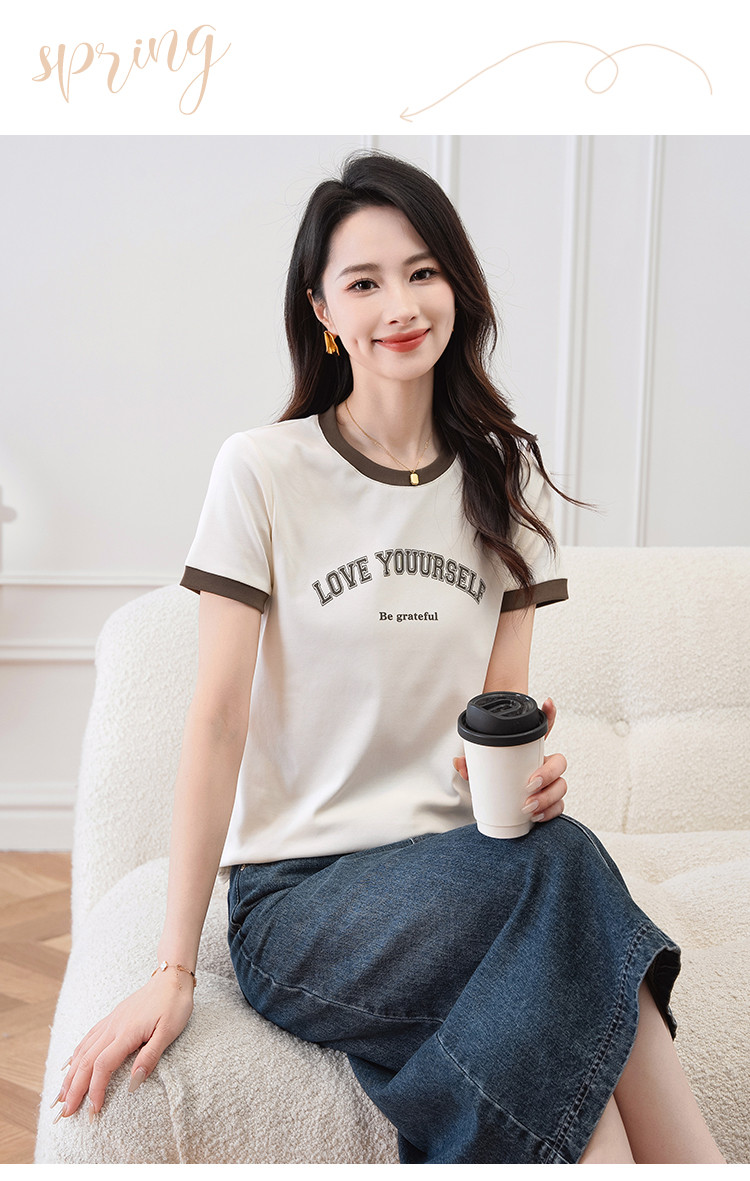 商品名称:【显瘦修身】夏季圆领短袖T恤女印花时尚百搭减龄休闲舒适上衣女 784001