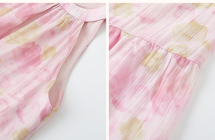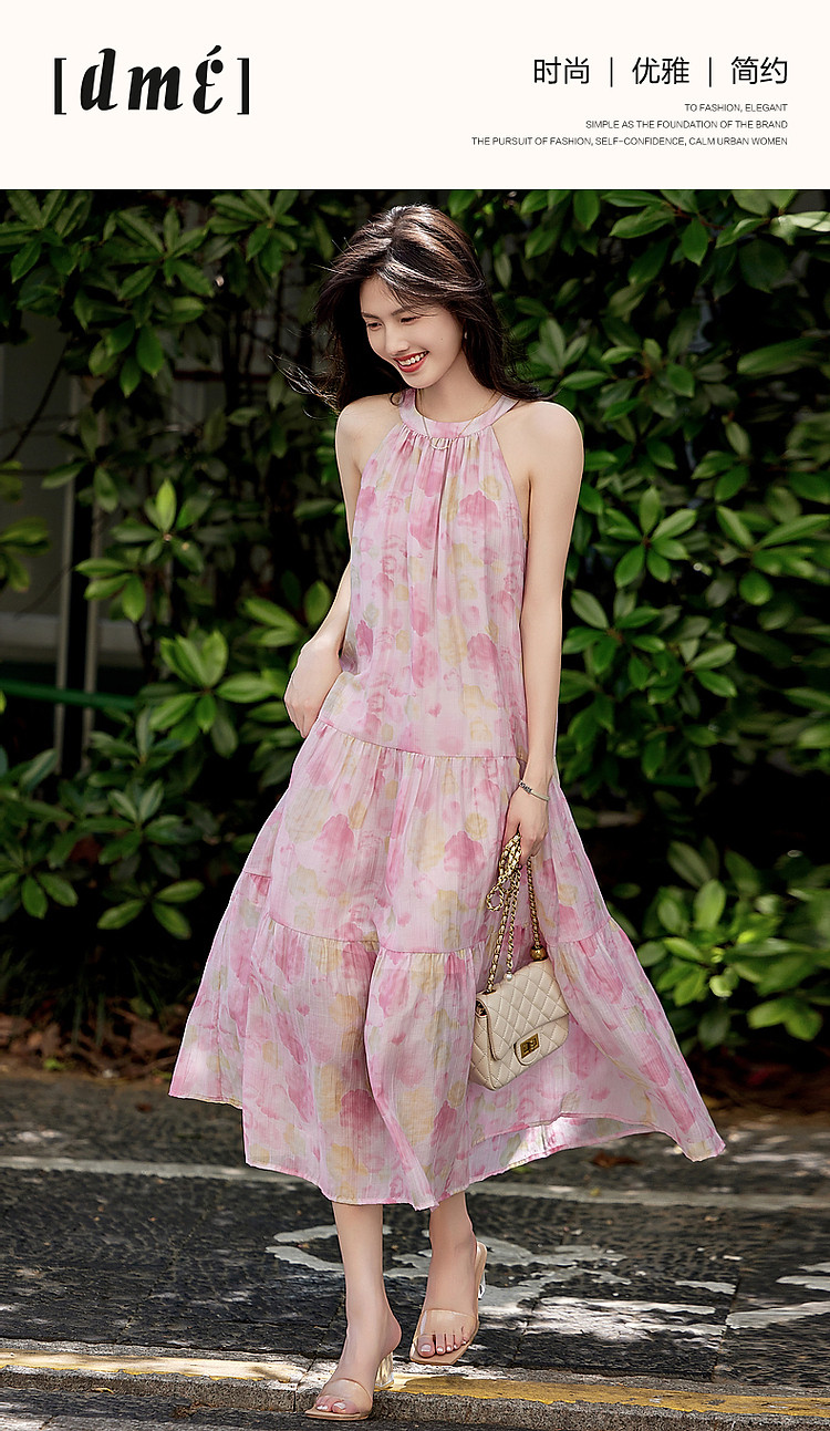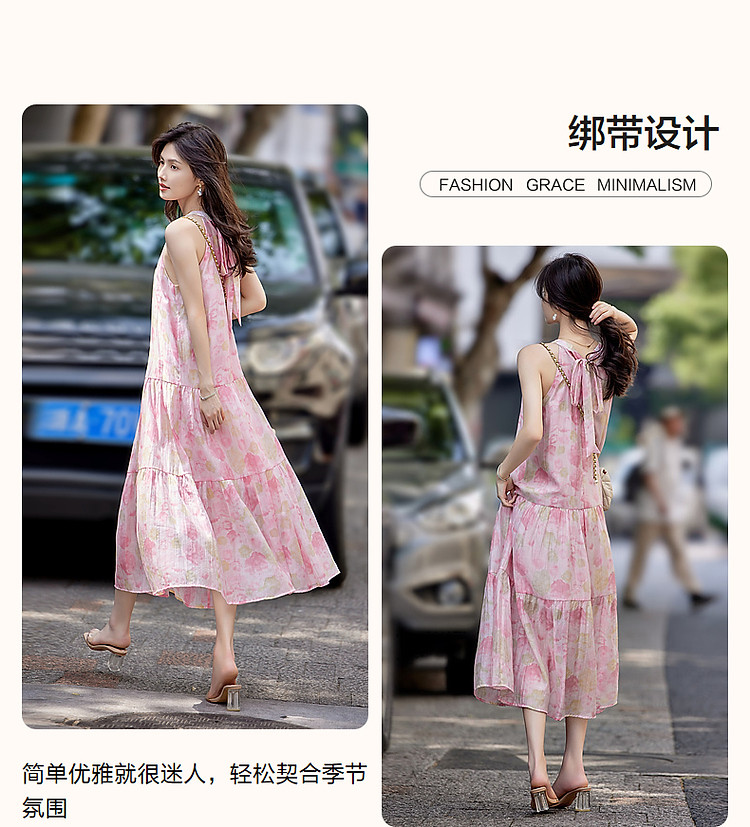商品名称:【后背绑带蝴蝶结设计】夏淑女微皱肌理感印花无袖绑带a字连衣裙 149185