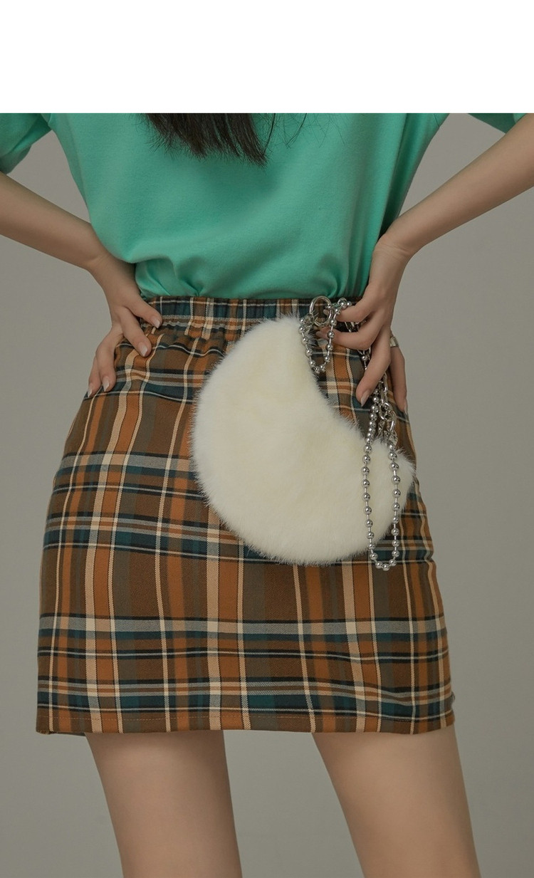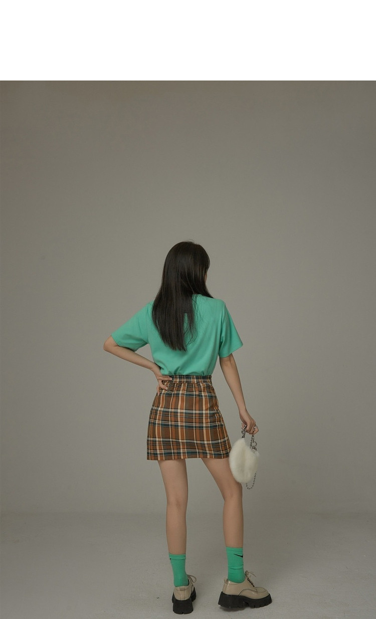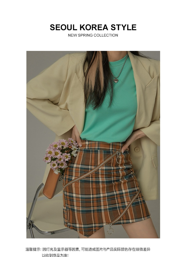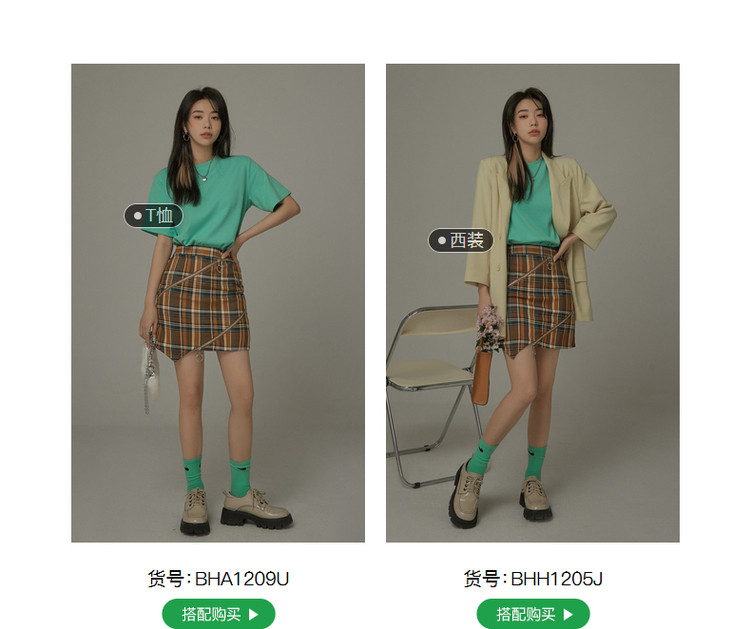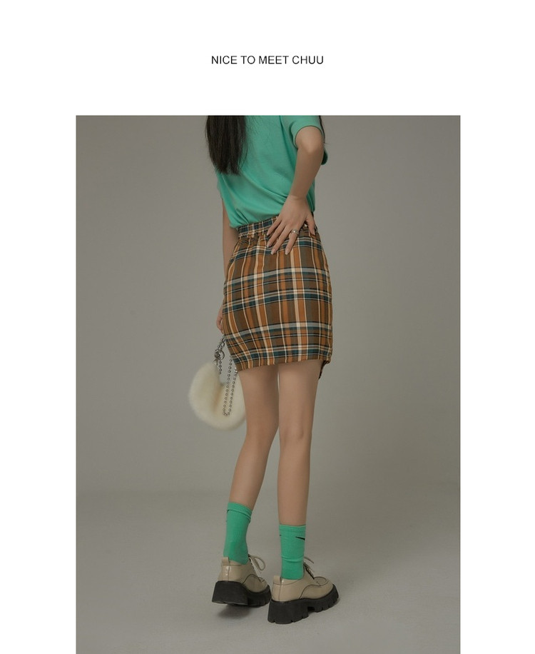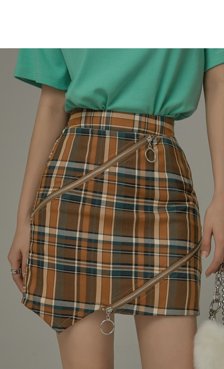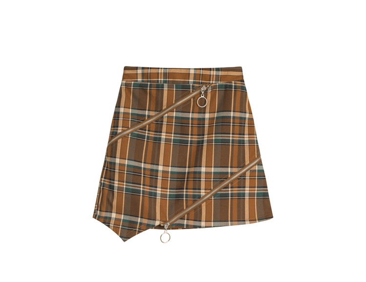 商品名称:格子半身裙a字裙女时尚休闲高腰不对称咖啡格裙子春夏秋 214547