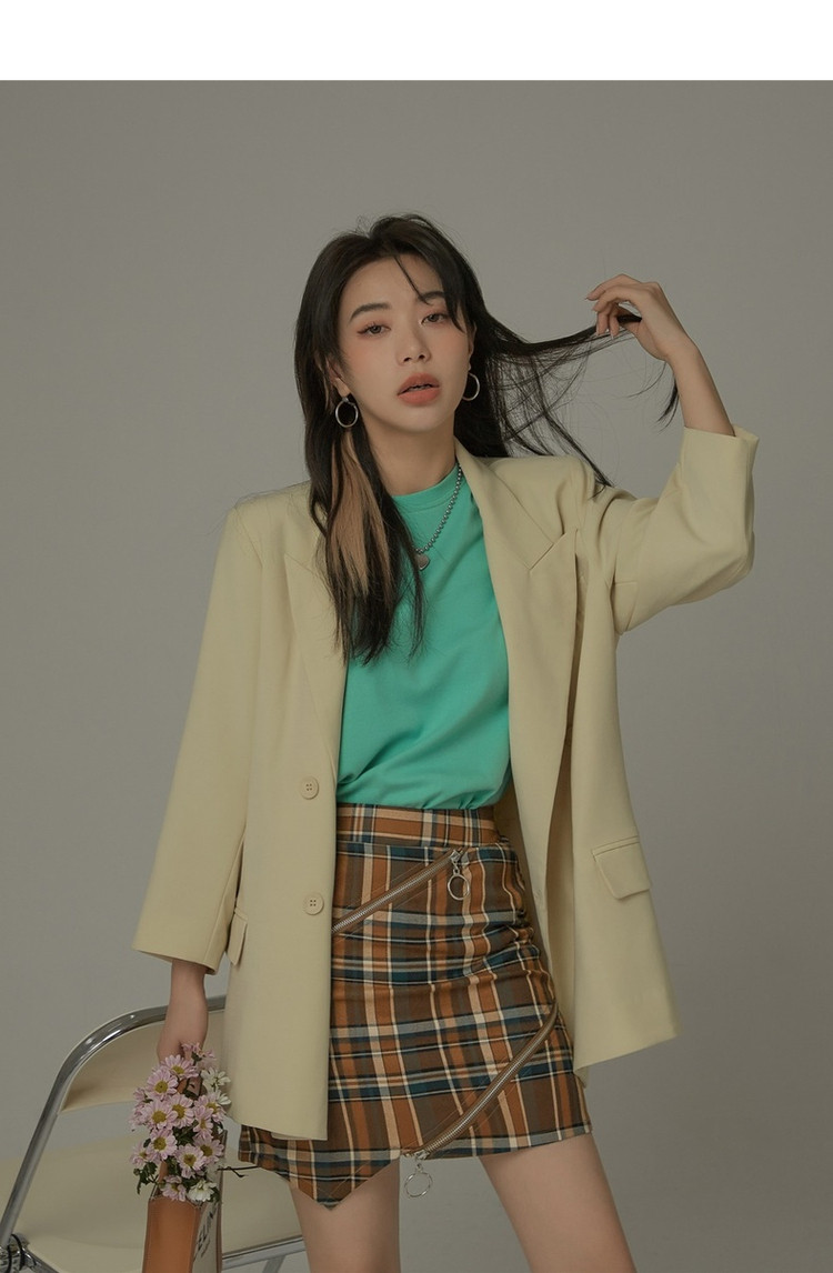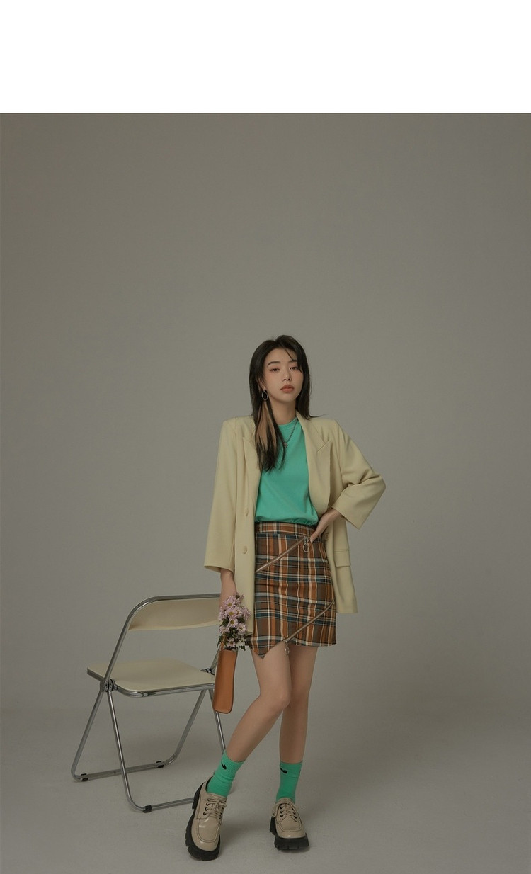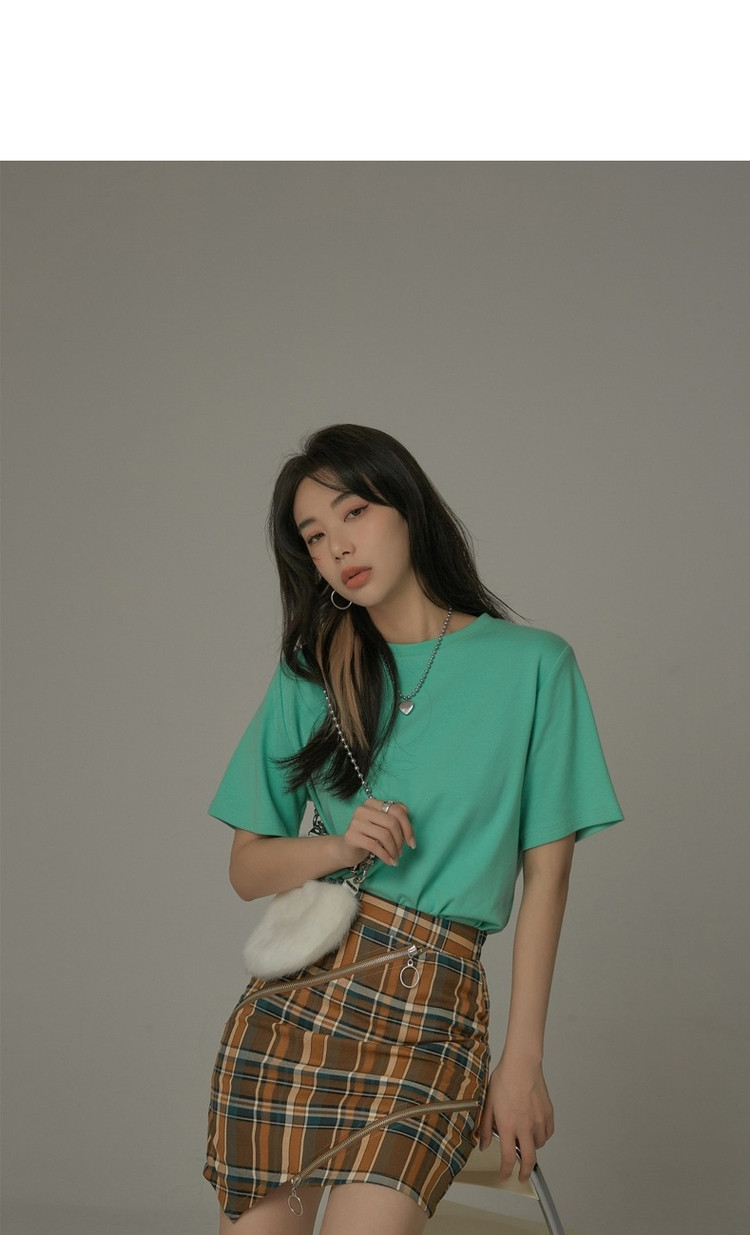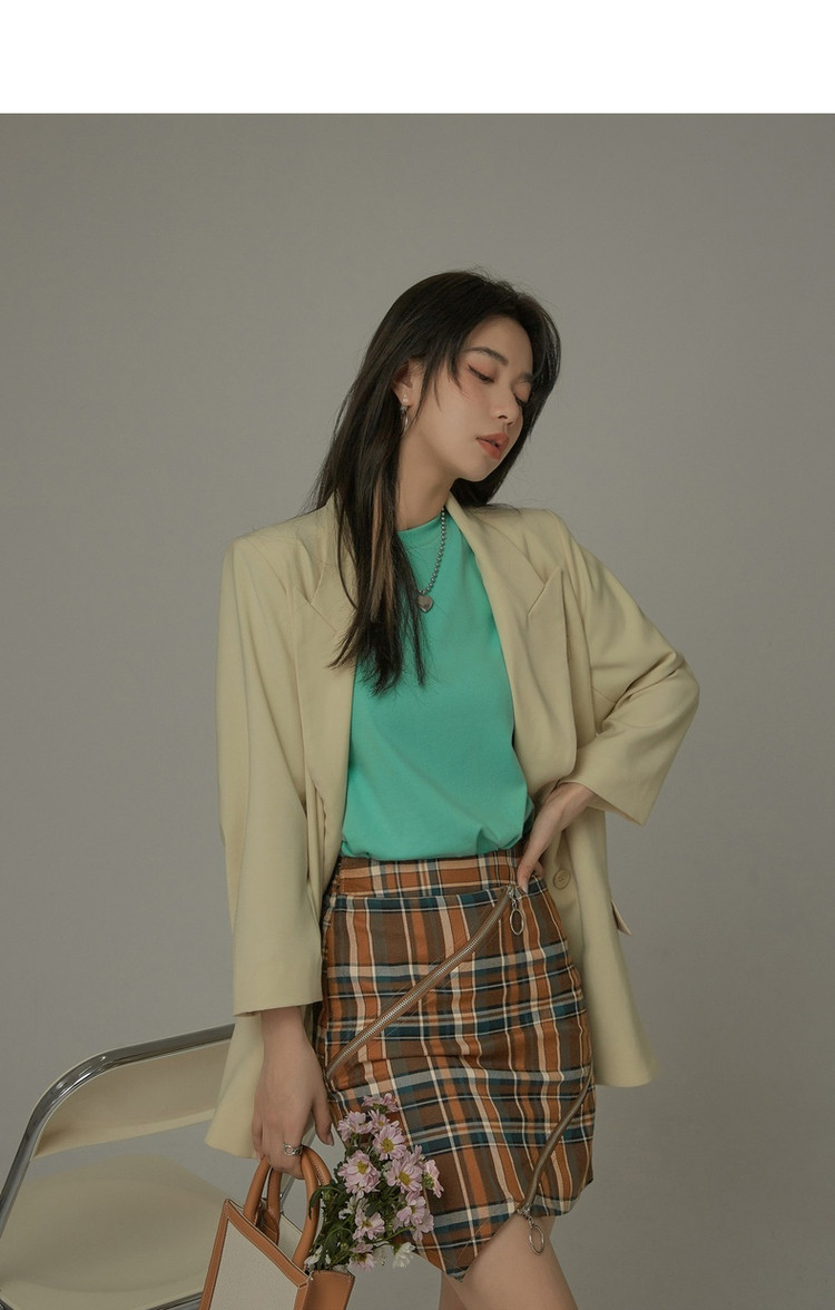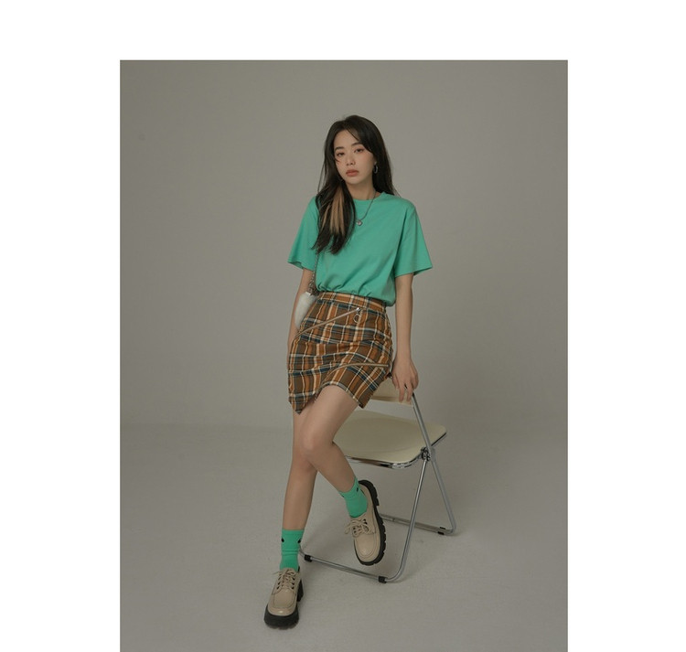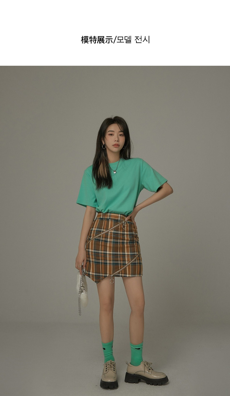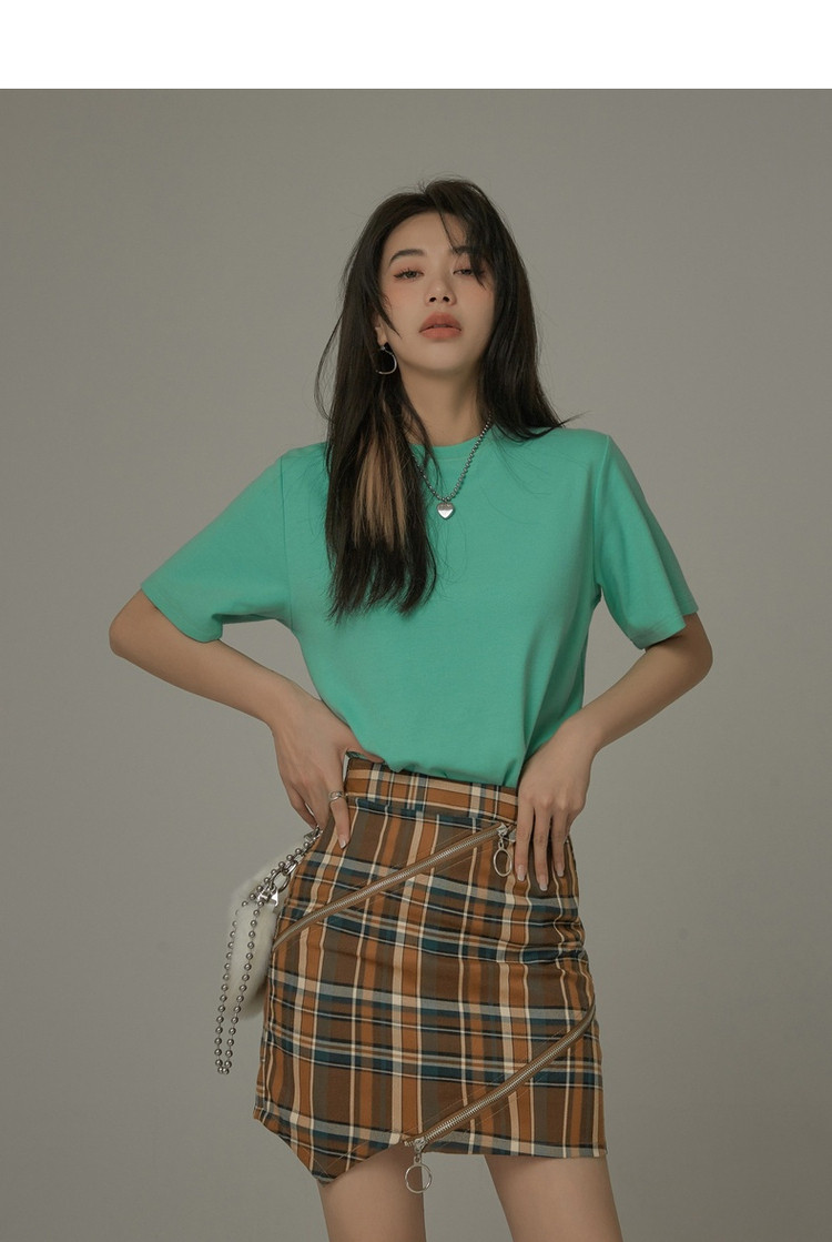 商品名称:格子半身裙a字裙女时尚休闲高腰不对称咖啡格裙子春夏秋 214547