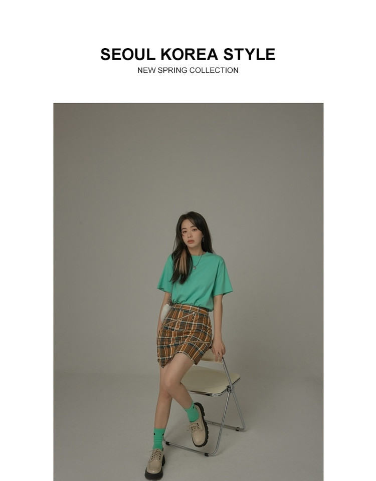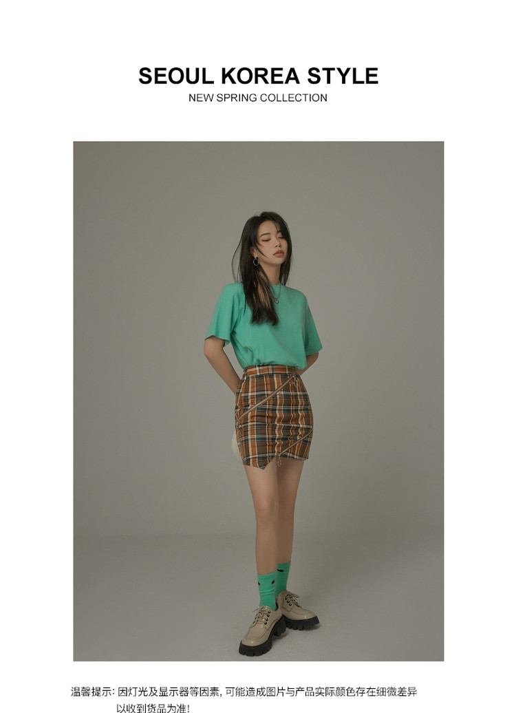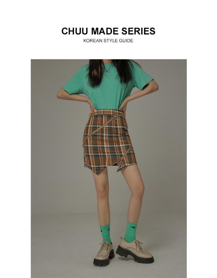 格子半身裙a字裙女时尚休闲高腰不对称咖啡格裙子春夏秋 214547