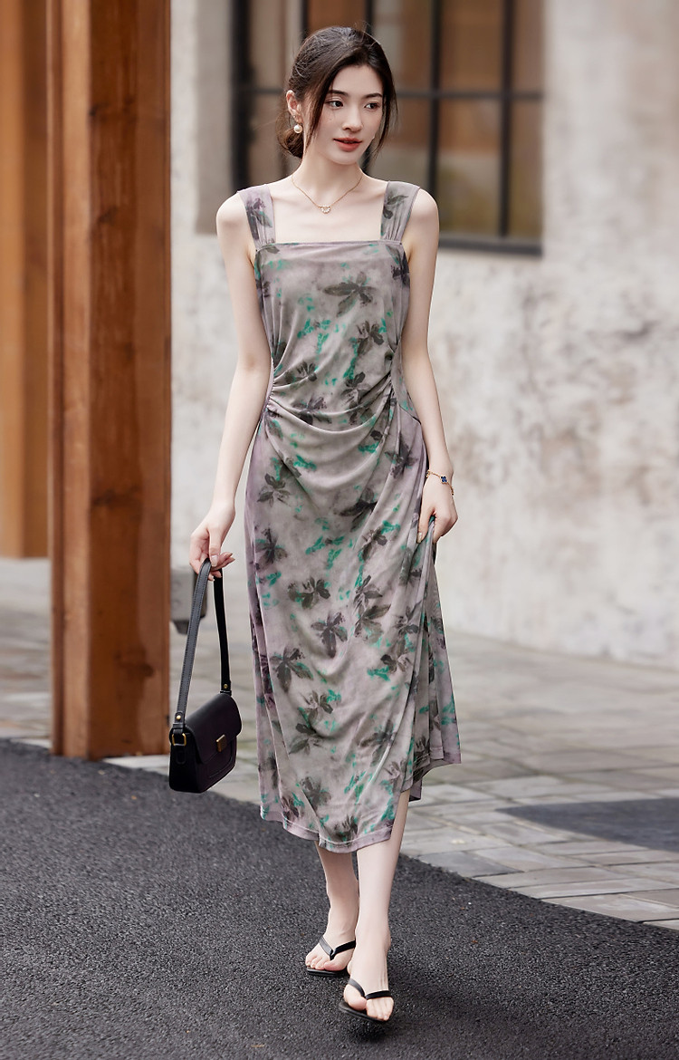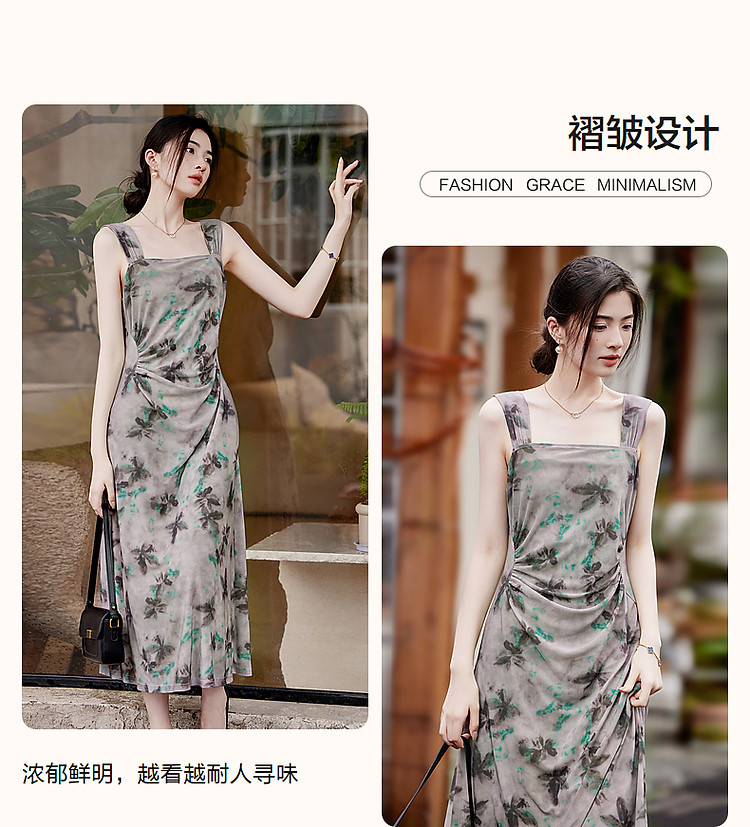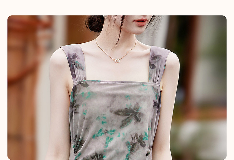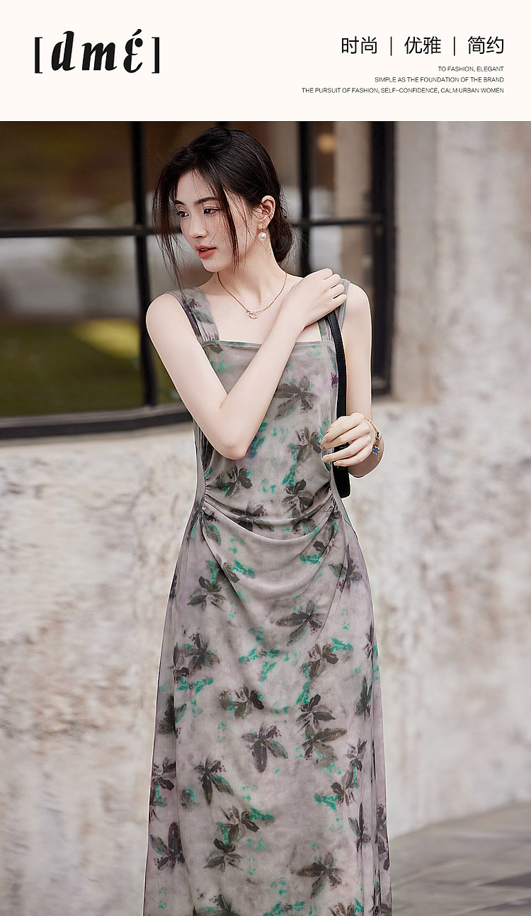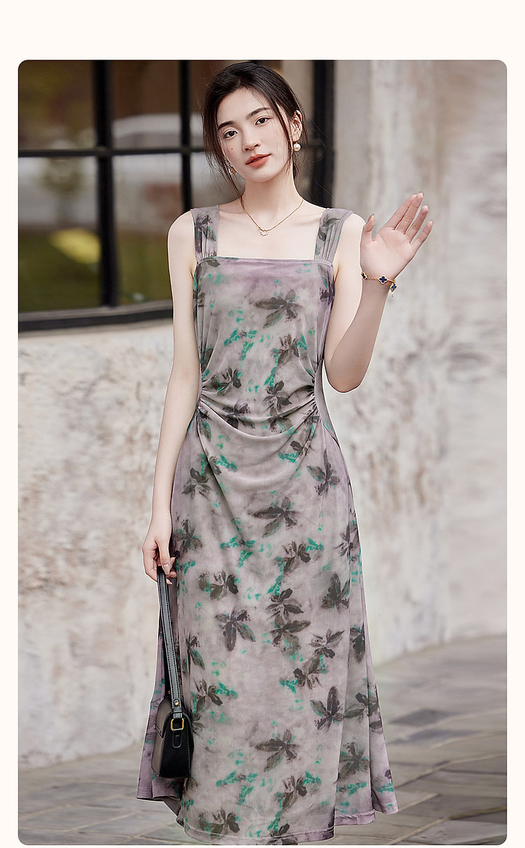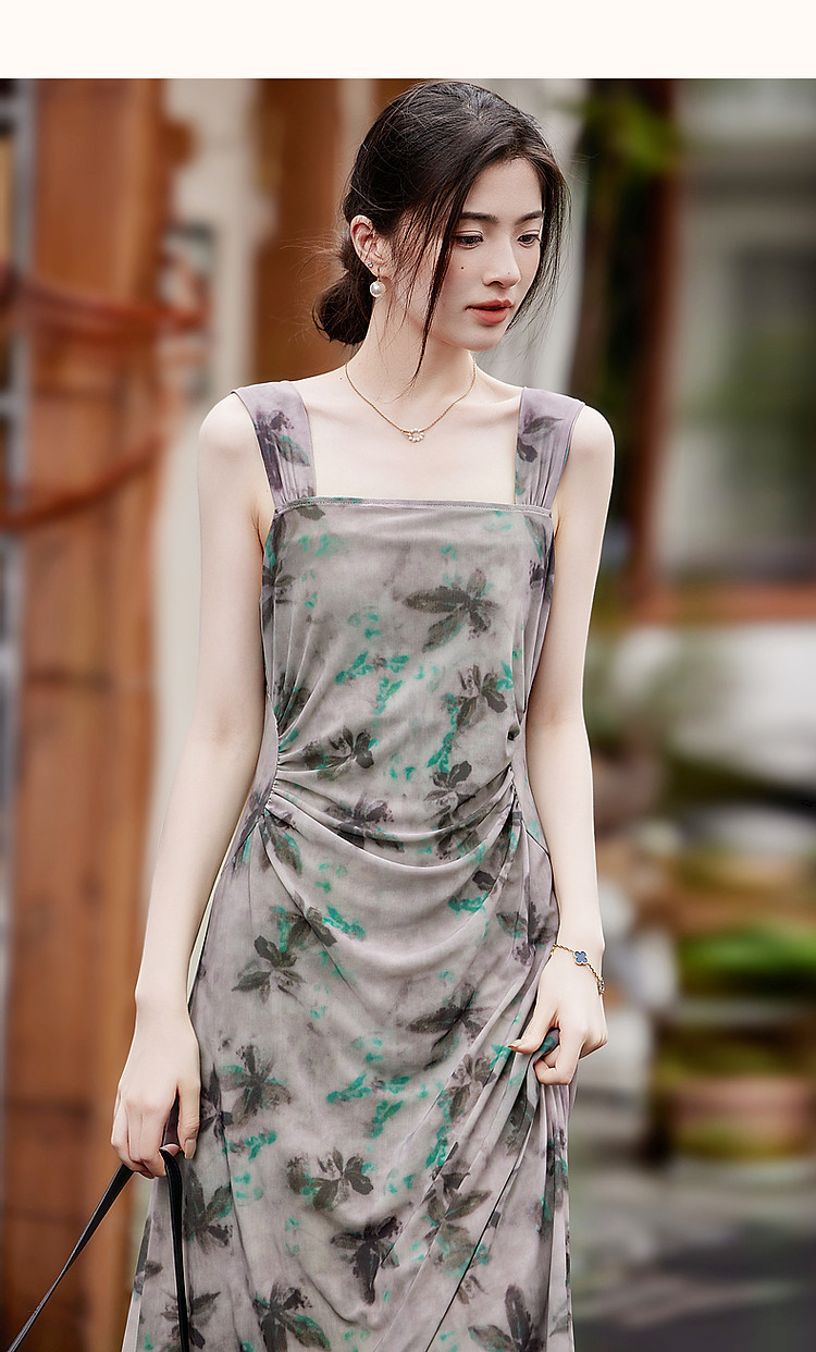 商品名称:【小性感妲己裙】夏无袖褶皱网眼印花背心裙收腰a字连衣裙 190145