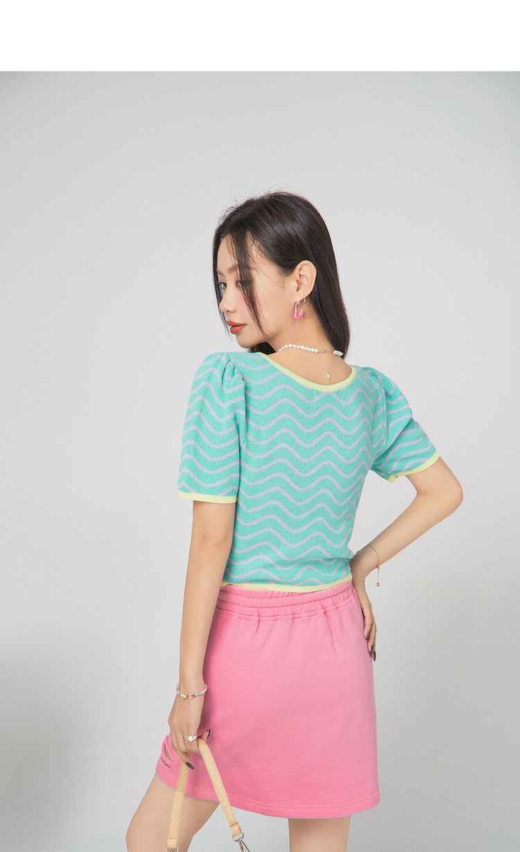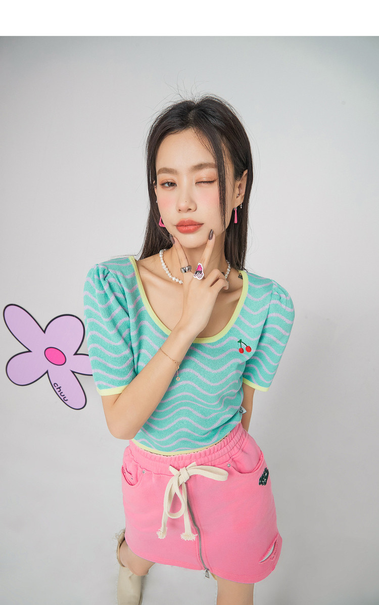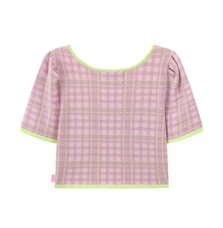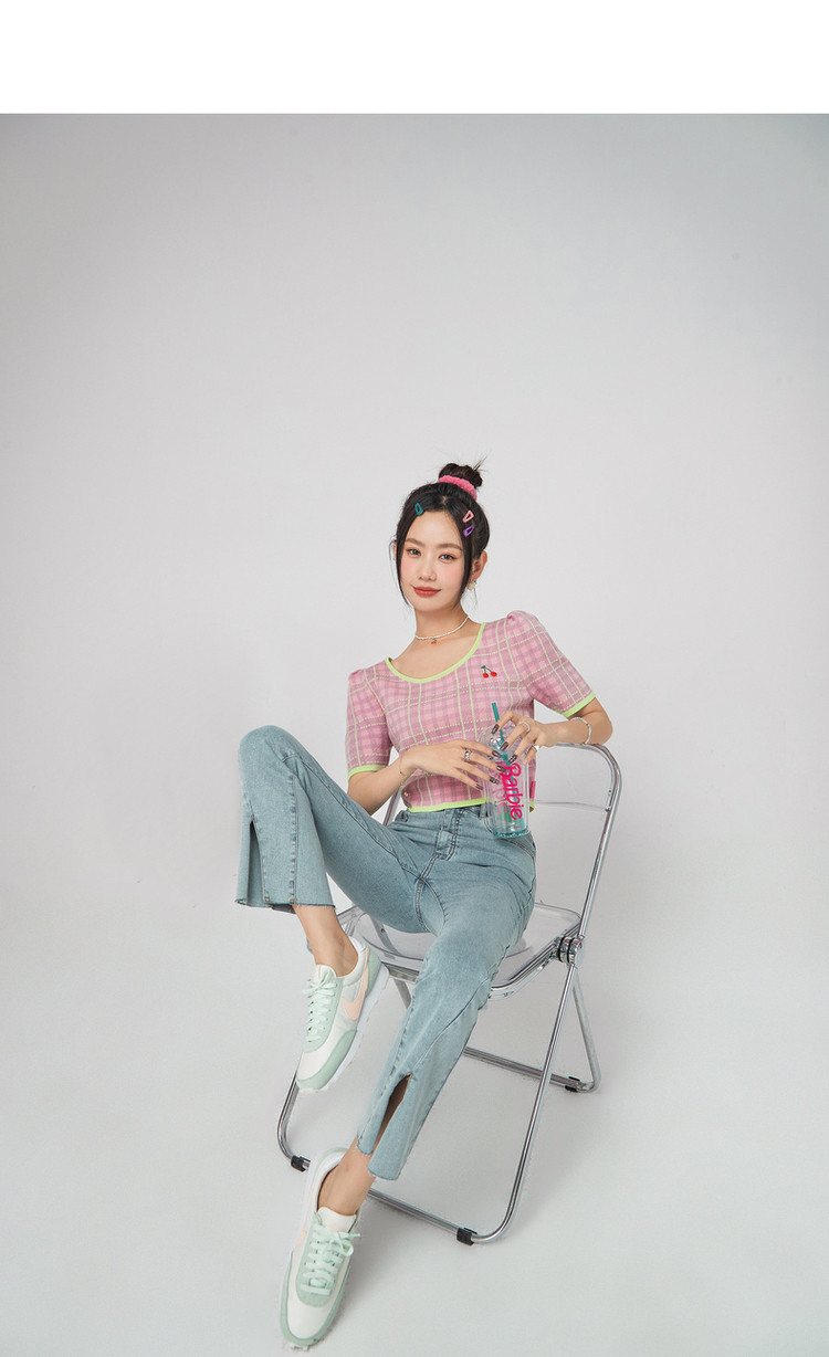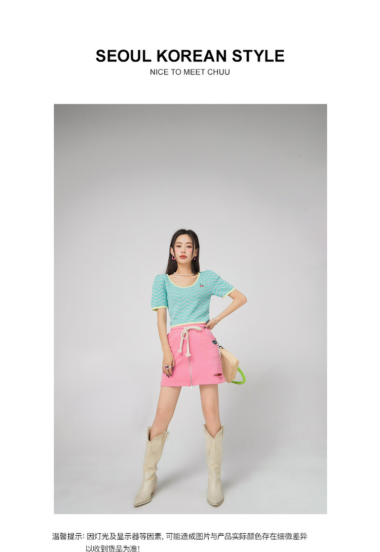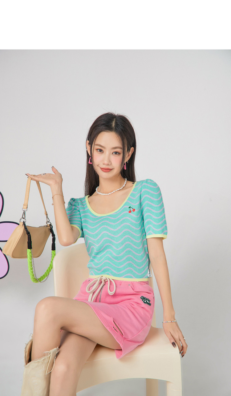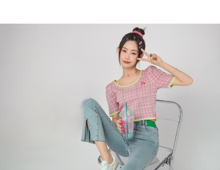 商品名称:CHUU小格子短袖针织衫女式夏季撞色短款上衣 420691