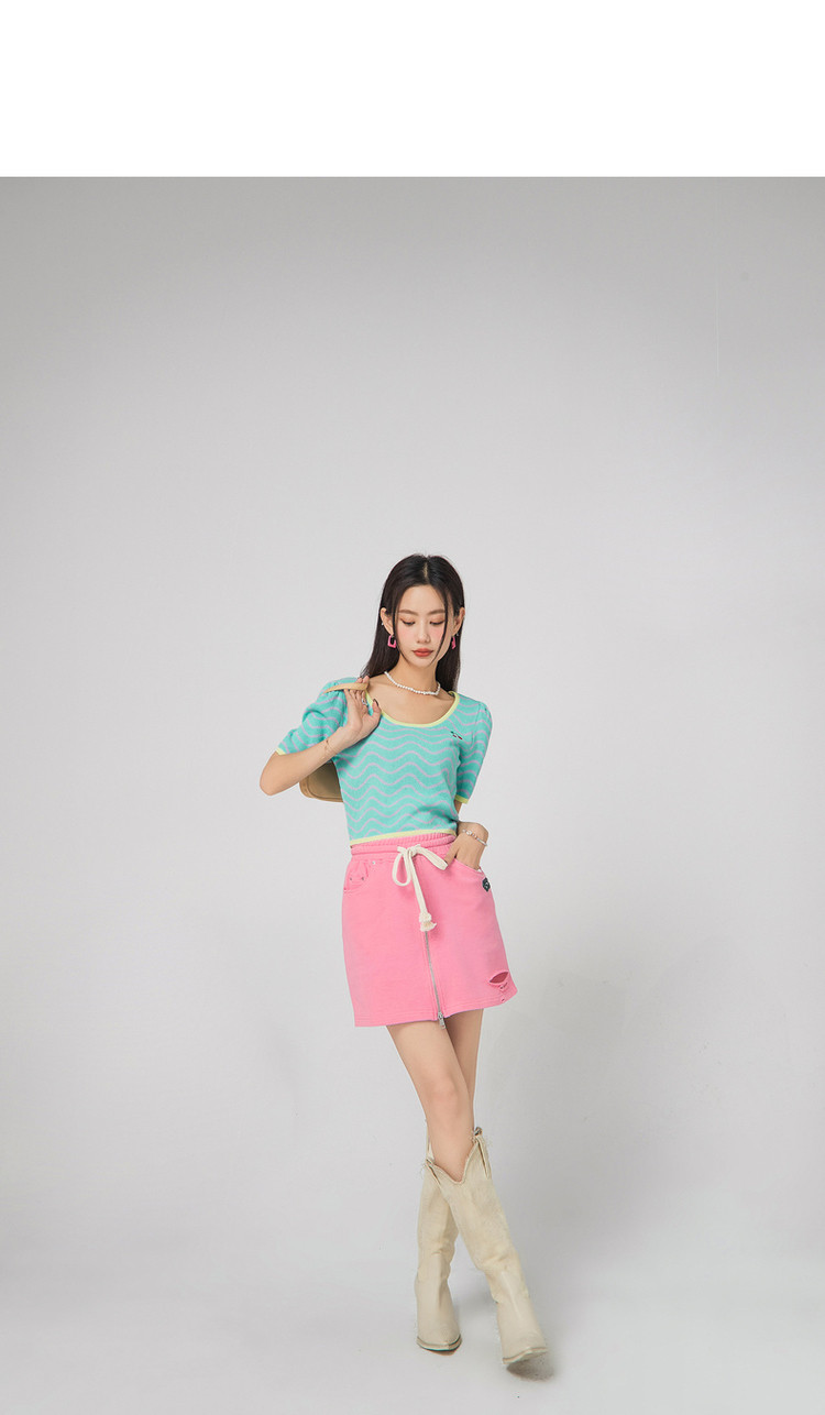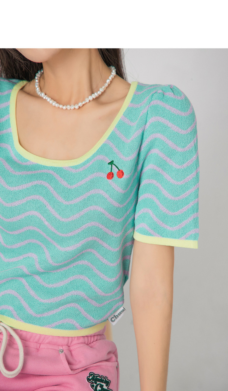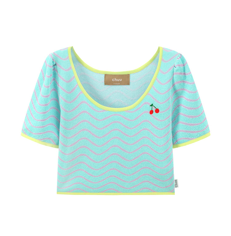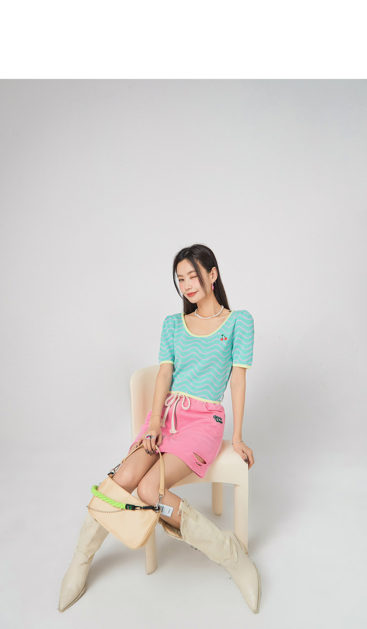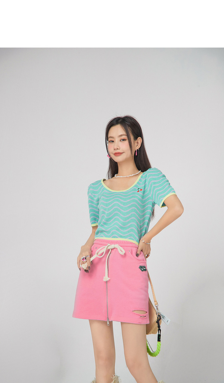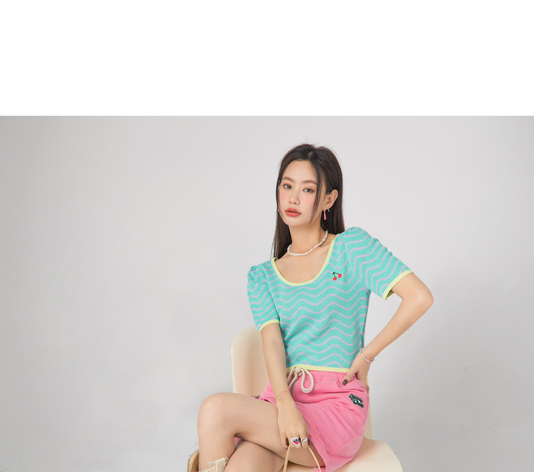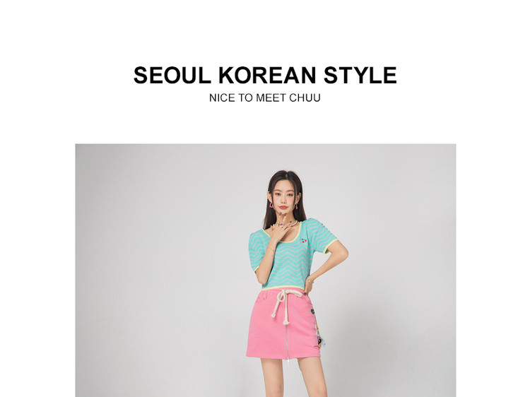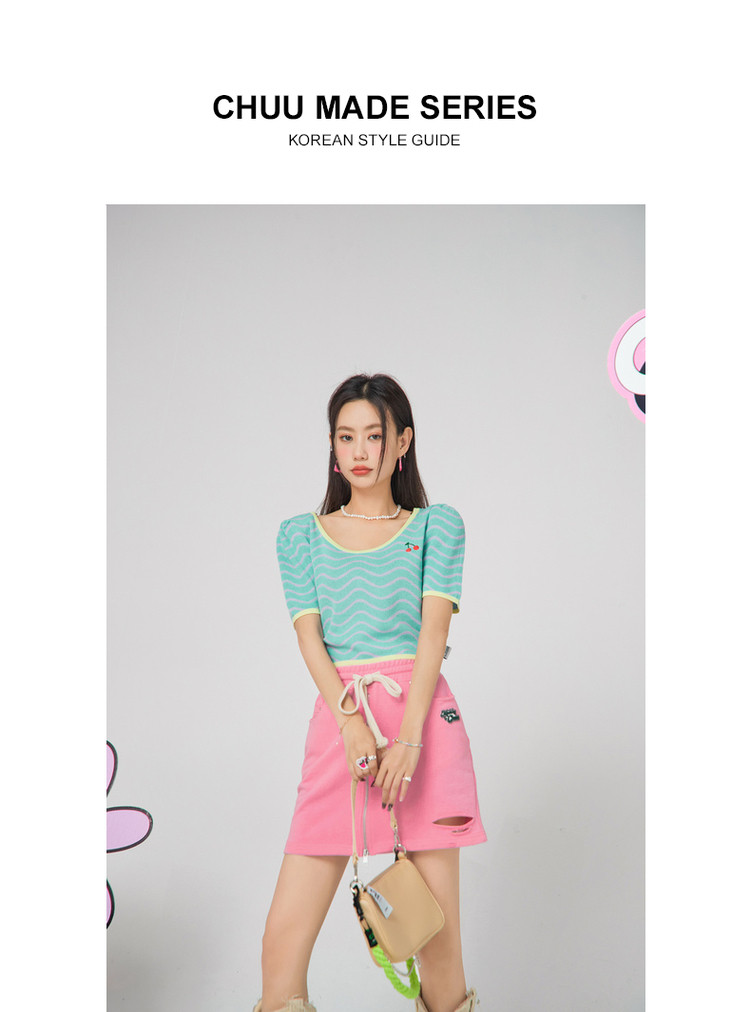 商品名称:CHUU小格子短袖针织衫女式夏季撞色短款上衣 420691