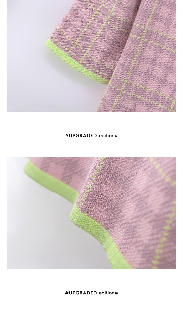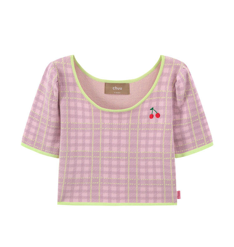 CHUU小格子短袖针织衫女式夏季撞色短款上衣 420691